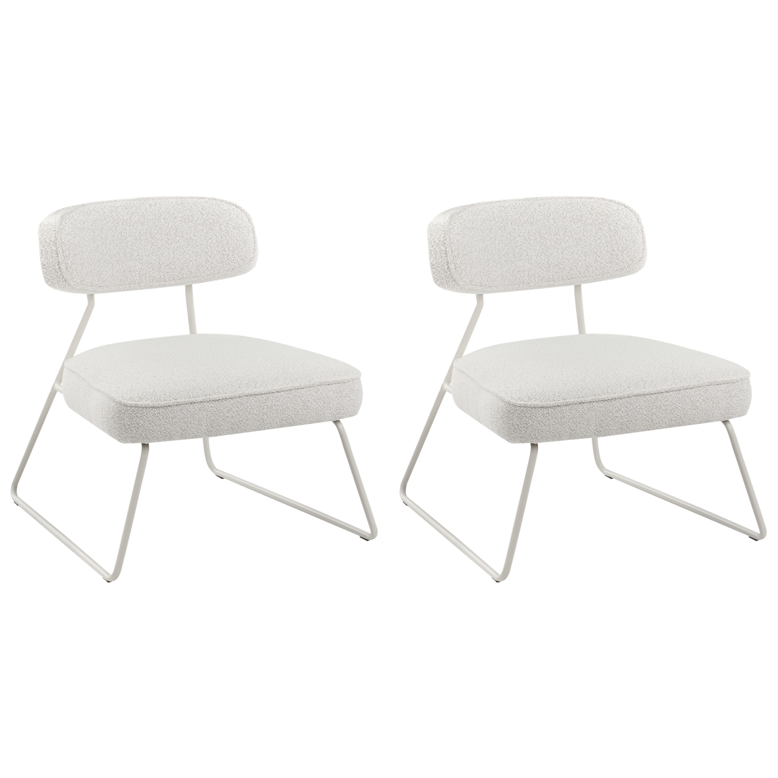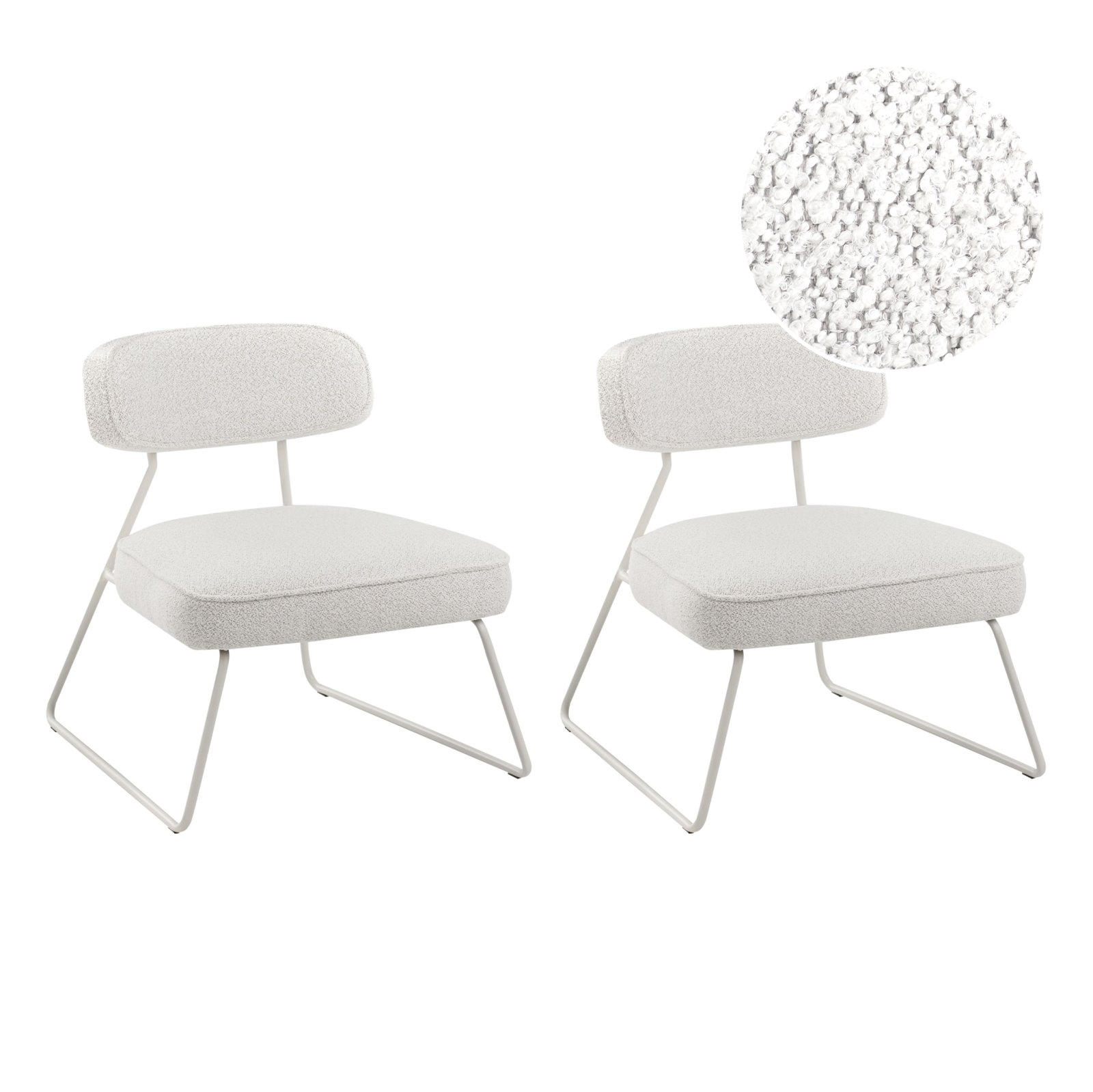 Fotolii tapițate fără brațe. Adaugă o notă modernă casei tale cu acest set elegant de fotolii fără brațe. Cadrele metalice rezistente le oferă stabilitate, iar șezuturile moi și tapițeria durabilă garantează confort pe termen lung. Cu designul lor minimalist și contemporan, se potrivesc perfect atât într-un dormitor primitor, cât și într-un living stilat. Detalii: Tip de Produs: Fotoliu. Stil: Modern. Culoare: Alb. Culoarea cadrului: Alb. Nuanță: Alb-murdar. Material: Țesătură. Material primar: Țesătură. Material secundar: Fier. Căptușeală: Spumă. Detalii material picioare: Metal. Material scaun: Țesătură. Compoziția materialului: 81% Polipropilenă. Stilul cotierei: Fără cotiere. Cotiere: Nu. Protecții pentru picioare incluse: Nu. Model: Culoare solidă. Reclinabil: Nu. Structura scaunului: Placaj. Densitatea pernei scaunului: 28 kg/m3. Dimensiuni: Adâncime: 74 cm. Grosimea scaunului: 10 cm. Înălțimea scaunului: 42 cm. Lățime: 66 cm. Înălțime: 73 cm. Suprafața de ședere: 66x51 cm. Greutate: 8 kg. Capacitatea de greutate: 120 kg. Oferta incude: 2 x Fotoliu. Caracteristici cheie: Scaun gros pentru confort maxim, Design modern, Ideal atât pentru dormitor, cât și pentru camera de zi, Tapițerie din țesătură de înaltă calitate, Structură proiectată pentru a oferi stabilitate maximă. Asamblare: Necesită asamblare parțială.5-15 min. Sfaturi de întreținere: Țesătură: 1.Aspirati folosind un accesoriu potrivit. 2.Vă rugăm să curățați cu un șampon uscat și un burete umed sau cu un detergent ușor. Fier: 1.Curățați cu un detergent delicat și o cârpă moale, apoi ștergeți bine. 2.Pentru elementele din cupru sau crom, folosiți un agent de lustruire. 3.Pentru a evita zgârieturile, nu folosiți produse de curățare abrazive.