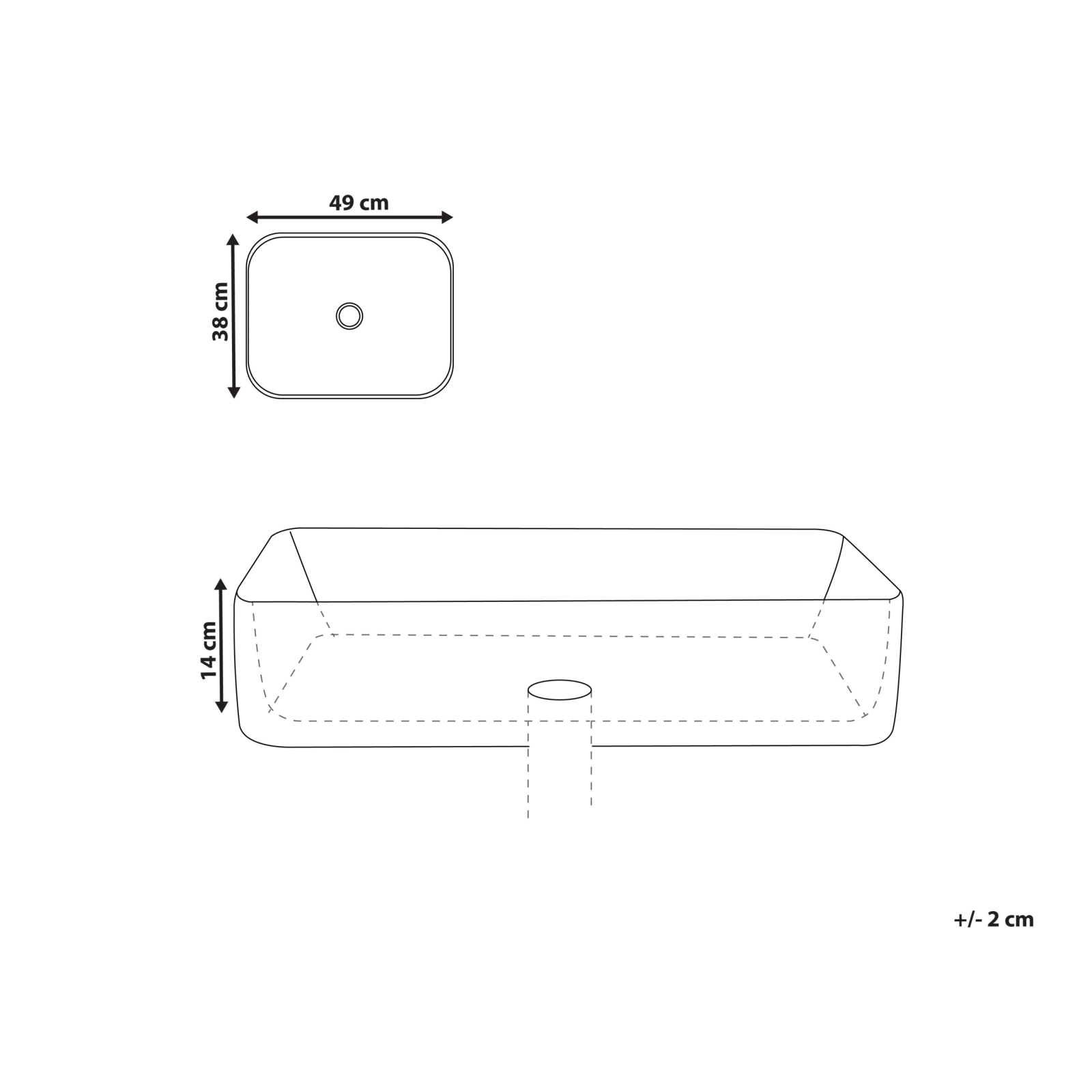 Lavoar din ceramică. Transformă-ți baia cu acest lavoar elegant pentru blat, realizat din ceramică premium, cu design clasic și minimalist. Finisajul alb imaculat, completat de marginea neagră, creează un look atemporal ce se potrivește în orice decor. Îmbinând stilul cu funcționalitatea, acesta adaugă un aer sofisticat și practic atât băilor moderne, cât și celor tradiționale. Detalii: Tip de Produs: Lavoar. Stil: Retro. Culoare: Alb. Material: Ceramică. Material primar: Ceramică. Formă: Rectangulară. Finisaj: Lucios. Dimensiuni: Adâncime: 38 cm. Lățime: 49 cm. Înălțime: 14 cm. Diametrul duzei de scurgere: 35. Greutate: 12 kg. Oferta incude: 1 x Lavoar, Nu include: Dop de scurgere. Caracteristici cheie: Durabil și rezistent la impact, Culori elegante și la modă, Foarte chic, Realizarea perfectă datorită controlului constant al calității vinilului, Ușor de curățat. Asamblare: Necesită instalare. Informații suplimentare: Instalarea trebuie efectuată în conformitate cu manualul de utilizare, cu reglementările și legile statului. Sfaturi de întreținere: Ceramică: 1.Curățați cu un detergent delicat și o cârpă moale, apoi ștergeți suprafața până la uscarea completă.