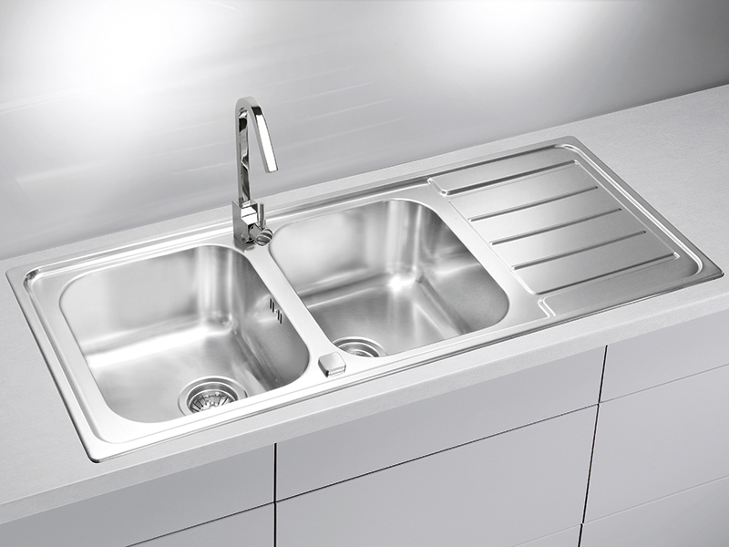 Chiuveta inox Alveus Line 100 satin AlveusLine 100 satin este o chiuveta de bucatarie realizata din material inox. Este formata din doua cuve si picurator avand dimensiunea de 116 x 50 x 15 15 cm. Acest model de chiuveta Alveus este conceput pentru montajul pe blatul de bucatarie. Culoarea chiuvetei este inox (finisaj satin ), ce ofera un contrast placut bucatariei dumneavoastra. Chiuveta Line 100 satin are o forma dreptunghiulara, cu dimensiunea cuvelor de 35 x 40 x 16 cm 35 x 40 x 16 cm, potrivite pentru spalarea vaselor de orice dimensiune. Aceasta chiuveta este confectionata din material inox de pana la 0.6 mm de calitate superioara. Datorita procesarii atente a materialului, suprafata chiuvetei de bucatarie este neteda, placuta la atingere si permite o curatare usoara. In plus, ii ofera si alte avantaje, cum ar fi: rezistenta la temperaturi inalte, la utilizare intensa, rezistenta maxima la socuri termice si mecanice si nu se zgarie. Chiuveta vine insotita cu urmatoarele accesorii: sifon cu preaplin; ventil de 3 1 2, ³; sistem de prindere;