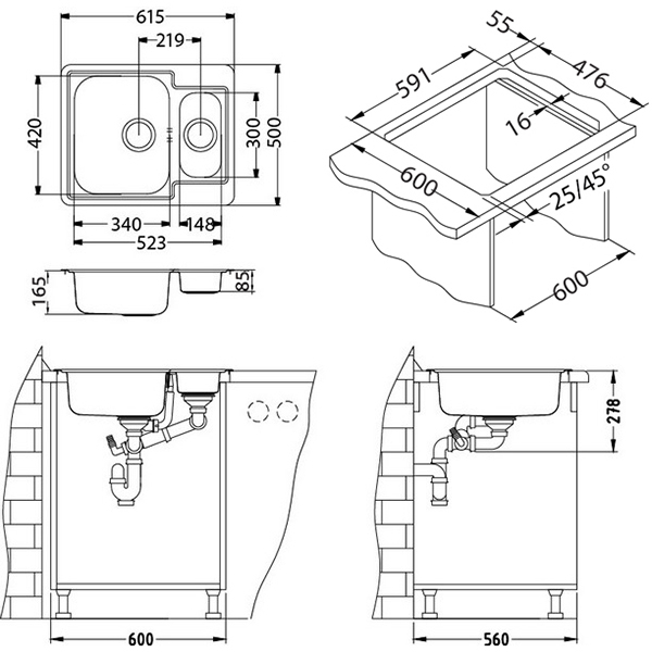 Chiuveta Line 50 satin are o forma dreptunghiulara, cu dimensiunea cuvelor de 34 x 42 x 16 cm / 14.8 x 30 x 8 cm, potrivite pentru spalarea vaselor de orice dimensiune. Aceasta chiuveta este confectionata din material inox de pana la 0.6 mm de calitate superioara. Datorita procesarii atente a materialului, suprafata chiuvetei de bucatarie este neteda, placuta la atingere si permite o curatare usoara. In plus, ii ofera si alte avantaje, cum ar fi: rezistenta la temperaturi inalte, la utilizare intensa, rezistenta maxima la socuri termice si mecanice si nu se zgarie.