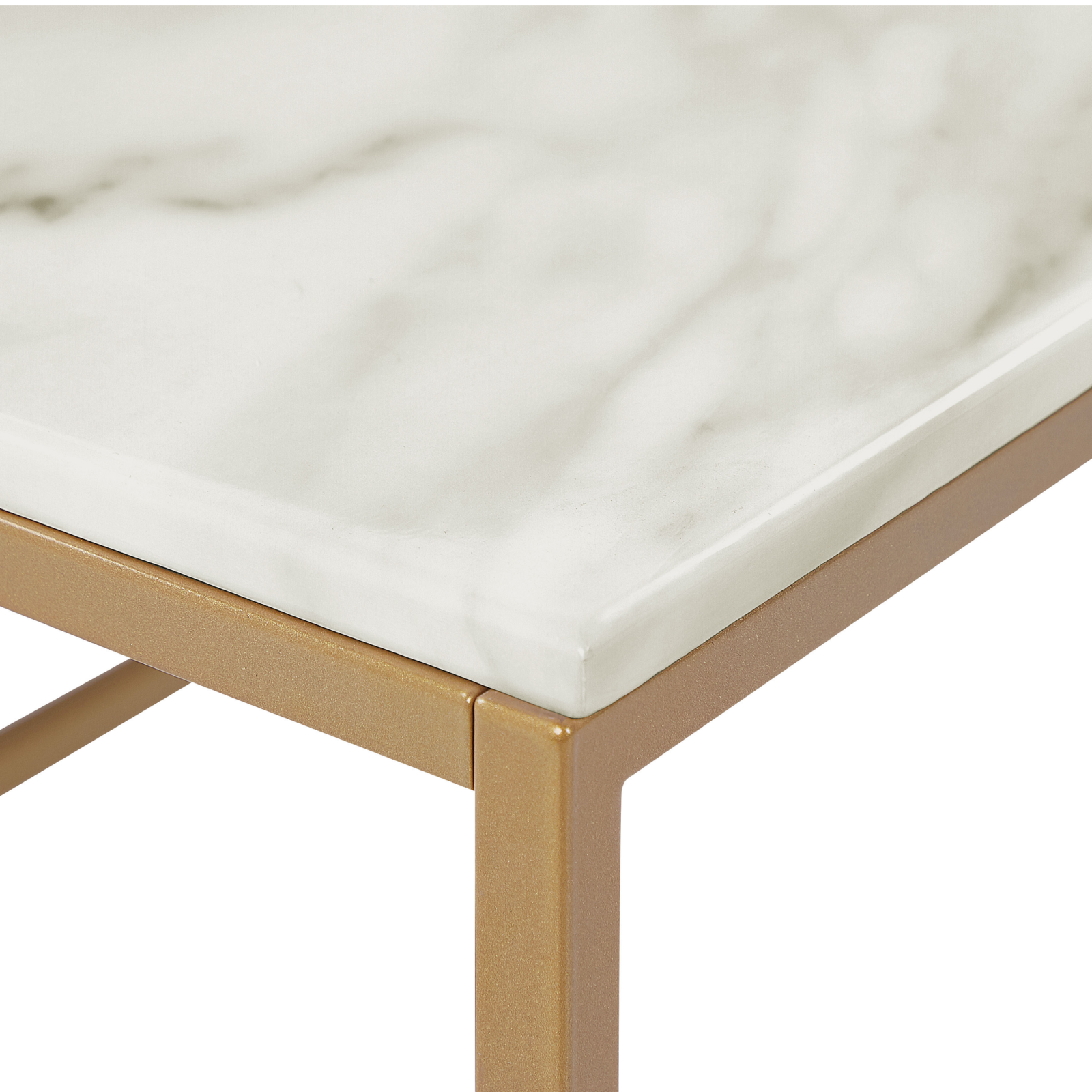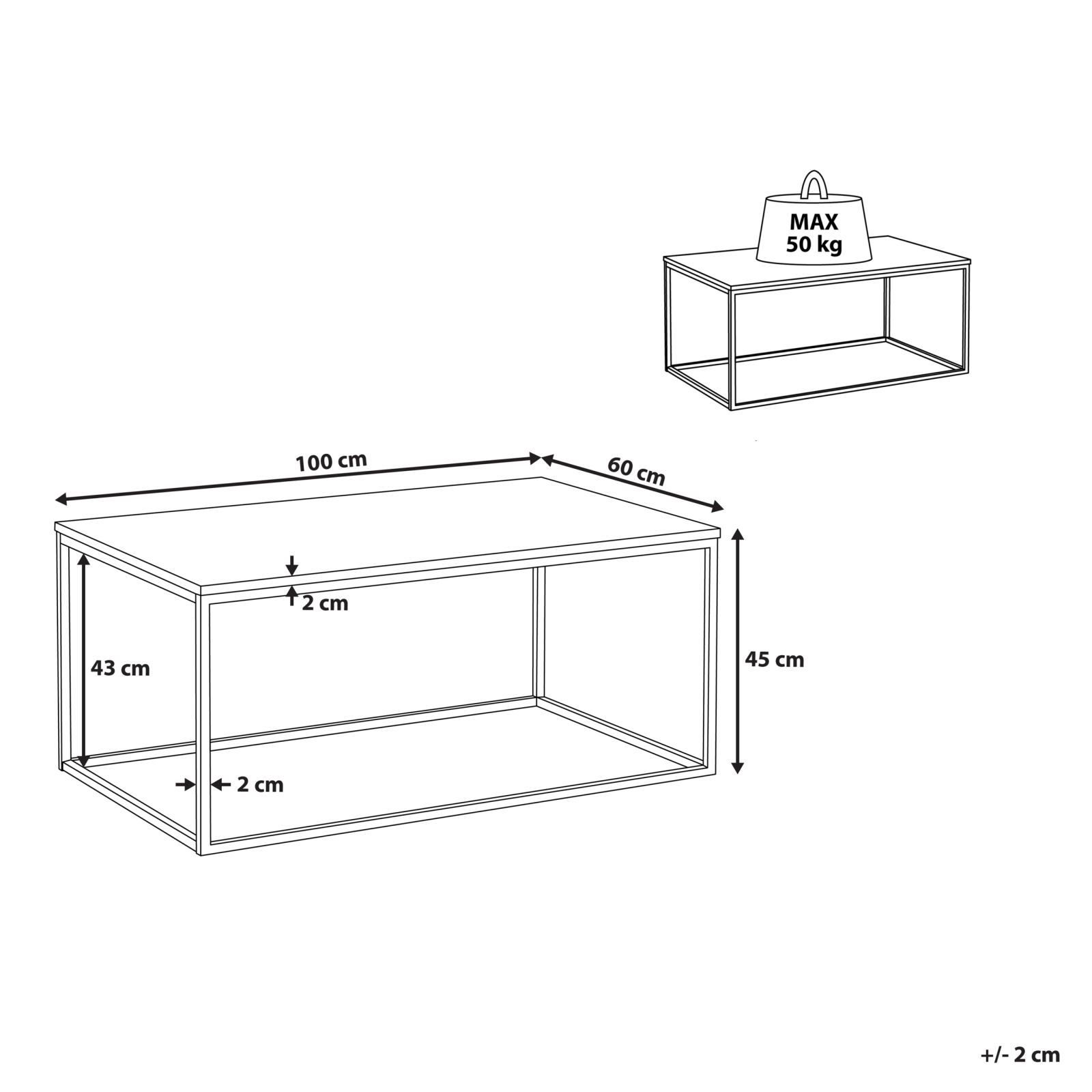 Masă de cafea dreptunghiulară cu efect de marmură. Această masă de cafea aduce un design modern cu un strop de stil retro, perfectă pentru orice cameră. Cu un cadru deschis și un finisaj rafinat, îți oferă nu doar un aspect atrăgător, dar și spațiu pentru depozitare. Blatul din MDF bej cu efect marmorat adaugă o notă de lux, perfectă pentru a-ți înfrumuseța decorul casei tale. Detalii: Tip de Produs: Masă de cafea. Stil: Modern. Culoare: Bej. Material: Lemn. Material primar: Fibră cu densitate medie (MDF). Material secundar: Metal. Detalii material picioare: Metal. Materialul suprafeței mesei: Lemn stratificat. Formă: Rectangulară. Finisaj: Acoperire pulverizată. Depozitare: Nu. Dimensiuni: Lățime: 60 cm. Lungime: 100 cm. Înălțime: 45 cm. Greutate: 12 kg. Capacitatea de greutate: 20 kg. Oferta incude: 1 x Masă de cafea. Caracteristici cheie: Se integrează practic cu orice stil de amenajare, Design elegant, Efect de marmură modernă, Materiale de înaltă calitate, Construcție robustă, Capace pentru picioare pentru protecția suprafeței. Asamblare: Necesită asamblare parțială.20-40 min. Informații suplimentare: Pentru a menține durabilitatea și estetica blatului, recomandăm utilizarea suporturilor pentru farfurii și a suporturilor pentru pahare, precum și îndepărtarea petelor umede cât mai curând posibil, pentru a preveni deteriorarea produsului. Sfaturi de întreținere: Fibră cu densitate medie (MDF): 1.Curățați delicat cu un detergent blând și o cârpă moale, apoi ștergeți suprafața până la uscare completă. Metal: 1.Curățați cu un detergent delicat și o cârpă moale, apoi ștergeți bine. 2.Pentru a evita zgârieturile, nu folosiți produse de curățare abrazive. 3.Pentru elementele din cupru sau crom, folosiți un agent de lustruire.