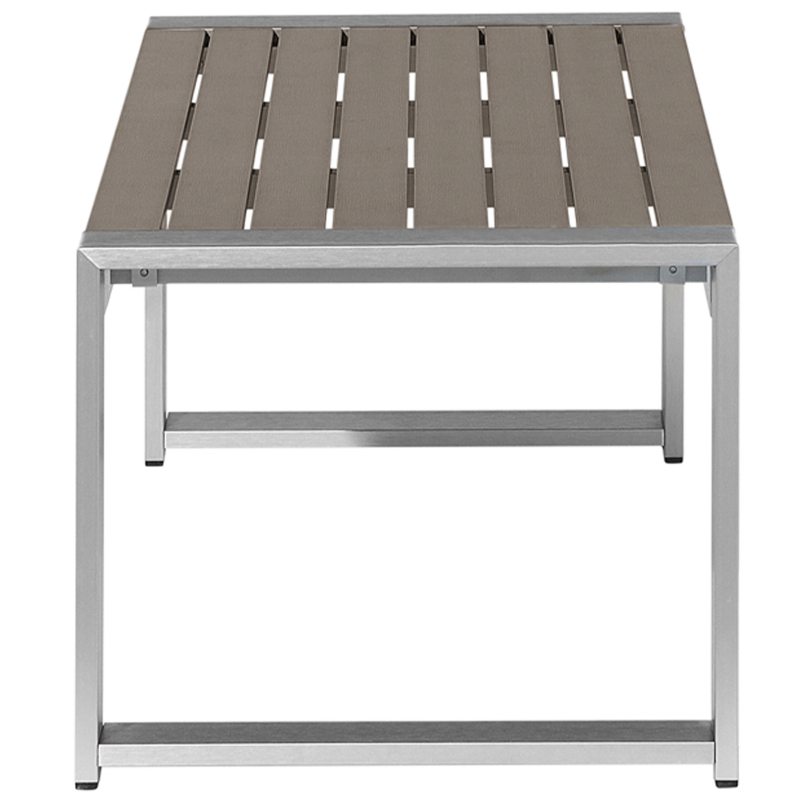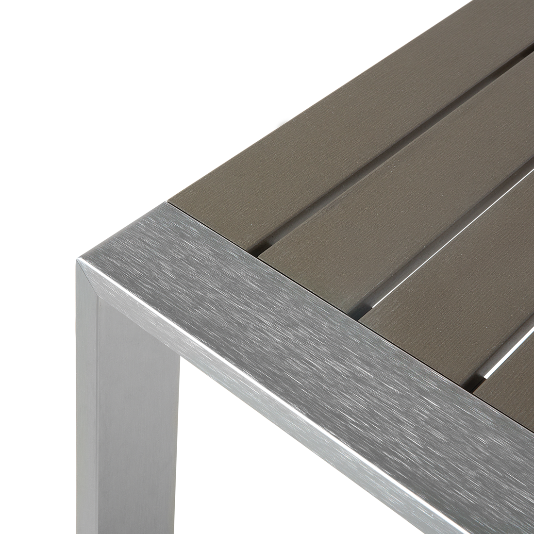 Masă de cafea pentru exterior din aluminiu. Adaugă un plus de eleganță și funcționalitate grădinii sau terasei tale cu această masă de cafea modernă. Designul minimalist aduce un aer de rafinament și calm oricărui spațiu exterior. Fabricată din aluminiu anodizat 100%, este nu doar ușoară și rezistentă, ci și o investiție durabilă pentru momente de neuitat alături de cei dragi. Blatul sintetic cu fante, într-o culoare neutră, completează perfect acest obiect de mobilier, făcându-l o piesă versatilă ce se va integra armonios în orice decor. Transformă-ți fiecare clipă în aer liber într-o experiență deosebită! Detalii: Tip de Produs: Masă de cafea. Stil: Industrial. Culoare: Gri. Nuanță: Gri închis. Material: Material sintetic. Material primar: Lemn plastic. Material secundar: Aluminiu. Detalii material picioare: Metal. Materialul suprafeței mesei: Material sintetic. Formă: Rectangulară. Finisaj: Opac. Dimensiuni: Lățime: 50 cm. Lungime: 90 cm. Înălțime: 42 cm. Greutate: 9 kg. Capacitatea de greutate: 15 kg. Oferta incude: 1 x Masă de cafea. Caracteristici cheie: Ideal pentru grădini sau spații exterioare cu un aer modern, Structură proiectată pentru a oferi stabilitate maximă, Atât în interior cât și în exterior, Execuție robustă. Asamblare: Necesită asamblare completă.5-15 min. Descriere: Datorită finisajului special, suprafața produsului este rezistentă la rugină. Acest lucru înseamnă că poate fi utilizat în aer liber. Atunci când produsul nu este utilizat, vă recomandăm să îl acoperiți cu o cârpă sau să îl plasați într-un loc uscat. Rezistență: Vânt. Sfaturi de întreținere: Aluminiu: 1.Curățați cu apă cu săpun și detergenți delicați disponibili în comerț. Îndepărtați praful cu o cârpă moale. 2.În extra-sezon, folosiți o husă de protecție sau depozitați mobilierul într-un loc răcoros și uscat. Lemn plastic: 1.Curățați cu o soluție de curățare pe bază de săpun și o cârpă moale. 2.Păstrați departe de surse de căldură, cum ar fi zonele de grătar sau foc de tabără, deoarece scânteile pot provoca daune majore. Nu așezați ustensile fierbinți direct pe suprafață. 3.Materialul rezistă la expunerea moderată la condițiile meteo. În extra-sezon, folosiți o husă de protecție sau depozitați mobilierul în interior.