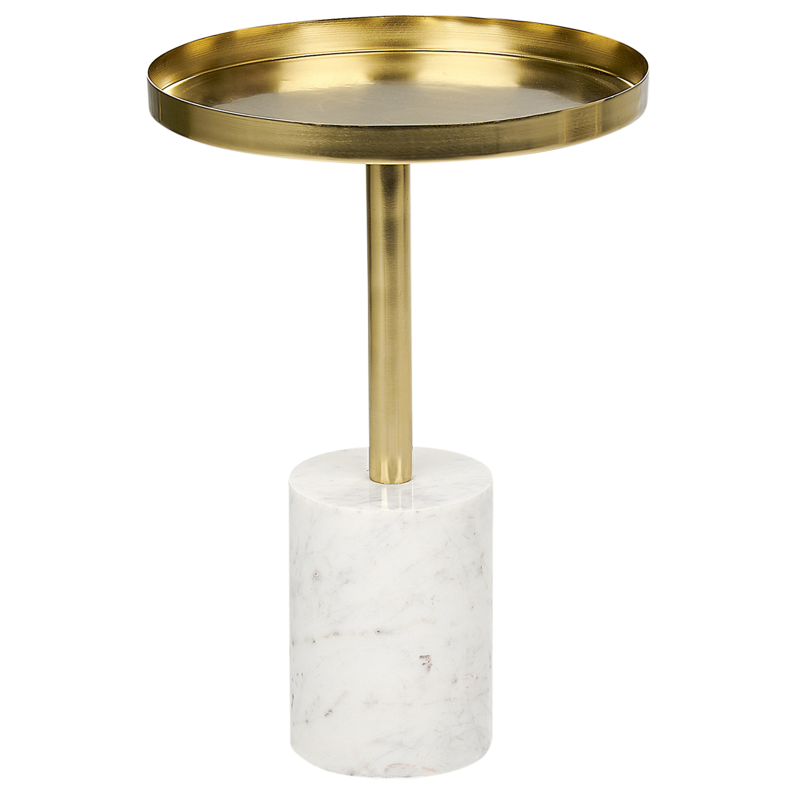 Măsuță metalică modernă. Transformă-ți interiorul cu această masă rafinată. Cu un blat rotund din metal auriu clasic și o bază din marmură albă, emană stil. Versatilă, potrivită pentru orice încăpere, fie în living, dormitor sau hol, este ideală pentru un aranjament floral sau o cană de cafea. Adaugă un strop de sofisticare decorului tău cu acest obiect de accent deosebit. Detalii: Tip de Produs: Masă laterală. Stil: Glamour. Culoare: Auriu. Material: Metal. Material primar: Fier. Material secundar: Marmură. Detalii material picioare: Piatră. Materialul suprafeței mesei: Metal. Formă: Rotundă. Finisaj: Vopsire electrostatică. Depozitare: Nu. Dimensiuni: Lățime: 36 cm. Lungime: 36 cm. Înălțime: 52 cm. Greutate: 12 kg. Capacitatea de greutate: 4 kg. Oferta incude: 1 x Masă laterală. Caracteristici cheie: Culori elegante și la modă, Adaugă o notă de stil în orice cameră, Mobilier decorativ și funcțional, De înaltă calitate, Ușor de curățat. Asamblare: Necesită asamblare parțială.5-15 min. Sfaturi de întreținere: Fier: 1.Curățați cu un detergent delicat și o cârpă moale, apoi ștergeți bine. 2.Pentru a evita zgârieturile, nu folosiți produse de curățare abrazive. 3.Pentru elementele din cupru sau crom, folosiți un agent de lustruire. Marmură: 1.Curățați cu un detergent delicat și o cârpă moale, apoi ștergeți suprafața până la uscarea completă.
