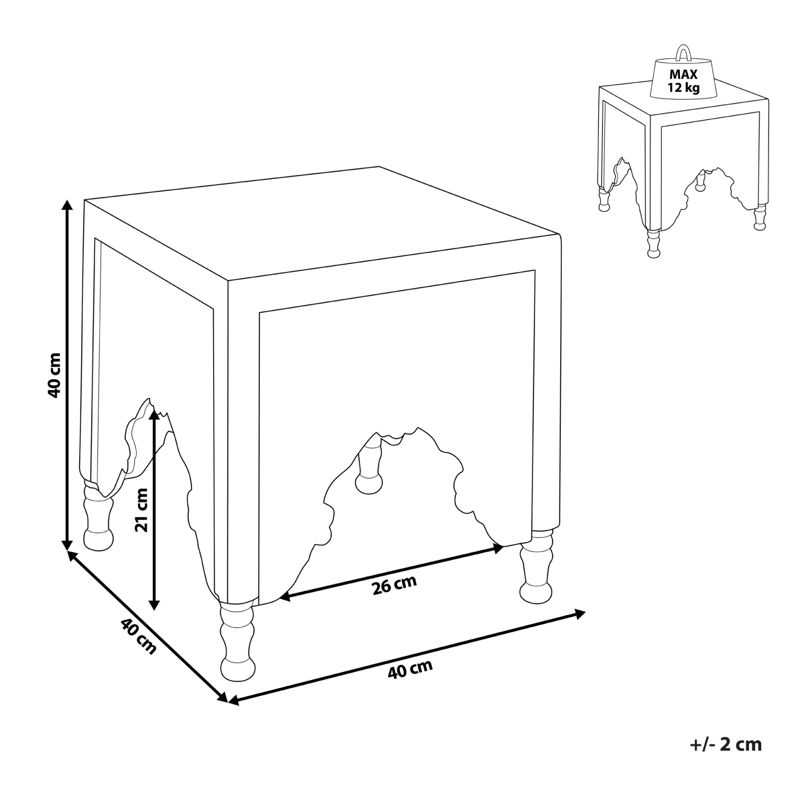 Masă laterală orientală realizată manual. Adaugă un aer oriental în interiorul tău cu această masă laterală realizată manual. Piesa este confecționată din lemn de mango durabil și MDF de înaltă calitate – ambele materiale o fac rezistentă și ușor de întreținut. Blatul său îți va permite să așezi diverse decorațiuni, farfurii sau băuturi. Datorită designului său unic și faptului că este realizată manual, această masă va ieși în evidență în casa ta și va atrage cu siguranță atenția tuturor oaspeților. Detalii: Tip de Produs: Masă laterală. Stil: Boho. Culoare: Maro. Material: Lemn. Material primar: Lemn de mango. Detalii material picioare: Lemn. Materialul suprafeței mesei: Lemn. Formă: Pătrată. Finisaj: Lăcuit. Depozitare: Nu. Dimensiuni: Lățime: 40 cm. Lungime: 40 cm. Înălțime: 40 cm. Greutate: 4 kg. Capacitatea de greutate: 12 kg. Oferta incude: 1 x Masă laterală. Caracteristici cheie: Piesă cu accent atrăgător, Adaugă o notă de stil în orice cameră, Excepțional de ușor de întreținut, Finisaje precise, Materiale de cea mai bună calitate. Asamblare: Nu necesită asamblare. Informații suplimentare: Vă rugăm să rețineți că fiecare produs este realizat manual. Pot exista mici diferențe de textură, culoare sau formă datorită caracteristicilor materialelor folosite, iar acestea nu vor fi considerate defecte. Trebuie remarcat faptul că lemnul este un material natural și, prin urmare, fiecare obiect din lemn diferă de celelalte. Diferențele de culoare și de textură a suprafeței (noduri de lemn, dungi etc.) sunt caracteristici intrinseci ale materialului și, prin urmare, nu sunt considerate defecte ale produsului. Sfaturi de întreținere: Lemn de mango: 1.Curățați cu un detergent delicat și o cârpă moale, urmând direcția fibrelor. 2.Ștergeți imediat după curățare pentru a preveni acumularea apei pe produs. 3.Pentru a păstra mobila finisată cu ulei în stare bună, este necesar să o ungeți cu ulei după un timp. Fibră cu densitate medie (MDF): 1.Curățați delicat cu un detergent blând și o cârpă moale, apoi ștergeți suprafața până la uscare completă.