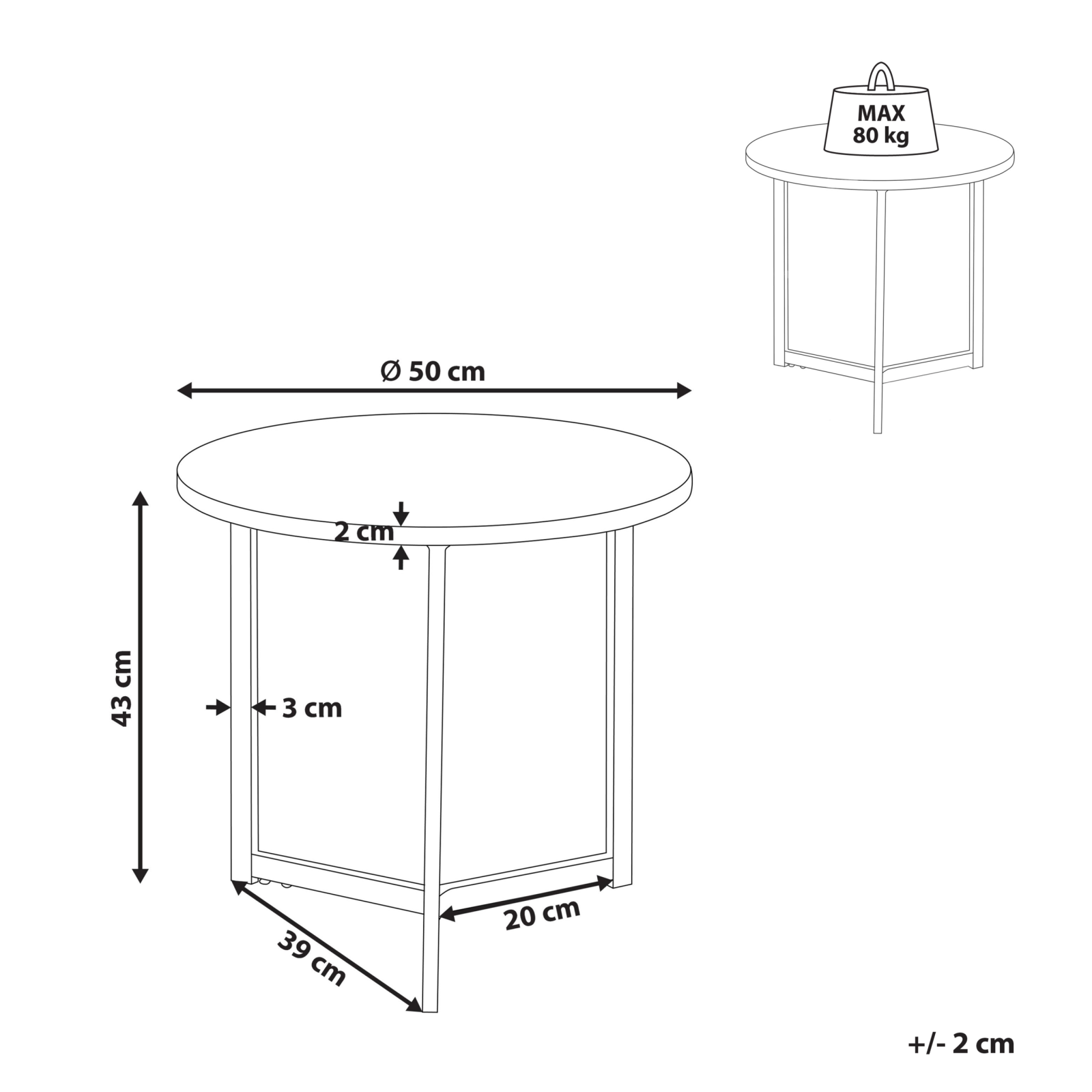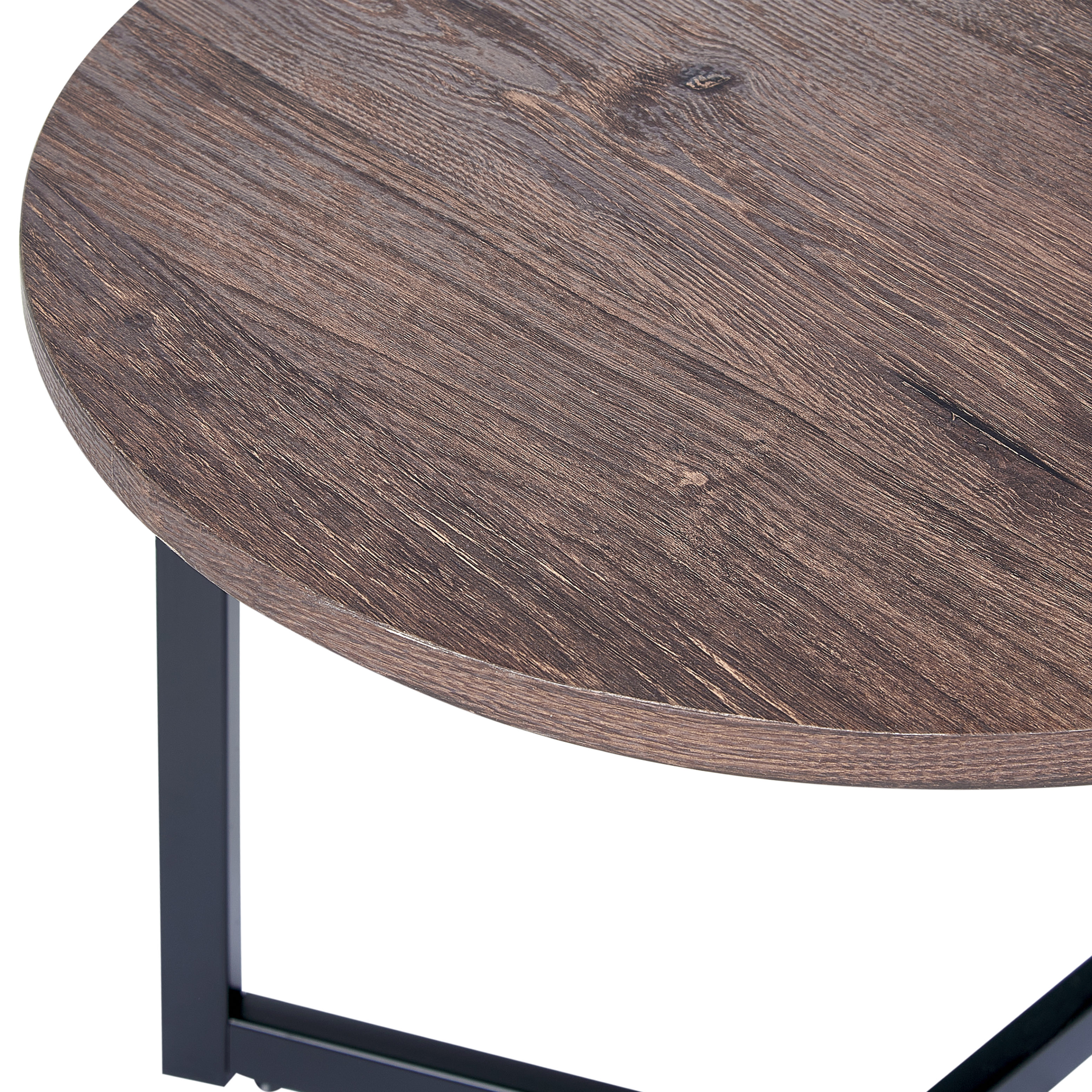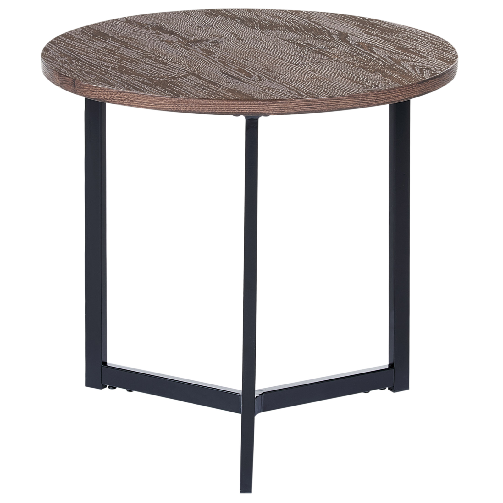 Măsuță laterală maro închis. Această măsuță laterală mică, cu stil industrial, va adăuga un accent modern camerei tale. Dispune de un blat de culoare maro închis și o bază metalică largă, de culoare neagră. Datorită dimensiunii sale compacte, măsuța se va potrivi în orice spațiu. Poți să o plasezi lângă canapeaua sau fotoliul tău pentru a avea aproape o cană de cafea sau accesorii. Detalii: Tip de Produs: Masă laterală. Stil: Industrial. Culoare: Maro. Material: Lemn. Material primar: Fibră cu densitate medie (MDF). Material secundar: Fier. Detalii material picioare: Metal. Materialul suprafeței mesei: Lemn stratificat. Formă: Rotundă. Finisaj: Acoperire pulverizată. Depozitare: Nu. Dimensiuni: Lățime: 50 cm. Lungime: 50 cm. Înălțime: 43 cm. Greutate: 4 kg. Capacitatea de greutate: 80 kg. Oferta incude: 1 x Masă laterală. Caracteristici cheie: Completare elegantă pentru orice interior, Design tradițional cu o notă modernă, Finisaj asemănător lemnului pentru un aspect natural, Execuție robustă, Materiale ușor de întreținut și durabile, Capace pentru picioare pentru protecția suprafeței. Asamblare: Necesită asamblare completă.20-40 min. Informații suplimentare: Pentru a menține durabilitatea și estetica blatului, recomandăm utilizarea suporturilor pentru farfurii și a suporturilor pentru pahare, precum și îndepărtarea petelor umede cât mai curând posibil, pentru a preveni deteriorarea produsului. Sfaturi de întreținere: Fibră cu densitate medie (MDF): 1.Curățați delicat cu un detergent blând și o cârpă moale, apoi ștergeți suprafața până la uscare completă. Fier: 1.Curățați cu un detergent delicat și o cârpă moale, apoi ștergeți bine. 2.Pentru a evita zgârieturile, nu folosiți produse de curățare abrazive. 3.Pentru elementele din cupru sau crom, folosiți un agent de lustruire.