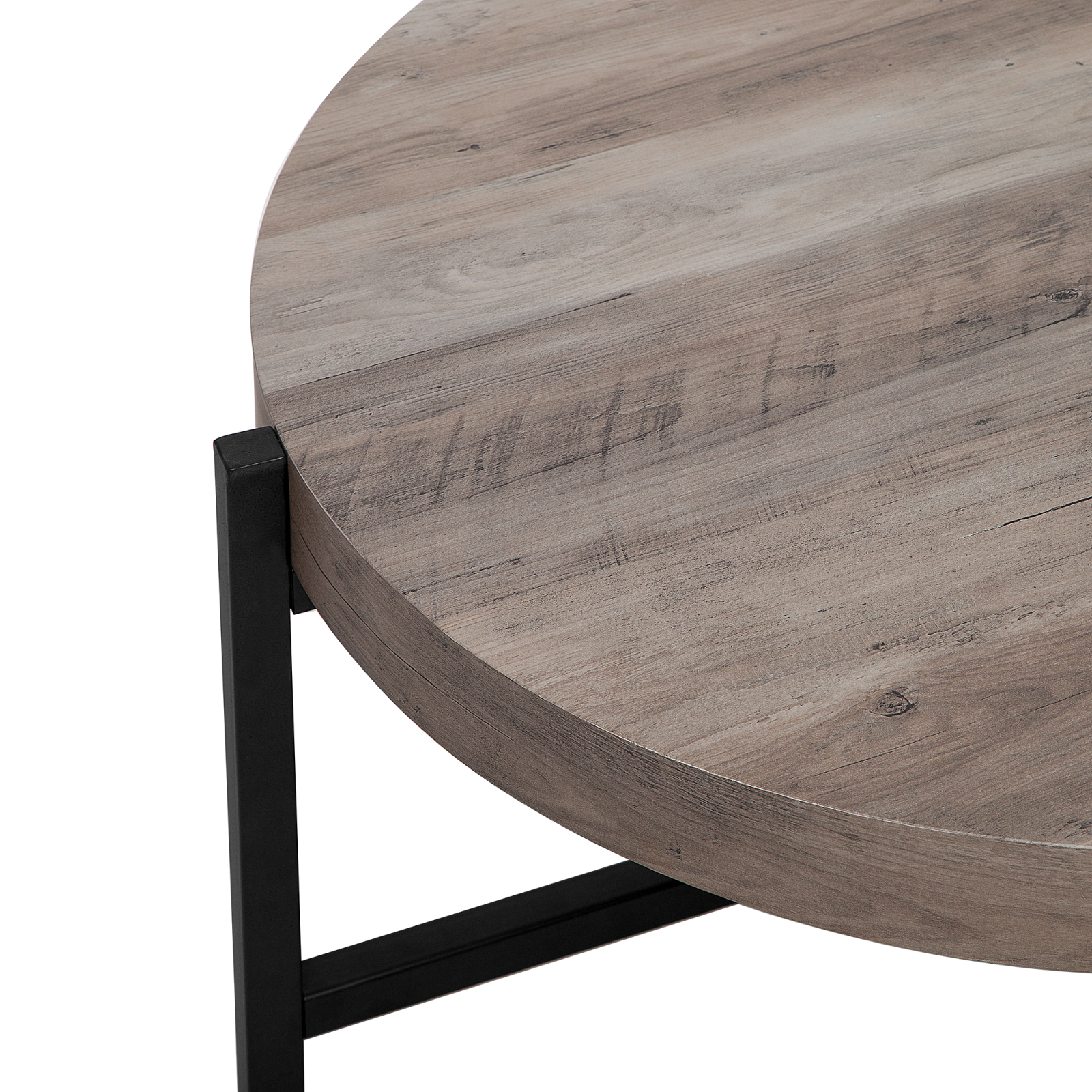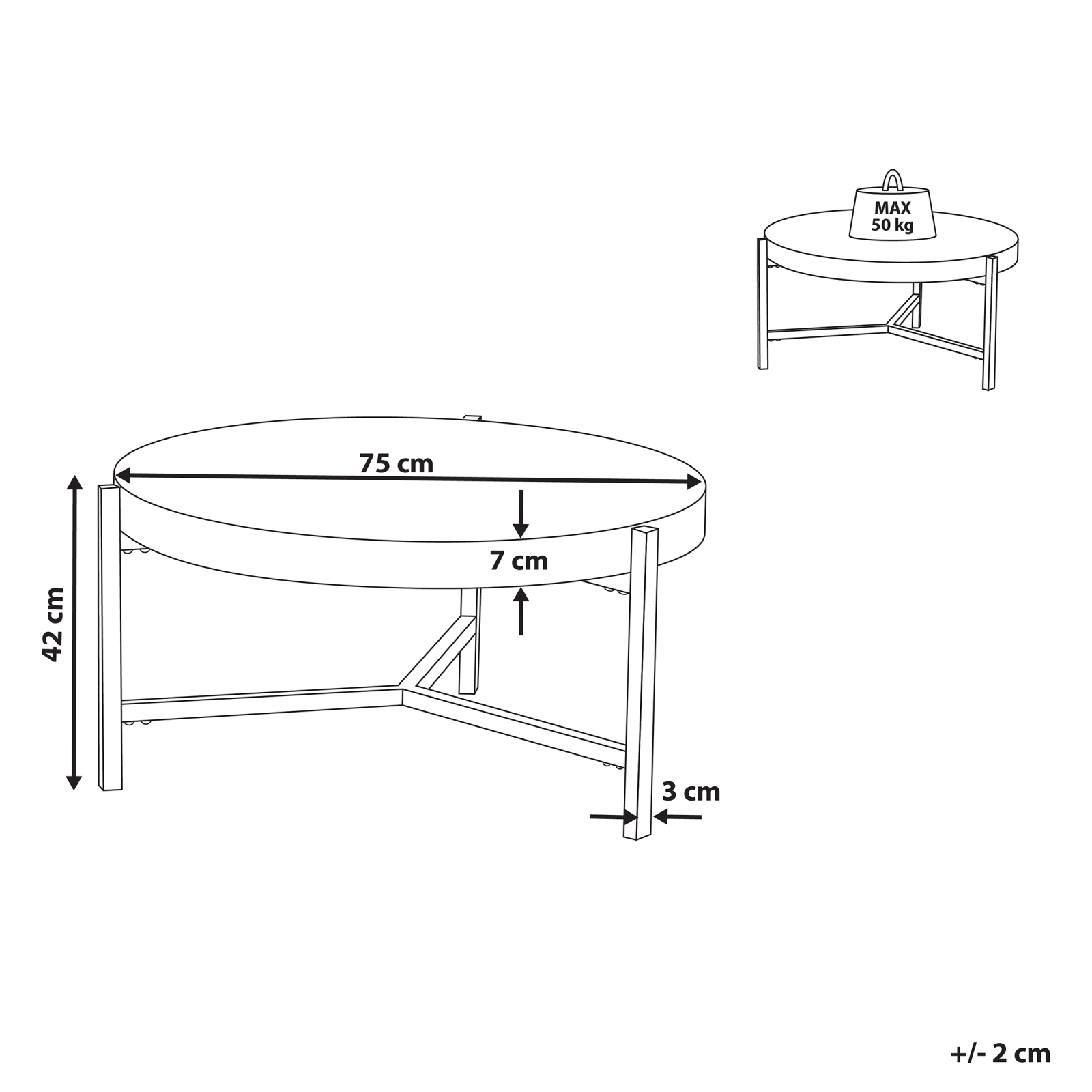 Masă rotundă pentru living. Cu aspectul său brut, această măsuță de cafea adaugă un aer industrial oricărui decor interior. Baza cu trei picioare susține un blat rotund din MDF furniruit cu efect de lemn, impresionant. Combinația simplă de metal negru și nuanța taupe a lemnului natural adaugă un vibe minimalist și se potrivește ușor cu multe stiluri de decor, de la modern la glam. Detalii: Tip de Produs: Masă de cafea. Stil: Industrial. Culoare: Maro. Nuanță: Taupe. Material: Lemn. Material primar: Fibră cu densitate medie (MDF). Material secundar: Metal. Detalii material picioare: Metal. Materialul suprafeței mesei: Lemn stratificat. Formă: Rotundă. Finisaj: Acoperire pulverizată. Depozitare: Nu. Dimensiuni: Lățime: 70 cm. Lungime: 70 cm. Înălțime: 42 cm. Greutate: 11 kg. Capacitatea de greutate: 50 kg. Oferta incude: 1 x Masă de cafea. Caracteristici cheie: Piesă cu accent atrăgător, Mobilier decorativ și funcțional, Materiale de cea mai bună calitate, Structură proiectată pentru a oferi stabilitate maximă, Pentru o protecție optimă, folosiți suporturi de pahare și șervete de masă pentru a feri suprafața de căldură și umezeală, Compact. Asamblare: Picioare neasamblate.20-40 min. Informații suplimentare: Pentru a menține durabilitatea și estetica blatului, recomandăm utilizarea suporturilor pentru farfurii și a suporturilor pentru pahare, precum și îndepărtarea petelor umede cât mai curând posibil, pentru a preveni deteriorarea produsului. Sfaturi de întreținere: Fibră cu densitate medie (MDF): 1.Curățați delicat cu un detergent blând și o cârpă moale, apoi ștergeți suprafața până la uscare completă. Metal: 1.Curățați cu un detergent delicat și o cârpă moale, apoi ștergeți bine. 2.Pentru a evita zgârieturile, nu folosiți produse de curățare abrazive. 3.Pentru elementele din cupru sau crom, folosiți un agent de lustruire.