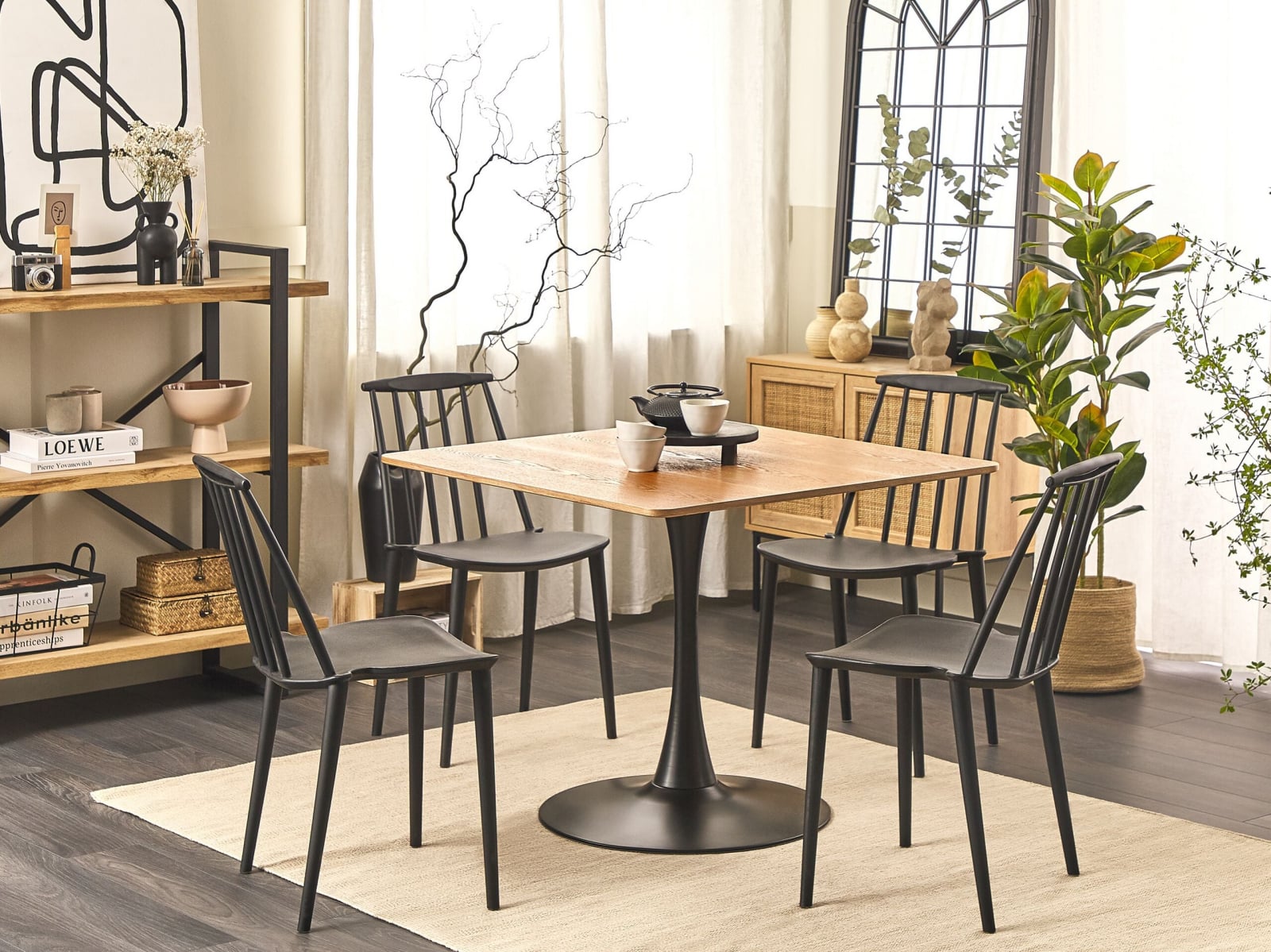 Masă pătrată în stil industrial. Masa pătrată cu design industrial se potrivește perfect în interioare moderne sau minimaliste. Blatul elegant maro deschis și baza neagră subțire oferă confort pentru până la 4 persoane. Ideală pentru serile în familie, această masă de dining adaugă un plus de simplitate și stil în orice spațiu de dining sau bucătărie. Detalii: Tip de Produs: Masă dining. Stil: Modern. Culoare: Maro. Nuanță: Maro deschis. Material: Lemn. Material primar: Fibră cu densitate medie (MDF). Material secundar: Fier. Detalii material picioare: Metal. Materialul suprafeței mesei: Lemn stratificat. Formă: Pătrată. Finisaj: Acoperire pulverizată. Locuri până la: 4 persoane. Dimensiuni: Bază: 58. Lățime: 90 cm. Lungime: 90 cm. Înălțime: 74 cm. Greutate: 16 kg. Capacitatea de greutate: 120 kg. Oferta incude: 1 x Masă. Caracteristici cheie: Se potrivește perfect în bucătărie sau în sufragerie, Potrivit pentru orice stil de decor interior, Aspect modern și structură puternică pentru o durabilitate maximă, Numai pentru utilizare în interior, Pentru o protecție optimă, folosiți suporturi de pahare și șervete de masă pentru a feri suprafața de căldură și umezeală, Asamblare rapidă și ușoară. Asamblare: Necesită asamblare completă.20-40 min. Informații suplimentare: Pentru a menține durabilitatea și estetica blatului, recomandăm utilizarea suporturilor pentru farfurii și a suporturilor pentru pahare, precum și îndepărtarea petelor umede cât mai curând posibil, pentru a preveni deteriorarea produsului. Sfaturi de întreținere: Fibră cu densitate medie (MDF): 1.Curățați delicat cu un detergent blând și o cârpă moale, apoi ștergeți suprafața până la uscare completă. Fier: 1.Curățați cu un detergent delicat și o cârpă moale, apoi ștergeți bine. 2.Pentru a evita zgârieturile, nu folosiți produse de curățare abrazive. 3.Pentru elementele din cupru sau crom, folosiți un agent de lustruire.