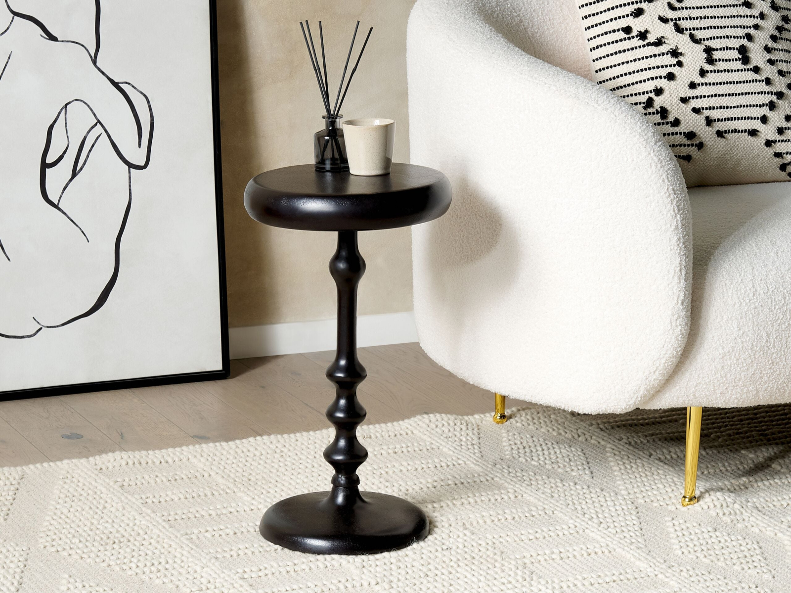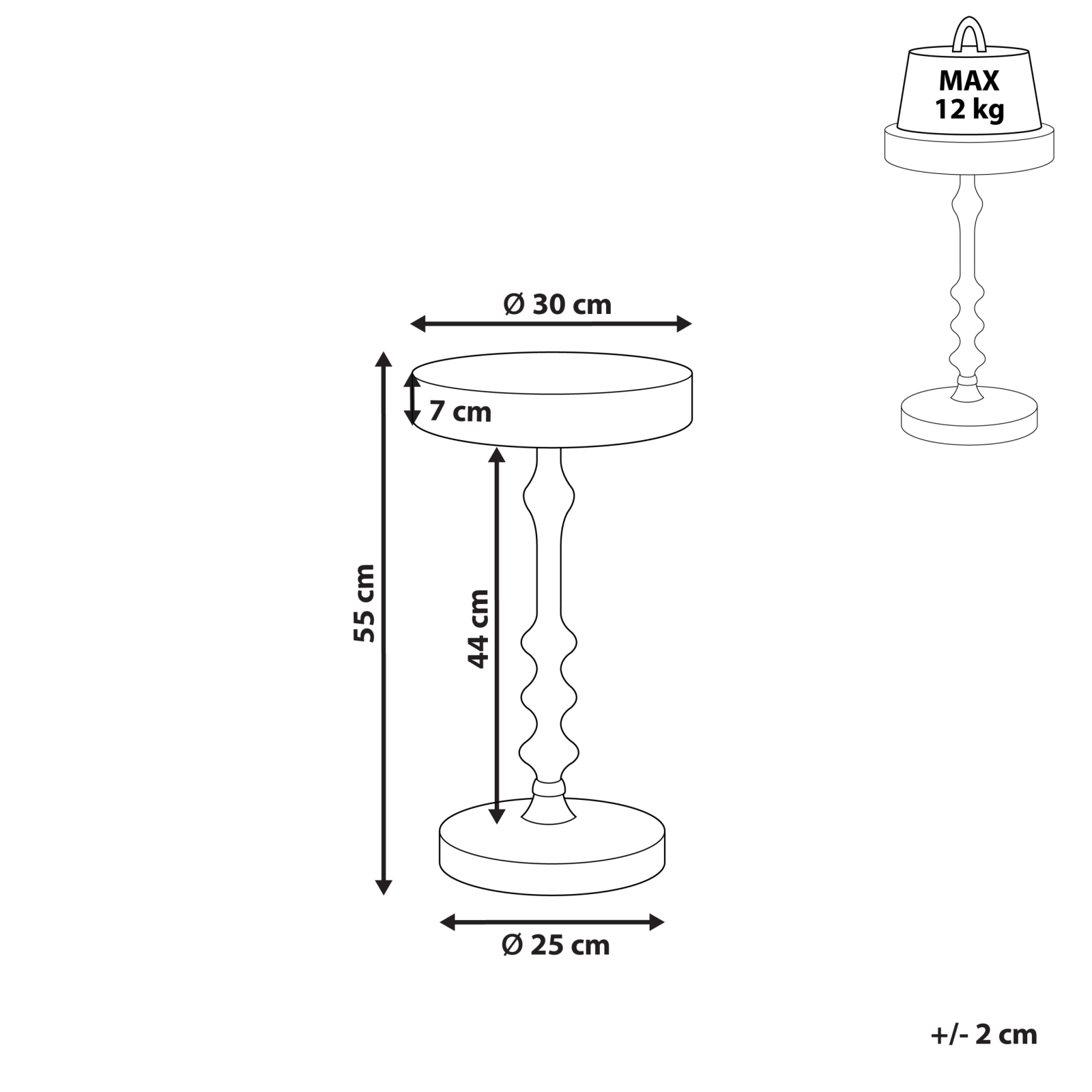 Masă laterală modernă. Adaugă această masă elegantă în livingul tău pentru a completa perfect decorul. Având un picior decorativ și un blat gros, reprezintă o piesă statement excelentă pentru un living modern, rustic sau tradițional. Cu această piesă poți crea un loc stilat pentru a expune accesoriile tale preferate sau pur și simplu pentru a umple un colț gol cu o masă decorativă și la modă. Detalii: Tip de Produs: Masă laterală. Stil: Modern. Culoare: Negru. Material: Metal. Material primar: Aluminiu. Detalii material picioare: Metal. Materialul suprafeței mesei: Metal. Formă: Rotundă. Finisaj: Vopsire electrostatică. Depozitare: Nu. Dimensiuni: Lățime: 30 cm. Lungime: 30 cm. Înălțime: 55 cm. Greutate: 3 kg. Capacitatea de greutate: 15 kg. Oferta incude: 1 x Masă laterală. Caracteristici cheie: Culori elegante și la modă, Adaugă o notă de stil în orice cameră, De înaltă calitate, Finisaje precise, Ușor de curățat. Asamblare: Necesită asamblare parțială.5-15 min. Informații suplimentare: Fiecare piesă este realizată manual și unică, astfel încât textura și culorile pot fi ușor diferite de cele prezentate în fotografie. Sfaturi de întreținere: Aluminiu: 1.Curățați cu un detergent delicat și o cârpă moale, apoi ștergeți bine. 2.Pentru a evita zgârieturile, nu folosiți produse de curățare abrazive. 3.Pentru elementele din cupru sau crom, folosiți un agent de lustruire.