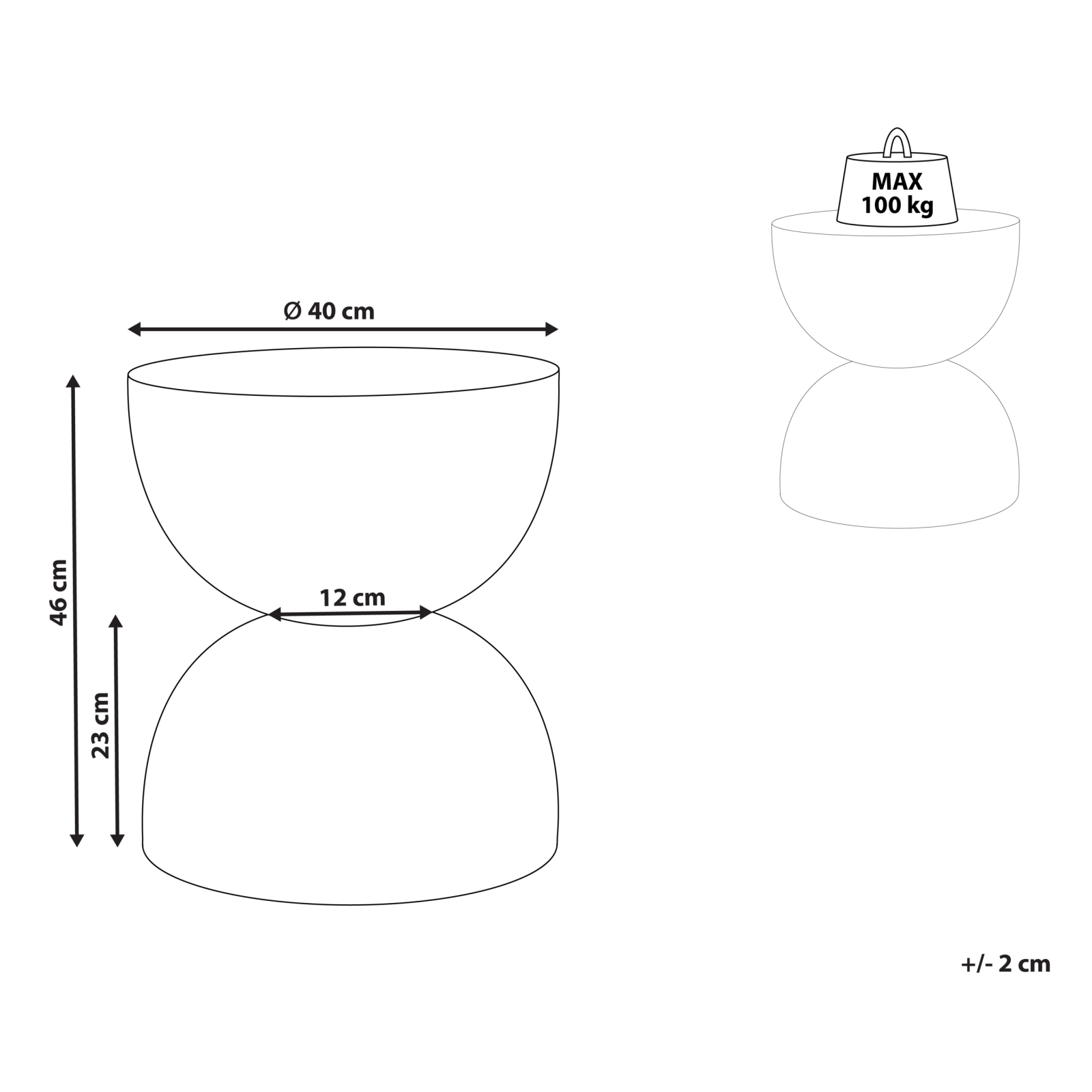 Măsuță de exterior în formă de clepsidră. Transformă-ți spațiul cu această măsuță rafinată, care adaugă un aer modern și sofisticat oricărui decor. Realizată din materiale durabile și rezistente la condițiile exterioare, este perfectă atât pentru interior, cât și pentru exterior. Designul său simplu, dar elegant, împreună cu modelul terrazzo, aduc un plus de stil și personalitate, fiind o alegere inspirată pentru a crea momente speciale alături de cei dragi. Detalii: Tip de Produs: Masă laterală. Stil: Modern. Culoare: Alb. Nuanță: Terrazzo alb. Material: Ceramică. Material primar: Magneziu oxidat. Material secundar: Fibră de sticlă. Materialul suprafeței mesei: Ceramică. Formă: Rotundă. Finisaj: Vopsit. Depozitare: Nu. Dimensiuni: Lățime: 40 cm. Lungime: 40 cm. Înălțime: 46 cm. Greutate: 8 kg. Capacitatea de greutate: 100 kg. Oferta incude: 1 x Masă laterală. Caracteristici cheie: Se adaptează la orice stil de interior, Atât în interior cât și în exterior, Rezistență UV, Rezistent la pete, Construcție robustă, rezistentă la coroziune, Finisaje precise. Asamblare: Nu necesită asamblare. Informații suplimentare: Vă rugăm să rețineți că fiecare produs este realizat manual. Pot exista mici diferențe de textură, culoare sau formă datorită caracteristicilor materialelor folosite, iar acestea nu vor fi considerate defecte. Sfaturi de întreținere: Magneziu oxidat: 1.Creat pentru utilizare în interior și exterior, fără necesități suplimentare de curățare. Pe timpul iernii, folosiți o husă de protecție sau depozitați mobilierul în interior.