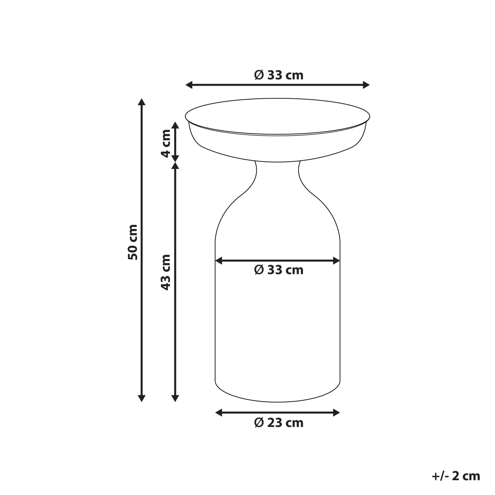 Măsuță laterală modernă cu finisaj mat. Această masă laterală lucrată manual combină designul modern cu metalul durabil, oferind o estetică subtilă și sofisticată. Blatul rotund cu finisaj mat invită la o conexiune tactilă, iar forma sa de designer adaugă eleganță atemporală spațiului tău, îmbinând perfect funcționalitatea cu stilul. Detalii: Tip de Produs: Masă laterală. Stil: Modern. Culoare: Negru. Material: Metal. Material primar: Fier. Detalii material picioare: Metal. Materialul suprafeței mesei: Metal. Formă: Rotundă. Finisaj: Acoperire pulverizată. Depozitare: Nu. Dimensiuni: Lățime: 33 cm. Lungime: 33 cm. Înălțime: 50 cm. Greutate: 3 kg. Capacitatea de greutate: 10 kg. Oferta incude: 1 x Masă laterală. Caracteristici cheie: Adaugă o notă de stil în orice cameră, Mobilier decorativ și funcțional, Ideal atât pentru dormitor, cât și pentru camera de zi, Construcție solidă și stabilă, Finisaje precise, Ușor de curățat. Asamblare: Nu necesită asamblare. Informații suplimentare: Vă rugăm să rețineți că fiecare produs este realizat manual. Pot exista mici diferențe de textură, culoare sau formă datorită caracteristicilor materialelor folosite, iar acestea nu vor fi considerate defecte. Sfaturi de întreținere: Fier: 1.Curățați cu un detergent delicat și o cârpă moale, apoi ștergeți bine. 2.Pentru a evita zgârieturile, nu folosiți produse de curățare abrazive. 3.Pentru elementele din cupru sau crom, folosiți un agent de lustruire.