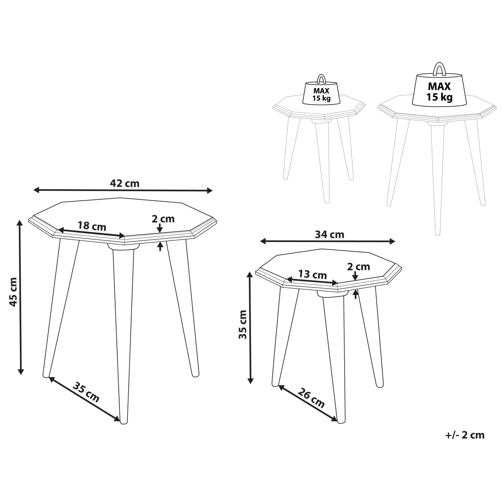 Măsuțe stil retro cu efect uzat. Acest set de 2 măsuțe laterale va adăuga un accent rustic sau vintage oricărei camere. Blaturile sunt realizate manual din MDF, iar picioarele stabile și elegante sunt din lemn masiv de mango. Aceste măsuțe sunt perfecte pentru a adăuga atât stil, cât și funcționalitate în orice spațiu. Detalii: Tip de Produs: Masă laterală. Stil: Retro. Culoare: Albastru. Nuanță: Albastru deschis. Material: Lemn. Material primar: Fibră cu densitate medie (MDF). Detalii material picioare: Lemn. Materialul suprafeței mesei: Lemn stratificat. Formă: Octagonală. Finisaj: Vopsit. Dimensiuni: Masă mare: 42x42x45. Dimensiuni generale: 42x42x45. Masă mică: 34x34x35. Greutate: 4.8 kg. Capacitatea de greutate: 15 kg. Oferta incude: 2 x Masă laterală. Caracteristici cheie: Ideal atât pentru dormitor, cât și pentru camera de zi, Mobilier decorativ și funcțional, Excepțional de ușor de întreținut, Materiale de cea mai bună calitate, Finisaje precise. Asamblare: Picioare neasamblate.5-15 min. Informații suplimentare: Pentru a menține durabilitatea și estetica blatului, recomandăm utilizarea suporturilor pentru farfurii și a suporturilor pentru pahare, precum și îndepărtarea petelor umede cât mai curând posibil, pentru a preveni deteriorarea produsului. Trebuie remarcat faptul că lemnul este un material natural și, prin urmare, fiecare obiect din lemn diferă de celelalte. Diferențele de culoare și de textură a suprafeței (noduri de lemn, dungi etc.) sunt caracteristici intrinseci ale materialului și, prin urmare, nu sunt considerate defecte ale produsului. Sfaturi de întreținere: Lemn de mango: 1.Curățați cu un detergent delicat și o cârpă moale, urmând direcția fibrelor. 2.Ștergeți imediat după curățare pentru a preveni acumularea apei pe produs. 3.Pentru a păstra mobila finisată cu ulei în stare bună, este necesar să o ungeți cu ulei după un timp. Fibră cu densitate medie (MDF): 1.Curățați delicat cu un detergent blând și o cârpă moale, apoi ștergeți suprafața până la uscare completă.