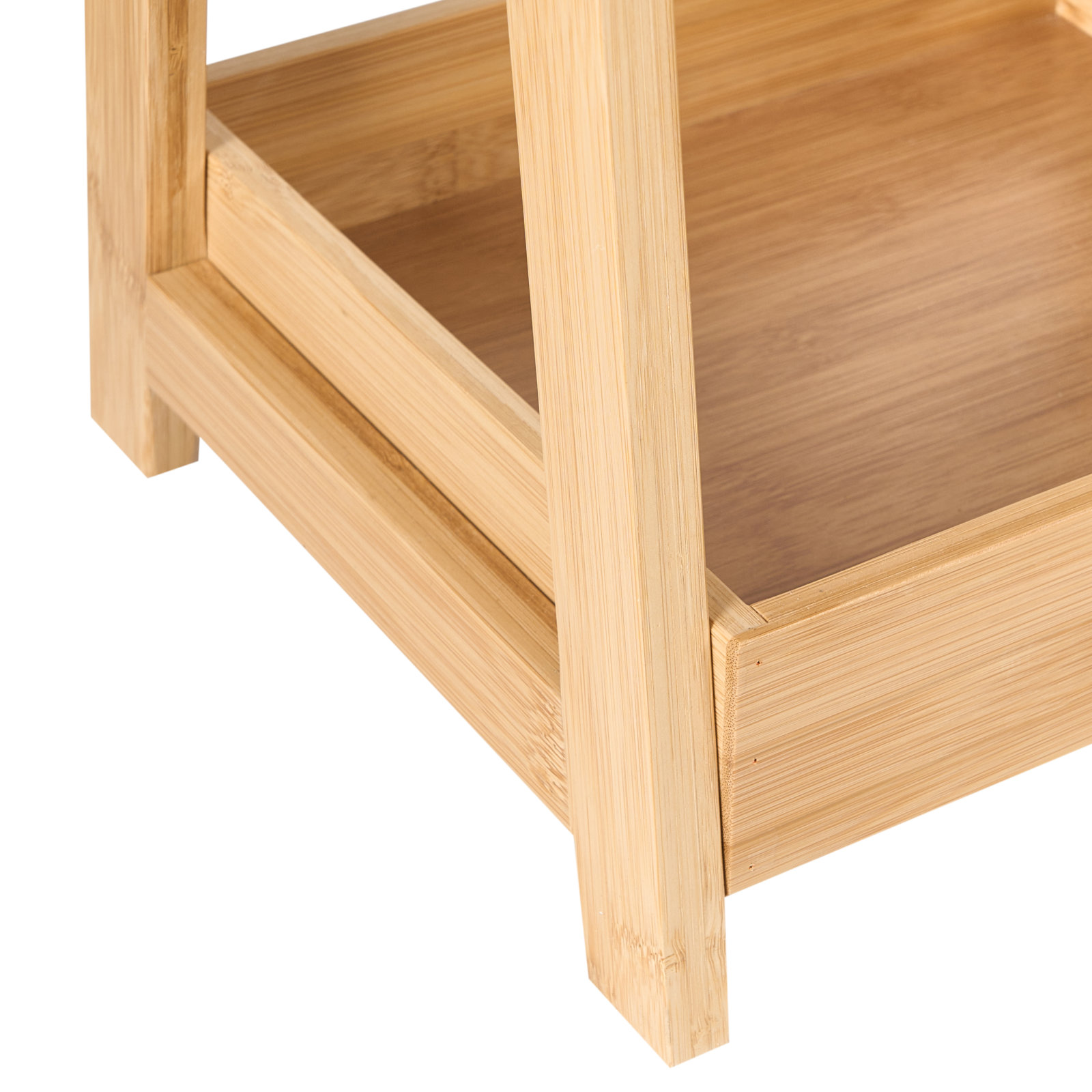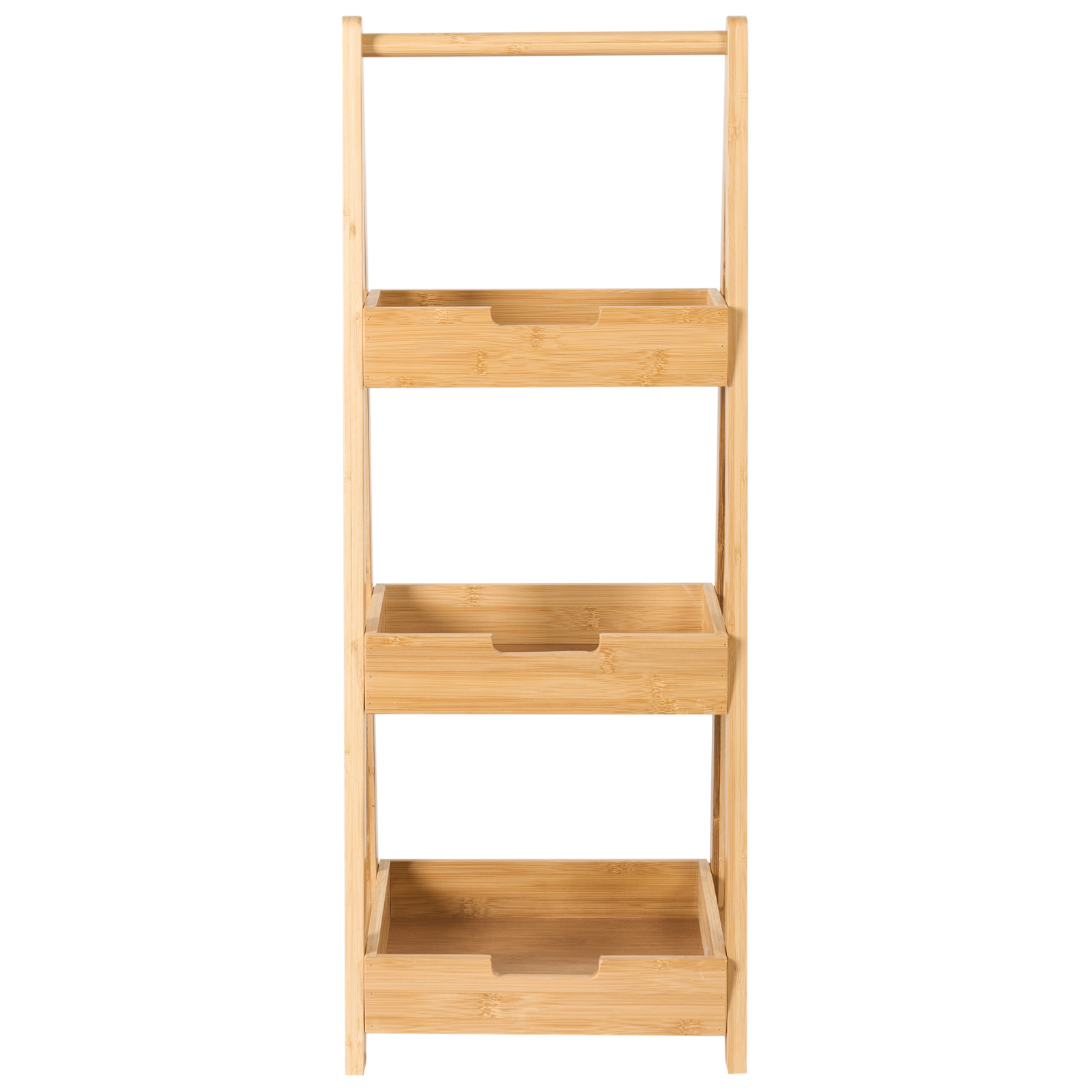Raft pentru baie cu 3 niveluri. Această unitate de rafturi cu 3 nivele este alegerea perfectă pentru a completa aspectul băii tale. Fabricată din bambus natural, oferă o nuanță deschisă și organică ce se potrivește cu orice stil de decor. Cu margini ridicate pentru a-ți menține accesoriile în ordine, această piesă elegantă și funcțională se va integra perfect atât în spațiile moderne, cât și în cele clasice. Detalii: Tip de Produs: Etajeră pentru baie. Stil: Minimalist. Culoare: Maro. Material: Lemn. Material primar: Lemn de bambus. Număr de rafturi: 3. Finisaj: Lac transparent. Dimensiuni: Adâncime: 25 cm. Lățime: 30 cm. Înălțime: 78 cm. Greutate: 2 kg. Capacitatea maximă a raftului: 3 kg. Oferta incude: 1 x Unitate de depozitare cu rafturi. Caracteristici cheie: Granulele și nodurile lemnului natural fac ca fiecare piesă de mobilier să fie unică, Mobilier decorativ și funcțional, Material impermeabil, ușor de curățat, Execuție robustă, Ușor de mutat. Asamblare: Necesită asamblare completă.20-40 min. Informații suplimentare: Trebuie remarcat faptul că lemnul este un material natural și, prin urmare, fiecare obiect din lemn diferă de celelalte. Diferențele de culoare și de textură a suprafeței (noduri de lemn, dungi etc.) sunt caracteristici intrinseci ale materialului și, prin urmare, nu sunt considerate defecte ale produsului. Sfaturi de întreținere: Lemn de bambus: 1.Curățați cu un detergent delicat și o cârpă moale, urmând direcția fibrelor. 2.Ștergeți imediat după curățare pentru a preveni acumularea apei pe produs. 3.Pentru a păstra mobila finisată cu ulei în stare bună, este necesar să o ungeți cu ulei după un timp.