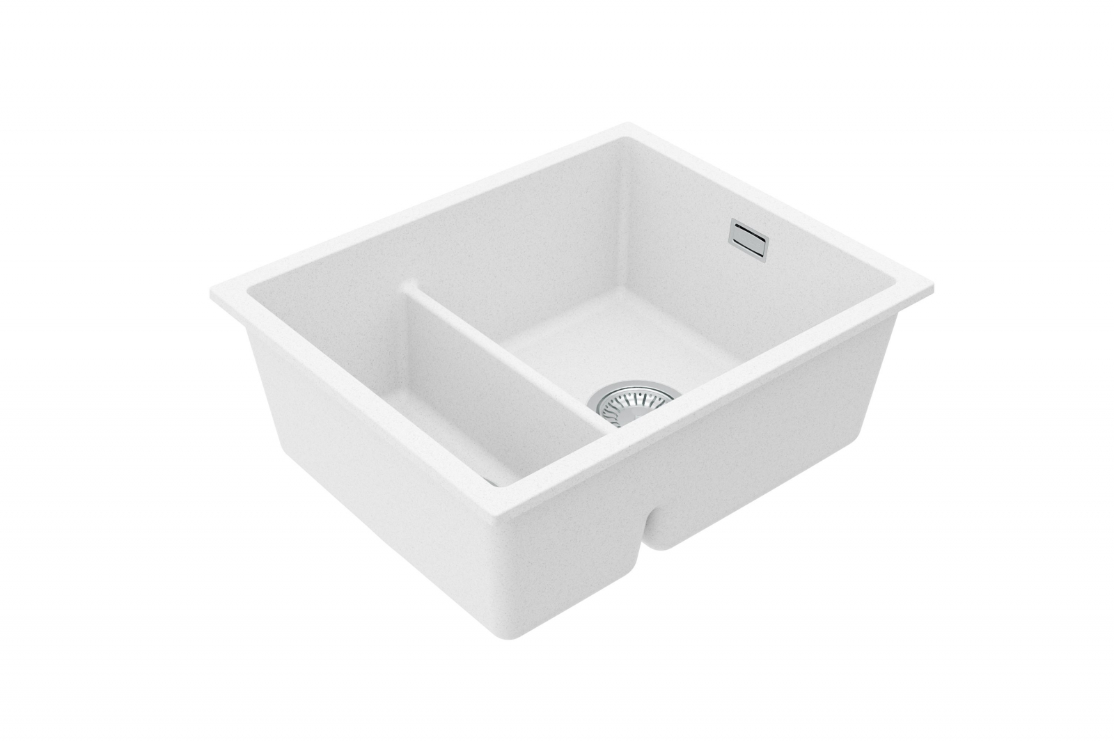Chiuveta compozit  Omni 50    Alveus Omni 50  este o chiuveta de bucatarie realizata din material compozit, granital. Este formata din doua cuve, nu este prevazuta cu picurator si are dimensiunea totala de 55 x 45 cm.  Acest model de chiuveta Alveus este conceput pentru montajul pe blatul de bucatarie (incastrabil) sau sub blat, fiind parte continua a suprafetei de lucru.  Culorile disponibile sunt: alb,terra,bej,gri,negru, ce ofera un contrast placut bucatariei dumneavoastra.  Chiuveta   Alveus Omni 50,  formata din doua cuve  avand dimensiunile  30.5  x 40  x 19.8 cm respectiv 18 x 40 x 19.8 cm, potrivite  pentru spalarea vaselor. Aceasta chiuveta este confectionata dintr-un amestec compozit de calitate superioara, numit granital. Datorita procesarii atente a materialului, suprafata chiuvetei de bucatarie este neteda, placuta la atingere si permite o curatare usoara. In plus, ii ofera si alte avantaje, cum ar fi: rezistenta la temperaturi inalte, la utilizare intensa, rezistenta maxima la socuri termice si mecanice, nu se fisureaza si nu se zgarie.  Chiuveta vine insotita cu urmatoarele accesorii:  sifon;  ventil de 3 1 2  ;  sistem de prindere.
