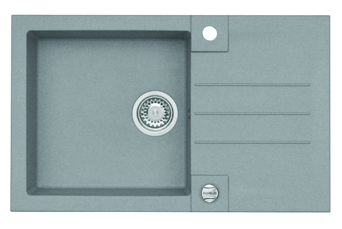 Chiuveta compozit Alveus  Rock 130   Alveus Rock 130   este o chiuveta de bucatarie realizata din material compozit, granital. Este formata dintr-o cuva spatioasa, prevazuta cu picurator si are dimensiunea totala de 78 x 48 cm.  Acest model de chiuveta Alveus este conceput pentru montajul pe blatul de bucatarie (incastrabil), fiind parte continua a suprafetei de lucru.  Culori disponibile: alb,terra,bej,gri,neru  ce ofera un contrast placut bucatariei dumneavoastra.  Chiuveta   Alveus Rock 130   are o forma dreptunghiulara, cu dimensiunea cuvei de 49 x 40 x 18 cm , potrivita  pentru spalarea vaselor de orice dimensiune. Aceasta chiuveta este confectionata dintr-un amestec compozit de calitate superioara, numit granital. Datorita procesarii atente a materialului, suprafata chiuvetei de bucatarie este neteda, placuta la atingere si permite o curatare usoara. In plus, ii ofera si alte avantaje, cum ar fi: rezistenta la temperaturi inalte, la utilizare intensa, rezistenta maxima la socuri termice si mecanice, nu se fisureaza si nu se zgarie.  Chiuveta vine insotita cu urmatoarele accesorii:    sifon cu pop up;  ventil de 3 1 2  ;  sistem de prindere.