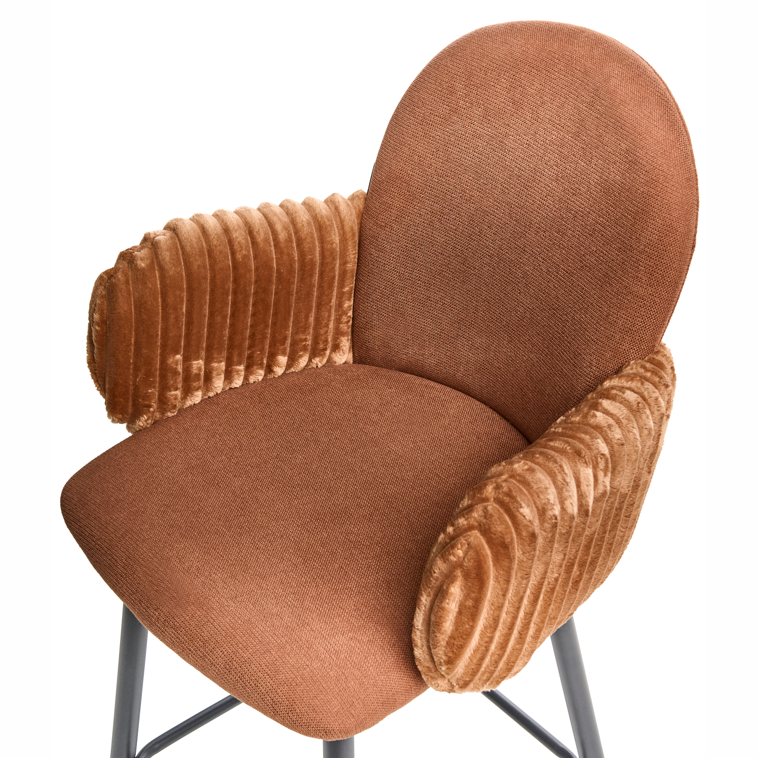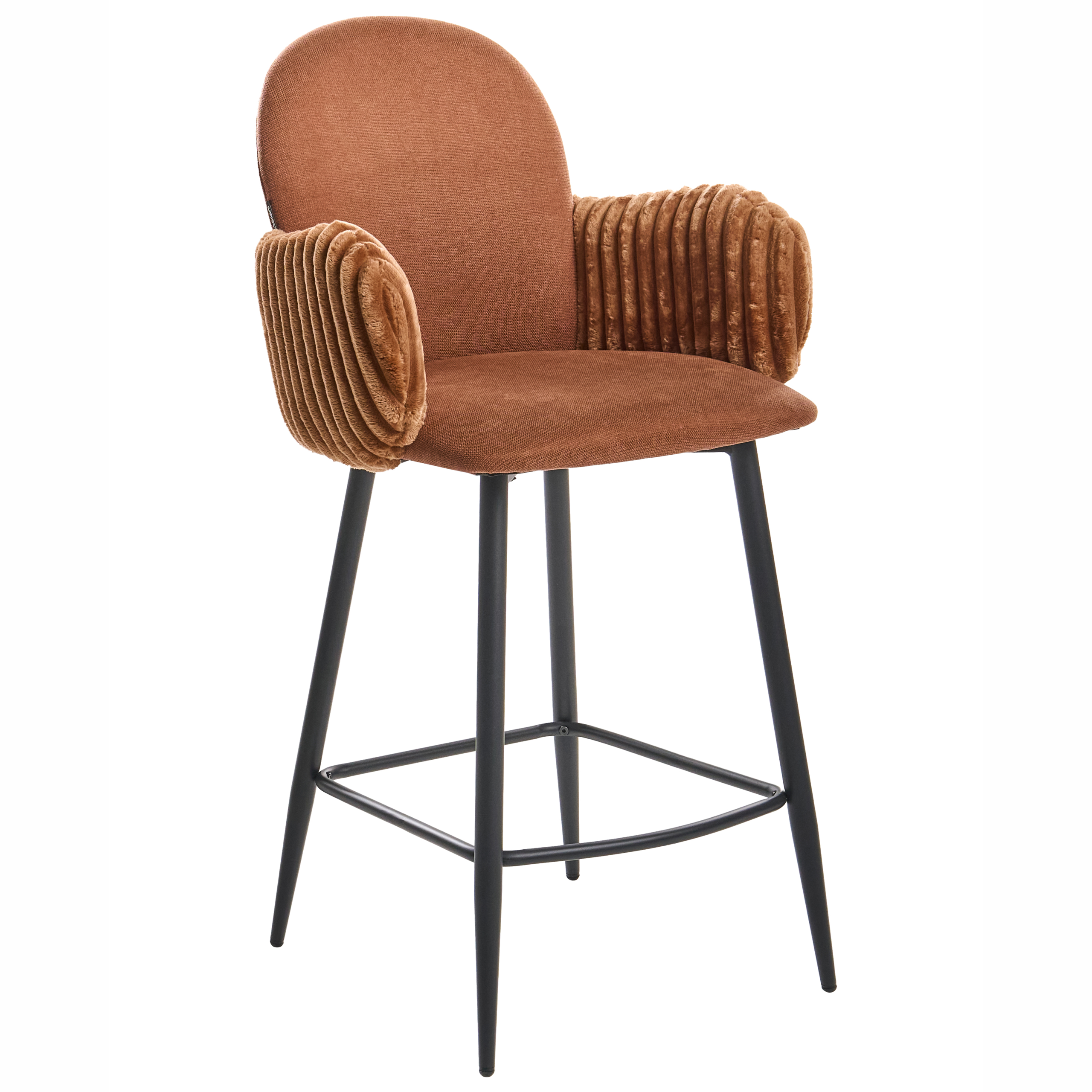 Scaune de bar tapițate cu cotiere. Adaugă o notă de eleganță retro în casa ta cu aceste două scaune. Tapițeria din țesătură de înaltă calitate nu doar că oferă un confort desăvârșit, ci este și impermeabilă, ceea ce o face foarte practică pentru utilizarea de zi cu zi. Cotierele moi și plăcute la atingere te invită să te relaxezi, în timp ce picioarele moderne din metal asigură stabilitate și durabilitate. Perfecte pentru a transforma orice sufragerie sau zonă de dining într-un loc primitor și plin de stil, acestea îmbină funcționalitatea cu designul rafinat. Detalii: Tip de Produs: Scaun de bar. Stil: Retro. Culoare: Maro. Material: Țesătură. Material primar: Țesătură. Material secundar: Burete. Detalii material picioare: Metal. Compoziția materialului: 100% Poliester. Cotiere: Da. Finisaj: Acoperire pulverizată. Stivuire: Nu. Dimensiuni: Înălțimea cotierei: 84 cm. Adâncime: 54 cm. Înălțimea scaunului: 66 cm. Lățime: 50 cm. Înălțime: 100 cm. Suprafața de ședere: 42x45 cm. Greutate: 7 kg. Capacitatea de greutate: 150 kg. Oferta incude: 2 x Scaun de bar. Caracteristici cheie: Incredibil de moale, Stil retro, Creează o atmosferă confortabilă, Materiale de cea mai bună calitate, Capace pentru picioare pentru protecția suprafeței. Asamblare: Necesită asamblare parțială.5-15 min. Sfaturi de întreținere: Țesătură: 1.Vă rugăm să curățați cu un șampon uscat și un burete umed sau cu un detergent ușor. 2.Aspirati folosind un accesoriu potrivit. Fier: 1.Curățați cu un detergent delicat și o cârpă moale, apoi ștergeți bine. 2.Pentru a evita zgârieturile, nu folosiți produse de curățare abrazive. 3.Pentru elementele din cupru sau crom, folosiți un agent de lustruire.