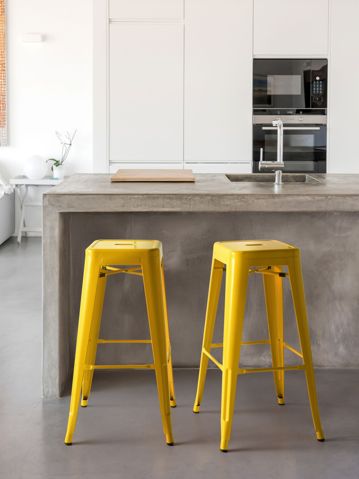 Set de taburete de bucătărie cu design industrial. Acest set de două scaune de bar galbene îmbină stilul modern și industrial cu funcționalitatea de care ai nevoie în orice spațiu. Designul inspirat din stilul loft adaugă un plus de personalitate, iar caracteristica stivuibilă le face ușor de organizat și potrivite pentru bucătărie, birou, baie sau garaj. Realizate din oțel vopsit electrostatic, oferă stabilitate și protecție pentru podea datorită capetelor speciale anti-zgârieturi. Suporturile laterale duble nu doar că întăresc structura, ci oferă și un loc confortabil pentru odihna picioarelor. Detalii: Tip de Produs: Scaun de bar. Stil: Industrial. Culoare: Galben. Culoarea cadrului: Galben. Material: Metal. Material primar: Oțel. Detalii material picioare: Metal. Material scaun: Metal. Cotiere: Nu. Finisaj: Lustruit. Stivuire: Da. Dimensiuni: Adâncime: 44 cm. Înălțimea scaunului: 76 cm. Lățime: 44 cm. Înălțime: 76 cm. Suprafața de ședere: 31x31 cm. Greutate: 6 kg. Capacitatea de greutate: 200 kg. Oferta incude: 2 x Scaun. Caracteristici cheie: Picioare robuste pentru o stabilitate optimă, Ideală pentru interioarele în stil industrial, Materiale de înaltă calitate, Robust și rezistent, Ușor de curățat. Asamblare: Nu necesită asamblare. Sfaturi de întreținere: Oțel: 1.Curățați cu un detergent delicat și o cârpă moale, apoi ștergeți bine. 2.Pentru a evita zgârieturile, nu folosiți produse de curățare abrazive. 3.Pentru elementele din cupru sau crom, folosiți un agent de lustruire.