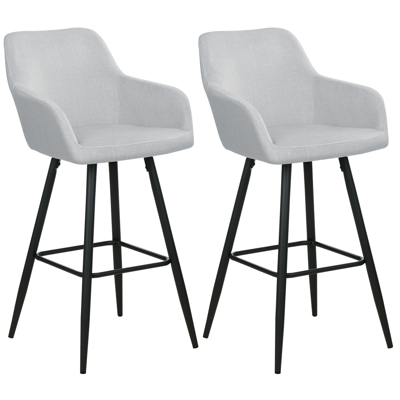 Set de 2 scaune de bar moderne. Adaugă un plus de rafinament spațiului tău cu aceste scaune de bar din catifea, prevăzute cu suport pentru picioare, pentru un plus de confort și funcționalitate. Designul elegant, completat de picioarele metalice oblice, aduce un aer modern oricărei încăperi. Fie că le așezi în jurul insulei din bucătărie sau lângă o masă de bar, creează un ambient plin de stil și personalitate. Detalii: Tip de Produs: Scaun de bar. Stil: Modern. Culoare: Gri. Nuanță: Gri deschis. Material: Țesătură. Material primar: Catifea. Material secundar: Oțel. Detalii material picioare: Metal. Material scaun: Țesătură. Compoziția materialului: 100% Poliester. Cotiere: Da. Finisaj: Acoperire pulverizată. Stivuire: Nu. Dimensiuni: Înălțimea cotierei: 88 cm. Adâncime: 54 cm. Grosimea scaunului: 6 cm. Înălțimea scaunului: 74 cm. Lățime: 50 cm. Înălțime: 103 cm. Suprafața de ședere: 45x29 cm. Greutate: 7 kg. Capacitatea de greutate: 150 kg. Oferta incude: 2 x Scaun de bar. Caracteristici cheie: Formă curbată pentru a maximiza confortul, Foarte chic, Se integrează practic cu orice stil de amenajare, Ideal atât pentru dormitor, cât și pentru camera de zi, Tapițerie din țesătură de înaltă calitate, Capace pentru picioare pentru protecția suprafeței. Asamblare: Picioare neasamblate.5-15 min. Informații suplimentare: Pentru o stabilitate și siguranță maximă în utilizare, se recomandă să verificați la aproximativ 2 săptămâni după instalare dacă produsul a fost asamblat corect. De asemenea, se recomandă să verificați dacă șuruburile sunt strânse corect, o dată la 3 luni. Rețineți că țesătura de catifea poate avea un aspect puțin diferit atunci când este expusă la lumină; tinde să fie mai strălucitoare și mai luminoasă în lumina soarelui, în timp ce în lumină artificială are un ton diferit, mai închis. Datorită tipului de țesătură, tonul catifelei poate varia, de asemenea, atunci când este atinsă din direcții diferite. Pentru a uniformiza culoarea și a scăpa de lovituri și cute, materialul trebuie mângâiat cu palma deschisă într-o singură direcție, frecat cu o cârpă umedă sau călcat cu abur. Sfaturi de întreținere: Catifea: 1.Vă rugăm să curățați cu un șampon uscat și un burete umed sau cu un detergent ușor. 2.Aspirati folosind un accesoriu potrivit. Oțel: 1.Curățați cu un detergent delicat și o cârpă moale, apoi ștergeți bine. 2.Pentru a evita zgârieturile, nu folosiți produse de curățare abrazive. 3.Pentru elementele din cupru sau crom, folosiți un agent de lustruire.