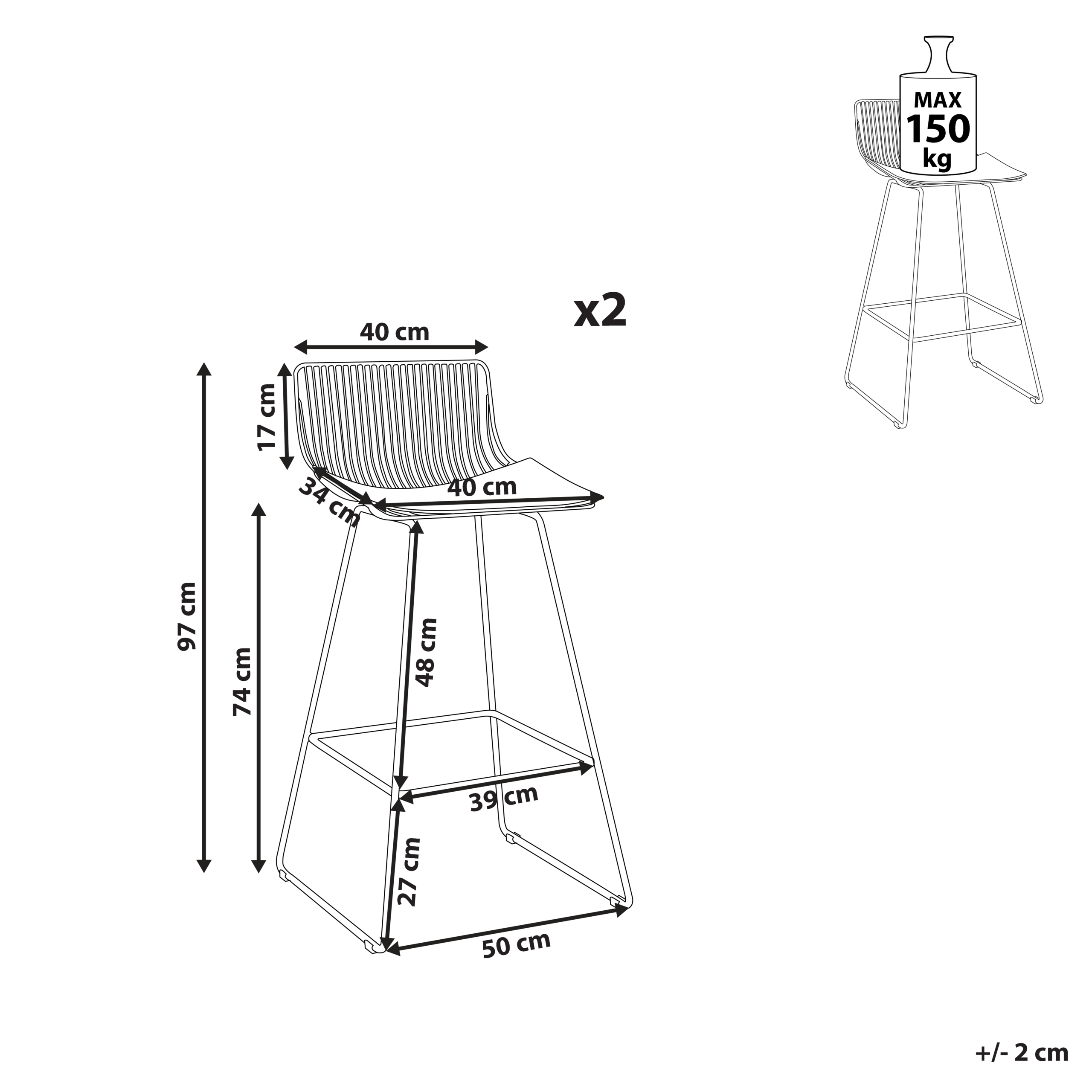 Scaune de bar metalice înalte. Realizat din metal și finisat într-o nuanță roz auriu strălucitoare, acest set de scaune de bar este expresia rafinamentului și a stilului glamour industrial. Șezuturile sunt prevăzute cu perne confortabile, tapițate în piele ecologică neagră, pentru un plus de confort. Spătarul scurt, din metal cu design tip plasă, nu doar arată impecabil, ci oferă și susținerea ideală pentru spate. O alegere îndrăzneață pentru cei care își doresc să transforme bucătăria sau zona de dining într-un spațiu cu personalitate. Detalii: Tip de Produs: Scaun de bar. Stil: Industrial. Culoare: Roz auriu. Material: Metal. Material primar: Oțel. Material secundar: Piele ecologică. Detalii material picioare: Metal. Material scaun: Piele ecologică. Compoziția materialului: 100% Piele sintetică. Cotiere: Nu. Finisaj: Acoperire pulverizată. Stivuire: Nu. Dimensiuni: Adâncime: 49 cm. Înălțimea scaunului: 74 cm. Lățime: 50 cm. Înălțime: 97 cm. Suprafața de ședere: 40x34 cm. Greutate: 6 kg. Capacitatea de greutate: 150 kg. Oferta incude: 2 x Scaun de bar. Caracteristici cheie: Se potrivește perfect în bucătărie sau în sufragerie, Ideală pentru interioarele în stil industrial, Culori elegante și la modă, Construcție robustă, Capace pentru picioare pentru protecția suprafeței. Asamblare: Necesită asamblare parțială.5-15 min. Informații suplimentare: Pentru o stabilitate și siguranță maximă în utilizare, se recomandă să verificați la aproximativ 2 săptămâni după instalare dacă produsul a fost asamblat corect. De asemenea, se recomandă să verificați dacă șuruburile sunt strânse corect, o dată la 3 luni. Sfaturi de întreținere: Oțel: 1.Curățați cu un detergent delicat și o cârpă moale, apoi ștergeți bine. 2.Pentru a evita zgârieturile, nu folosiți produse de curățare abrazive. 3.Pentru elementele din cupru sau crom, folosiți un agent de lustruire. Piele ecologică: 1.O dată pe săptămână, ștergeți cu o cârpă umedă și uscați după curățare. Nu folosiți substanțe uleioase. 2.Vă rugăm să curățați cu apă distilată și să folosiți detergenți pe bază de săpun pentru petele dificile. 3.Utilizați doar soluții de curățare delicate și balsamuri dedicate pielii ecologice. 4.Aspirati folosind un accesoriu potrivit.