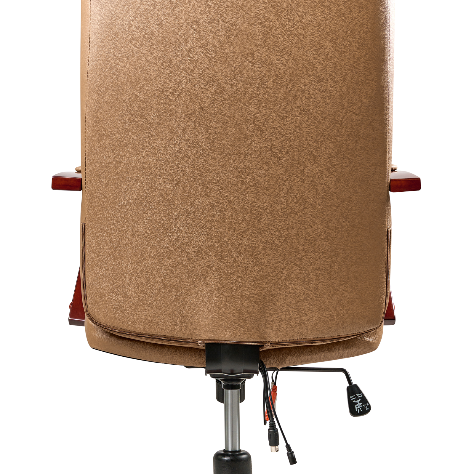 Fotoliu de birou pivotant cu funcție de masaj și încălzire. Echilibrul perfect între confort, funcționalitate și eleganță. Acest fotoliu de birou este conceput pentru a-ți oferi susținere optimă în timpul orelor petrecute la birou, ajutându-te să menții o poziție corectă și relaxată. Tetiera ergonomică și cotierele moi contribuie la eliberarea tensiunii din zona gâtului și a umerilor. Înălțimea se ajustează ușor, iar telecomanda îți oferă acces la 9 programe de masaj, 3 trepte de intensitate și funcția de încălzire a șezutului. Cele 4 puncte de vibrație din zona lombară și spate oferă o senzație plăcută de destindere. Tapițeria din piele naturală, într-o nuanță delicată de maro deschis, conferă un aspect rafinat, iar baza din lemn cu 5 roți din nailon completează perfect combinația între design clasic și contemporan. Detalii: Tip de Produs: Scaun de birou. Stil: Tradițional. Culoare: Maro. Nuanță: Maro închis. Material: Piele naturală. Material primar: Piele naturală. Material secundar: Oțel. Detalii material picioare: Lemn. Material scaun: Piele naturală. Compoziția materialului: 50% Piele PVC. Funcții suplimentare: Încălzire. Piese reglabile: Înălțime scaun. Cotiere: Da. Suport pentru picioare inclus: Nu. Reclinabil: Nu. Structura scaunului: Placaj. Tensiune nominală: 220-240 V (50 Hz). Înclinare: Da. Dimensiuni: Înălțimea cotierei: 66-76 cm. Adâncime: 66 cm. Înălțimea scaunului: 43-53 cm. Lățime: 66 cm. Înălțime: 118-128 cm. Suprafața de ședere: 50x45 cm. Greutate: 16 kg. Capacitatea de greutate: 120 kg. Oferta incude: 1 x Scaun de masaj. Caracteristici cheie: Mecanism de înclinare pentru relaxarea spatelui încordat, 9 programe de masaj, 3 intensități de masaj, Reglarea pneumatică a înălțimii scaunului, Funcție de încălzire pentru un confort maxim, Funcție de frână de siguranță care blochează roțile pentru siguranță, se deblochează pentru mobilitate. Design clasic. Asamblare: Necesită asamblare completă.20-40 min. Informații suplimentare: Pentru o stabilitate și siguranță maximă în utilizare, se recomandă să verificați la aproximativ 2 săptămâni după instalare dacă produsul a fost asamblat corect. De asemenea, se recomandă să verificați dacă șuruburile sunt strânse corect, o dată la 3 luni. Trebuie remarcat faptul că lemnul este un material natural și, prin urmare, fiecare obiect din lemn diferă de celelalte. Diferențele de culoare și de textură a suprafeței (noduri de lemn, dungi etc.) sunt caracteristici intrinseci ale materialului și, prin urmare, nu sunt considerate defecte ale produsului. Sfaturi de întreținere: Piele naturală: 1.Ștergeți cu o cârpă de bumbac o dată pe săptămână; curățați cu apă o dată pe lună și uscați după curățare. 2.Petele mici pot fi îndepărtate cu un cauciuc nedetonat. Pentru petele dificile folosiți un detergent ușor. Folosiți oțet pentru petele de grăsime. 3.Nu utilizați detergenți abrazivi, deoarece aceștia pot deteriora materialul. Evitați frecarea puternică, deoarece aceasta poate lăsa zgârieturi pe suprafață. 4.Tratați suprafața cu un protector pentru piele înainte de sezonul rece. Evitați utilizarea soluțiilor pentru îndepărtarea petelor, a terebentinei, a cremei pentru pantofi sau a oricărui tip de grăsime. Produsele de curățare abrazive pot cauza apariția petelor sau pot închide nuanța pielii. 5.Căldura și lumina soarelui fac ca pielea să se usuce și să-și piardă culoarea. Țineți-o departe de lumina directă a soarelui sau de calorifer. Placaj: 1.Curățați delicat cu un detergent blând și o cârpă moale, apoi ștergeți suprafața până la uscare completă.