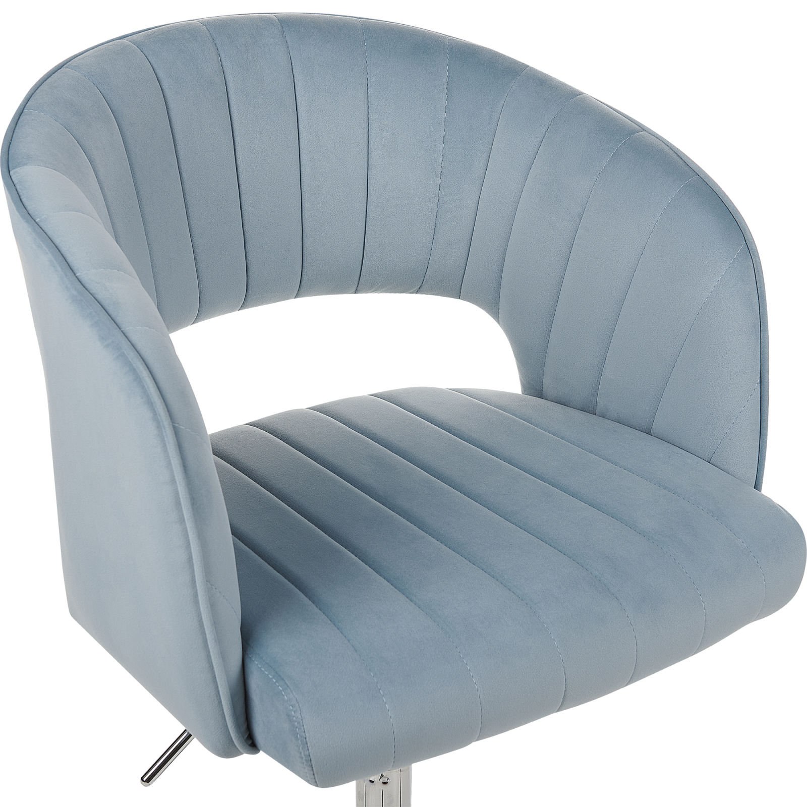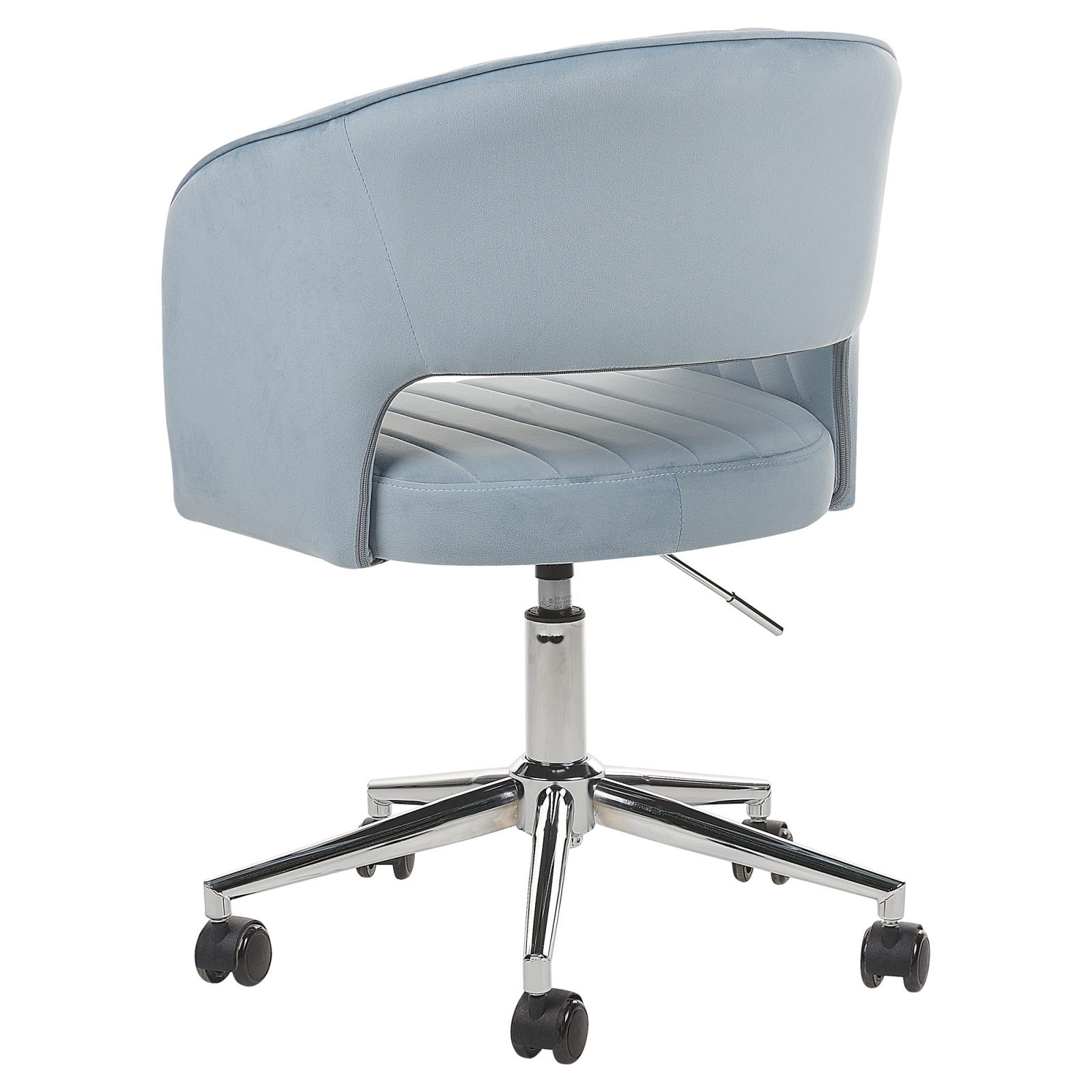 Scaun de birou pivotant. Răsfață-te în confortul acestui scaun de birou tapițat, care îți oferă o experiență plăcută și relaxantă pe toată durata zilei de muncă. Spătarul curbat, capitonat, adaugă un plus de eleganță, oferind suport și un design vizual atrăgător. Datorită reglării convenabile a înălțimii cu sistem pneumatic, poți ajusta cu ușurință scaunul la poziția dorită. Rotilele pivotante permit mișcări fluide, iar tapițeria strălucitoare conferă un farmec sofisticat. Este piesa perfectă pentru birou, dar se potrivește de minune și în living sau dormitor. Detalii: Tip de Produs: Scaun de birou. Stil: Scandinav. Culoare: Albastru. Nuanță: Albastru deschis. Material: Țesătură. Material primar: Catifea. Material secundar: Placaj. Detalii material picioare: Material sintetic. Material scaun: Țesătură. Compoziția materialului: 100% Poliester. Rotire la 360°: Da. Piese reglabile: Înălțime scaun. Cotiere: Da. Finisaj: Acoperire pulverizată. Protecții pentru picioare incluse: Nu. Înclinare: Nu. Dimensiuni: Adâncime: 57 cm. Înălțimea scaunului: 44-54 cm. Lățime: 57 cm. Înălțime: 78-88 cm. Suprafața de ședere: 47x47 cm. Greutate: 7 kg. Capacitatea de greutate: 120 kg. Oferta incude: 1 x Scaun. Caracteristici cheie: Reglarea pneumatică a înălțimii scaunului, Cu un tufting decorativ clasic, Completare elegantă pentru orice interior, Adaugă o notă de stil în orice cameră, Țesătură de catifea netedă și mătăsoasă. Asamblare: Necesită asamblare parțială.20-40 min. Informații suplimentare: Pentru o stabilitate și siguranță maximă în utilizare, se recomandă să verificați la aproximativ 2 săptămâni după instalare dacă produsul a fost asamblat corect. De asemenea, se recomandă să verificați dacă șuruburile sunt strânse corect, o dată la 3 luni. Rețineți că țesătura de catifea poate avea un aspect puțin diferit atunci când este expusă la lumină; tinde să fie mai strălucitoare și mai luminoasă în lumina soarelui, în timp ce în lumină artificială are un ton diferit, mai închis. Datorită tipului de țesătură, tonul catifelei poate varia, de asemenea, atunci când este atinsă din direcții diferite. Pentru a uniformiza culoarea și a scăpa de lovituri și cute, materialul trebuie mângâiat cu palma deschisă într-o singură direcție, frecat cu o cârpă umedă sau călcat cu abur. Sfaturi de întreținere: Catifea: 1.Vă rugăm să curățați cu un șampon uscat și un burete umed sau cu un detergent ușor. 2.Aspirati folosind un accesoriu potrivit. Oțel: 1.Curățați cu un detergent delicat și o cârpă moale, apoi ștergeți bine. 2.Pentru a evita zgârieturile, nu folosiți produse de curățare abrazive. 3.Pentru elementele din cupru sau crom, folosiți un agent de lustruire.