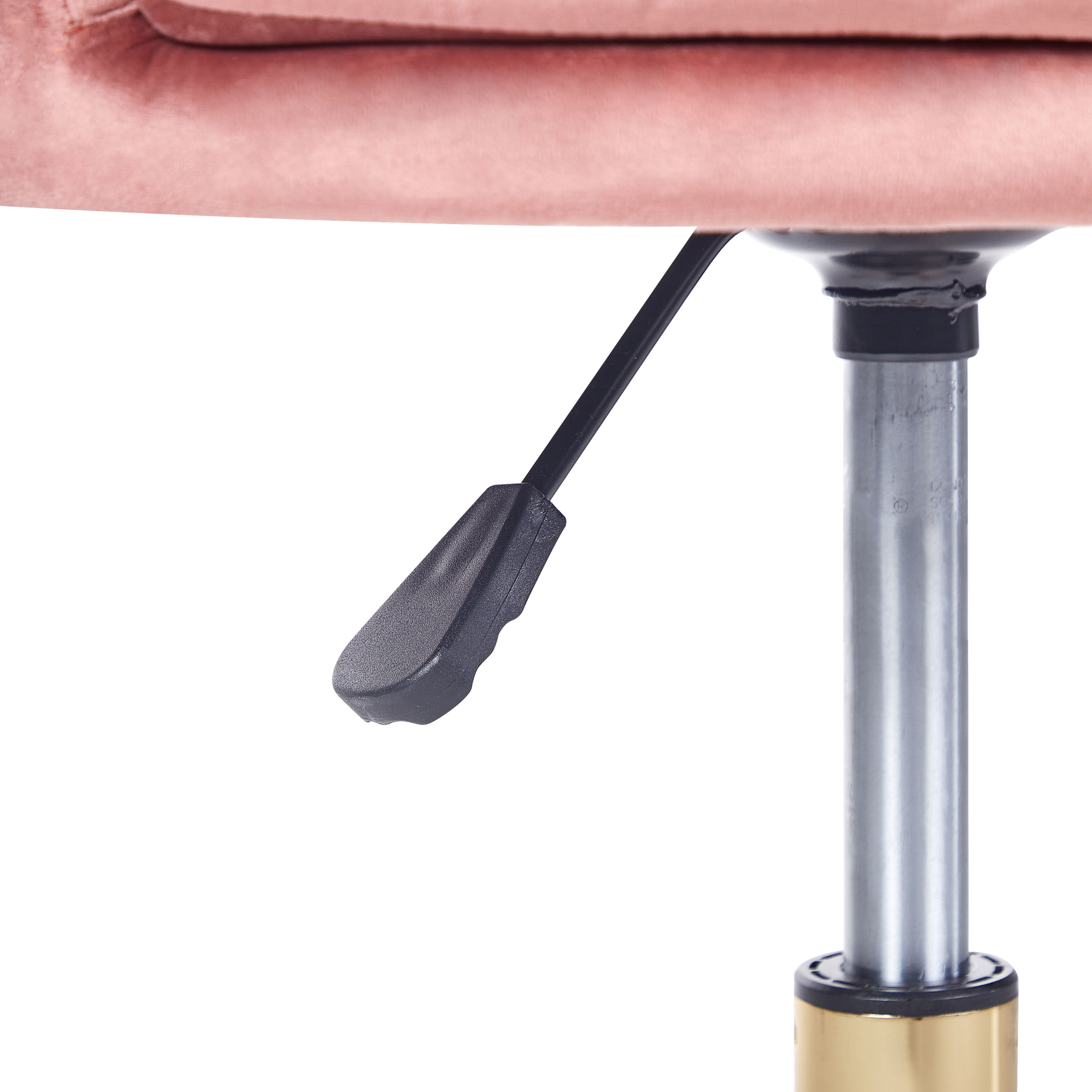 Scaun de birou cu spătar tip scoică și bază rotativă aurie. Acest scaun de birou adaugă un plus de eleganță și stil spațiului de lucru sau camerei de studiu. Echipat cu mecanism de rotire la 360° și unul pneumatic pe gaz pentru ajustarea înălțimii, oferă confort și versatilitate. Baza metalică tip stea cu finisaj auriu, asigură stabilitate, iar capacele de protecție pentru podea previn deteriorarea suprafețelor. Tapițat cu o catifea din poliester moale, se integrează perfect în interioare moderne, minimaliste sau scandinave. Detalii: Tip de Produs: Scaun de birou. Stil: Glamour. Culoare: Roz. Material: Țesătură. Material primar: Catifea. Material secundar: Fier. Detalii material picioare: Metal. Material scaun: Țesătură. Compoziția materialului: 100% Poliester. Rotire la 360°: Da. Piese reglabile: Înălțime scaun. Cotiere: Nu. Finisaj: Cromat. Protecții pentru picioare incluse: Da. Înclinare: Nu. Dimensiuni: Adâncime: 60 cm. Înălțimea scaunului: 45-55 cm. Lățime: 60 cm. Înălțime: 79-89 cm. Suprafața de ședere: 48x43 cm. Greutate: 8 kg. Capacitatea de greutate: 100 kg. Oferta incude: 1 x Scaun de birou. Caracteristici cheie: Rotire de 360°, Reglarea pneumatică a înălțimii scaunului, Funcție de frână de siguranță care blochează roțile pentru siguranță, se deblochează pentru mobilitate. Mobilier decorativ și funcțional, Adaugă o notă de stil în orice cameră, Țesătură de catifea netedă și mătăsoasă, Înălțime reglabilă. Asamblare: Picioare neasamblate.20-40 min. Informații suplimentare: Pentru o stabilitate și siguranță maximă în utilizare, se recomandă să verificați la aproximativ 2 săptămâni după instalare dacă produsul a fost asamblat corect. De asemenea, se recomandă să verificați dacă șuruburile sunt strânse corect, o dată la 3 luni. Rețineți că țesătura de catifea poate avea un aspect puțin diferit atunci când este expusă la lumină; tinde să fie mai strălucitoare și mai luminoasă în lumina soarelui, în timp ce în lumină artificială are un ton diferit, mai închis. Datorită tipului de țesătură, tonul catifelei poate varia, de asemenea, atunci când este atinsă din direcții diferite. Pentru a uniformiza culoarea și a scăpa de lovituri și cute, materialul trebuie mângâiat cu palma deschisă într-o singură direcție, frecat cu o cârpă umedă sau călcat cu abur. Sfaturi de întreținere: Catifea: 1.Vă rugăm să curățați cu un șampon uscat și un burete umed sau cu un detergent ușor. 2.Aspirati folosind un accesoriu potrivit. Fier: 1.Curățați cu un detergent delicat și o cârpă moale, apoi ștergeți bine. 2.Pentru a evita zgârieturile, nu folosiți produse de curățare abrazive. 3.Pentru elementele din cupru sau crom, folosiți un agent de lustruire.