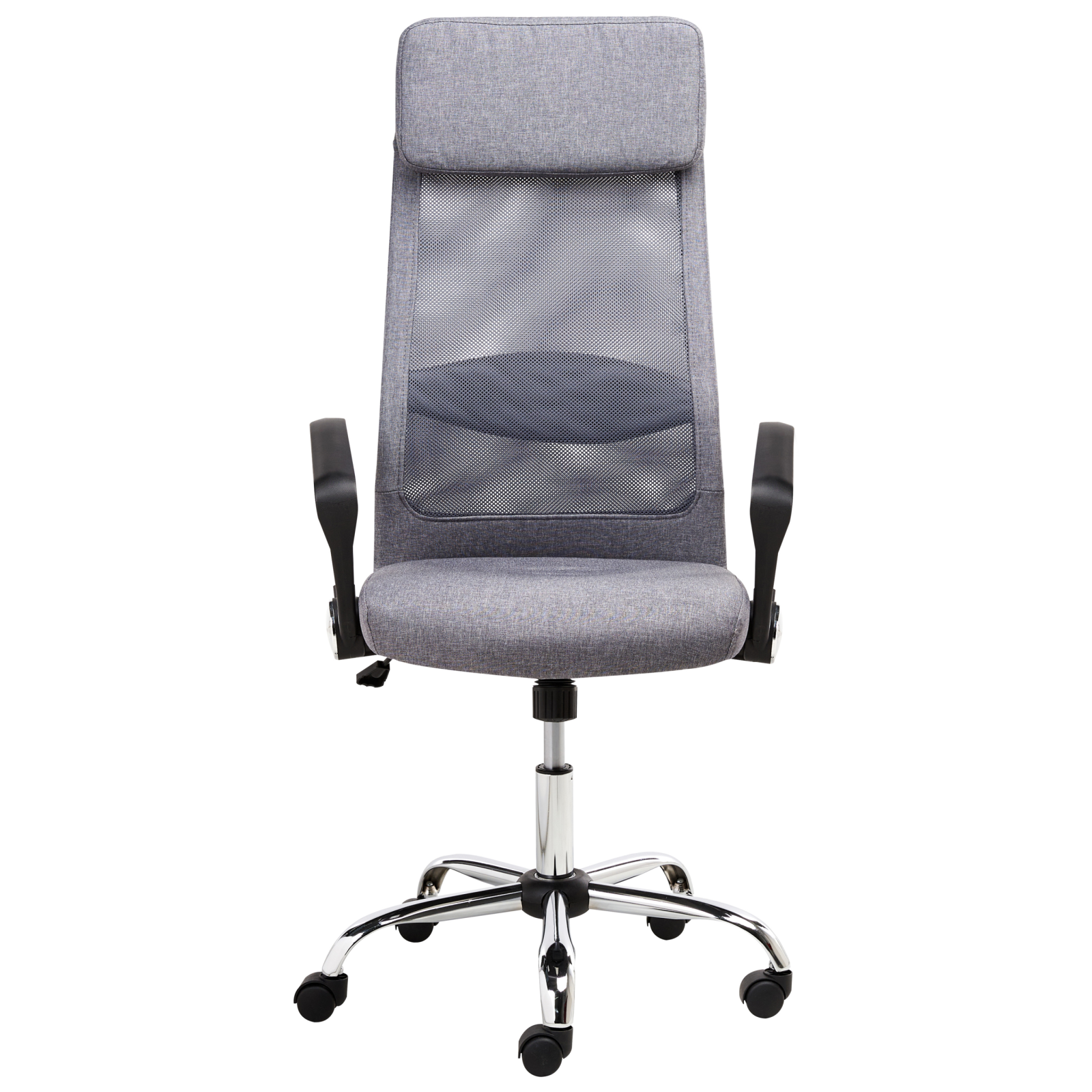 Scaun de birou ergonomic cu spătar din plasă. Un scaun de birou elegant și practic, indispensabil în orice spațiu de lucru. Dispune de mecanism de înclinare, reglarea înălțimii șezutului și rotire completă pentru o poziție activă în timpul utilizării. Tapițeria cu plasă gri din poliester este respirabilă și rezistentă la uzură. Spătarul înalt include o tetieră integrată, garantând susținerea completă a corpului. Detalii: Tip de Produs: Scaun de birou. Stil: Modern. Culoare: Gri. Nuanță: Gri închis. Material: Țesătură. Material primar: Țesătură. Material secundar: Material sintetic. Detalii material picioare: Material sintetic. Material scaun: Țesătură. Compoziția materialului: 100% Poliester. Rotire la 360°: Da. Piese reglabile: Înălțime scaun. Cotiere: Da. Protecții pentru picioare incluse: Nu. Înclinare: Da. Dimensiuni: Înălțimea cotierei: 65-75 cm. Adâncime: 63 cm. Înălțimea scaunului: 40-48 cm. Lățime: 63 cm. Înălțime: 118-126 cm. Suprafața de ședere: 48x50 cm. Greutate: 12 kg. Capacitatea de greutate: 120 kg. Oferta incude: 1 x Scaun de birou. Caracteristici cheie: Roți pivotante cu rulare lină, Rotire de 360°, Reglarea pneumatică a înălțimii scaunului, Mecanism de înclinare pentru relaxarea spatelui încordat, Funcție de frână de siguranță care blochează roțile pentru siguranță, se deblochează pentru mobilitate. Formă ergonomică, Materiale de cea mai bună calitate. Asamblare: Necesită asamblare completă.20-40 min. Informații suplimentare: Pentru o stabilitate și siguranță maximă în utilizare, se recomandă să verificați la aproximativ 2 săptămâni după instalare dacă produsul a fost asamblat corect. De asemenea, se recomandă să verificați dacă șuruburile sunt strânse corect, o dată la 3 luni. Sfaturi de întreținere: Țesătură: 1.Vă rugăm să curățați cu un șampon uscat și un burete umed sau cu un detergent ușor. 2.Aspirati folosind un accesoriu potrivit. Material sintetic: 1.Curățați cu un detergent delicat și o cârpă moale, apoi ștergeți bine.