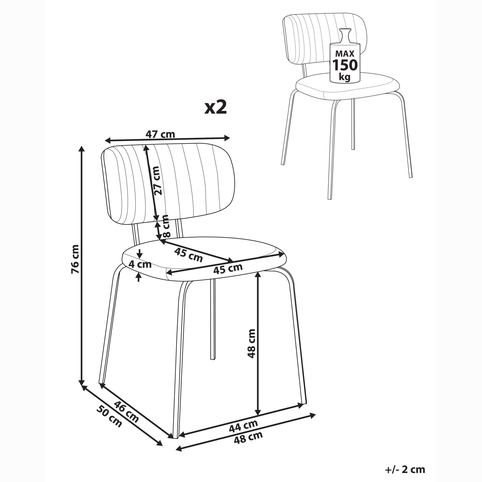 Scaune tapițate fără cotiere. Transformă-ți zona de dining cu acest set de două scaune elegante, ce combină confortul cu un design modern și monocrom. Tapițate într-un material moale și texturat, oferă un șezut căptușit și un spătar vertical cu detalii decorative, care asigură atât suport, cât și rafinament. Picioarele metalice rezistente garantează stabilitate, iar capacele din plastic protejează podeaua de zgârieturi. O alegere versatilă, ușor de asortat cu orice masă, care adaugă un strop de farmec contemporan casei tale. Detalii: Tip de Produs: Scaun dining. Stil: Retro. Culoare: Bej. Culoarea cadrului: Bej. Nuanță: Bej deschis. Material: Țesătură. Material primar: Chenille. Material secundar: Fier. Materialul cadrului: Metal. Detalii material picioare: Metal. Material scaun: Țesătură. Compoziția materialului: 100% Poliester. Cotiere: Nu. Finisaj: Acoperire pulverizată. Stivuire: Nu. Dimensiuni: Adâncime: 50 cm. Înălțimea scaunului: 48 cm. Lățime: 48 cm. Înălțime: 76 cm. Suprafața de ședere: 45x45 cm. Greutate: 5 kg. Capacitatea de greutate: 150 kg. Oferta incude: 2 x Scaun. Caracteristici cheie: Confort maxim la șezut, Design elegant, Materiale de cea mai bună calitate, Excepțional de ușor de întreținut, Capace pentru picioare pentru protecția suprafeței. Asamblare: Necesită asamblare completă.5-15 min. Informații suplimentare: Pentru o stabilitate și siguranță maximă în utilizare, se recomandă să verificați la aproximativ 2 săptămâni după instalare dacă produsul a fost asamblat corect. De asemenea, se recomandă să verificați dacă șuruburile sunt strânse corect, o dată la 3 luni. Sfaturi de întreținere: Chenille: 1.Vă rugăm să curățați cu un șampon uscat și un burete umed sau cu un detergent ușor. 2.Aspirati folosind un accesoriu potrivit. Fier: 1.Curățați cu un detergent delicat și o cârpă moale, apoi ștergeți bine. 2.Pentru a evita zgârieturile, nu folosiți produse de curățare abrazive. 3.Pentru elementele din cupru sau crom, folosiți un agent de lustruire.
