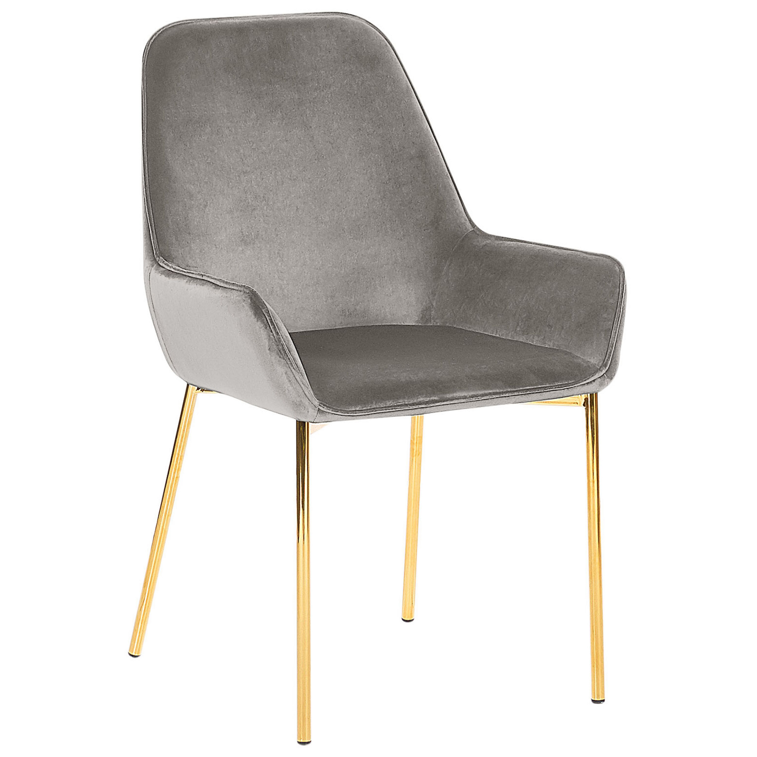 Scaune dining tapițate. Cu picioare subțiri, aurii și tapițerie din catifea, aceste scaune adaugă un farmec retro atemporal oricărui decor. Proiectate pentru confort, au șezuturi largi, bine căptușite, și cotiere poziționate ergonomic. Detaliile decorative de pe spătar le oferă un plus de eleganță, făcându-le ideale ca piese centrale în zone de dining în stil glamour, modern sau industrial. Detalii: Tip de Produs: Scaun dining. Stil: Modern. Culoare: Gri. Material: Țesătură. Material primar: Catifea. Material secundar: Metal. Detalii material picioare: Metal. Material scaun: Țesătură. Compoziția materialului: 100% Poliester. Cotiere: Da. Finisaj: Acoperire pulverizată. Stivuire: Nu. Dimensiuni: Înălțimea cotierei: 59 cm. Adâncime: 59 cm. Grosimea scaunului: 5 cm. Înălțimea scaunului: 48 cm. Lățime: 56 cm. Înălțime: 89 cm. Suprafața de ședere: 46x41 cm. Greutate: 6 kg. Capacitatea de greutate: 120 kg. Oferta incude: 2 x Scaun. Caracteristici cheie: Cotiere confortabile, Se adaptează la orice stil de interior, Stil retro, Materiale de înaltă calitate, Țesătură de catifea netedă și mătăsoasă, Capace pentru picioare pentru protecția suprafeței. Asamblare: Picioare neasamblate.20-40 min. Informații suplimentare: Pentru o stabilitate și siguranță maximă în utilizare, se recomandă să verificați la aproximativ 2 săptămâni după instalare dacă produsul a fost asamblat corect. De asemenea, se recomandă să verificați dacă șuruburile sunt strânse corect, o dată la 3 luni. Rețineți că țesătura de catifea poate avea un aspect puțin diferit atunci când este expusă la lumină; tinde să fie mai strălucitoare și mai luminoasă în lumina soarelui, în timp ce în lumină artificială are un ton diferit, mai închis. Datorită tipului de țesătură, tonul catifelei poate varia, de asemenea, atunci când este atinsă din direcții diferite. Pentru a uniformiza culoarea și a scăpa de lovituri și cute, materialul trebuie mângâiat cu palma deschisă într-o singură direcție, frecat cu o cârpă umedă sau călcat cu abur. Sfaturi de întreținere: Catifea: 1.Vă rugăm să curățați cu un șampon uscat și un burete umed sau cu un detergent ușor. 2.Aspirati folosind un accesoriu potrivit. Metal: 1.Curățați cu un detergent delicat și o cârpă moale, apoi ștergeți bine. 2.Pentru a evita zgârieturile, nu folosiți produse de curățare abrazive. 3.Pentru elementele din cupru sau crom, folosiți un agent de lustruire.