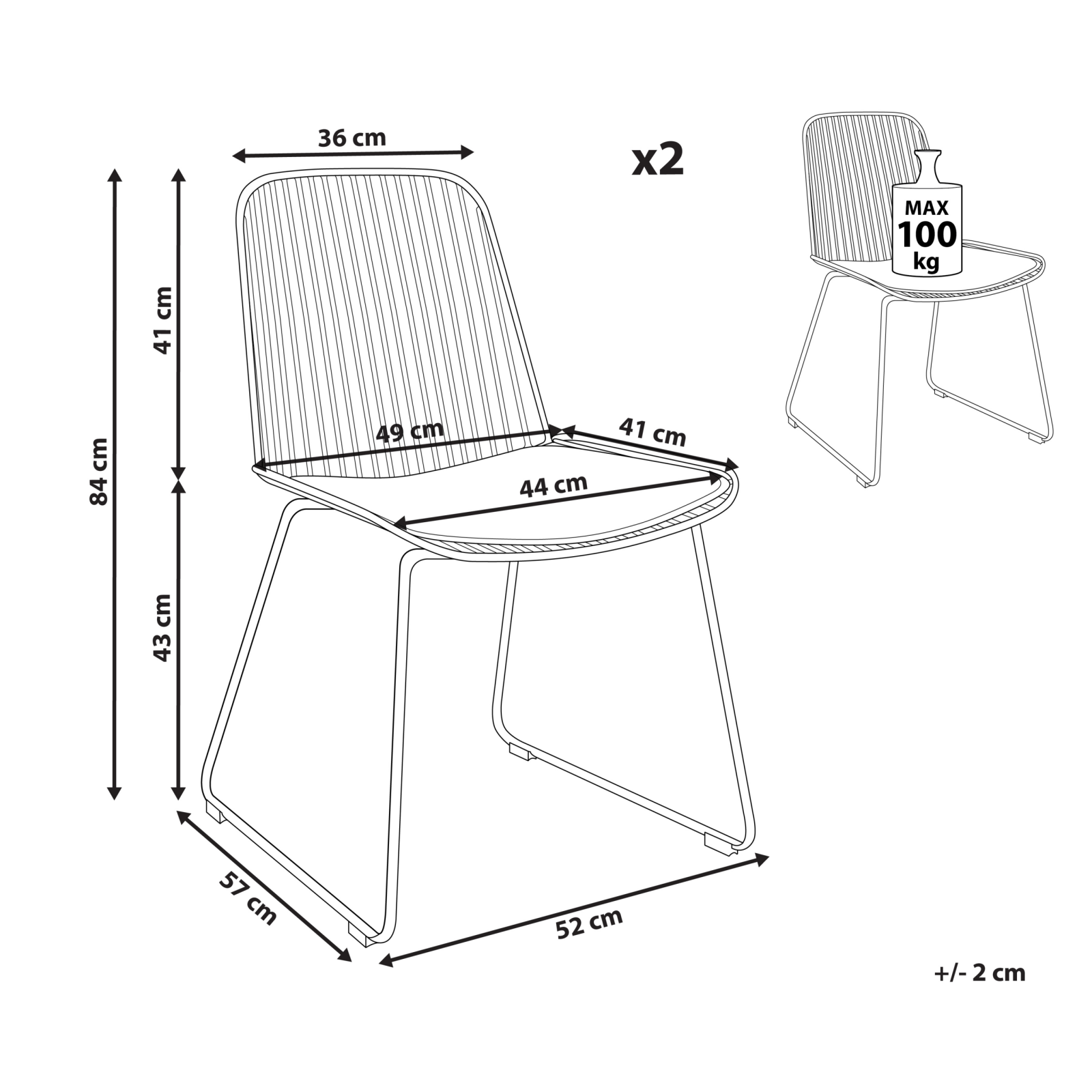 Scaune dining în stil glam. Reîmprospătează-ți interiorul cu aceste scaune inspirate din stilul industrial. Realizate din oțel rezistent, se remarcă prin designul emblematic din plasă metalică ce definește atât șezutul, cât și spătarul. Finisajul auriu lucios și picioarele subțiri conferă un aer sofisticat și modern. De asemenea, sunt prevăzute cu perne din piele ecologică neagră, care creează un contrast elegant. O alegere ideală pentru un decor cu personalitate. Detalii: Tip de Produs: Scaun dining. Stil: Glamour. Culoare: Auriu. Culoarea cadrului: Auriu. Material: Metal. Material primar: Oțel. Material secundar: Piele ecologică. Detalii material picioare: Metal. Material scaun: Piele ecologică. Compoziția materialului: 100% Piele sintetică. Cotiere: Nu. Finisaj: Lucios. Stivuire: Nu. Dimensiuni: Adâncime: 57 cm. Înălțimea scaunului: 43 cm. Lățime: 52 cm. Înălțime: 83 cm. Suprafața de ședere: 41x49 cm. Greutate: 8 kg. Capacitatea de greutate: 100 kg. Oferta incude: 2 x Scaun. Caracteristici cheie: Scaun spațios și confortabil, Design modern, Numai pentru utilizare în interior, Materiale ușor de întreținut și durabile, Capace pentru picioare pentru protecția suprafeței. Asamblare: Necesită asamblare parțială.5-15 min. Informații suplimentare: Pentru o stabilitate și siguranță maximă în utilizare, se recomandă să verificați la aproximativ 2 săptămâni după instalare dacă produsul a fost asamblat corect. De asemenea, se recomandă să verificați dacă șuruburile sunt strânse corect, o dată la 3 luni. Sfaturi de întreținere: Oțel: 1.Curățați cu un detergent delicat și o cârpă moale, apoi ștergeți bine. 2.Pentru a evita zgârieturile, nu folosiți produse de curățare abrazive. 3.Pentru elementele din cupru sau crom, folosiți un agent de lustruire. Piele ecologică: 1.O dată pe săptămână, ștergeți cu o cârpă umedă și uscați după curățare. Nu folosiți substanțe uleioase. 2.Vă rugăm să curățați cu apă distilată și să folosiți detergenți pe bază de săpun pentru petele dificile. 3.Utilizați doar soluții de curățare delicate și balsamuri dedicate pielii ecologice. 4.Aspirati folosind un accesoriu potrivit.