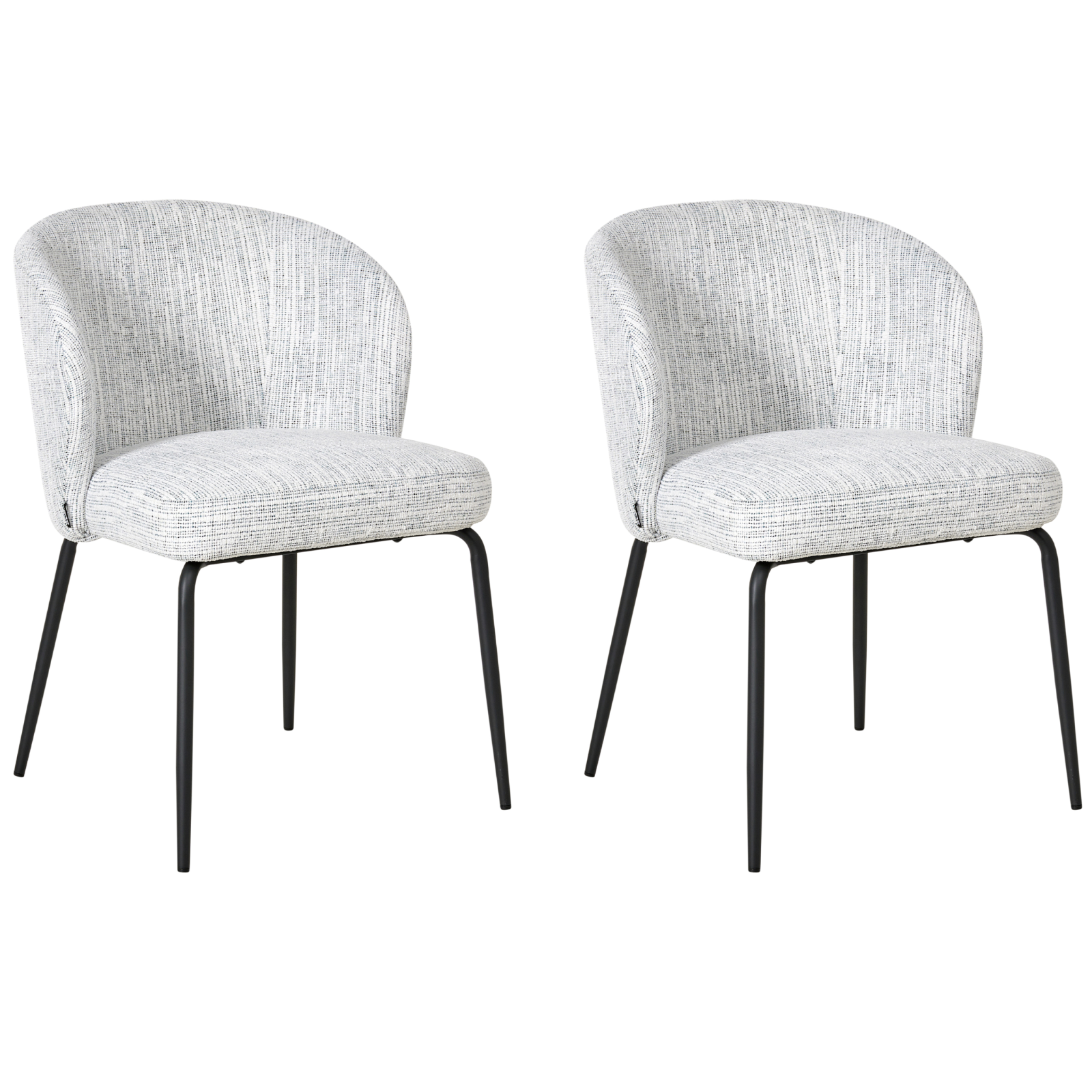 Set scaune de dining moderne. Adaugă un strop de rafinament și confort oricărei încăperi cu acest set de scaune de dining. Designul modern, cu tapițerie moale și culori neutre, se integrează perfect în orice decor, iar picioarele negre, solide, asigură durabilitate pe termen lung. Indiferent dacă le așezi în living, dormitor sau birou, aceste piese de mobilier vor transforma spațiul într-un loc primitor și elegant, creând un ambient ideal pentru momentele de relaxare. Detalii: Tip de Produs: Scaun dining. Stil: Modern. Culoare: Alb. Culoarea cadrului: Negru. Material: Țesătură. Material primar: Țesătură. Material secundar: Spumă. Detalii material picioare: Metal. Material scaun: Țesătură. Compoziția materialului: 100% Poliester. Cotiere: Nu. Finisaj: Acoperire pulverizată. Stivuire: Nu. Dimensiuni: Adâncime: 56 cm. Înălțimea scaunului: 49 cm. Lățime: 55 cm. Înălțime: 81 cm. Suprafața de ședere: 45x51 cm. Greutate: 7 kg. Capacitatea de greutate: 150 kg. Oferta incude: 2 x Scaun. Caracteristici cheie: Se potrivește perfect în bucătărie sau în sufragerie, Confort maxim la șezut, Un loc excelent pentru relaxare, Se adaptează la orice stil de interior, Stil minimalist scandinav. Asamblare: Necesită asamblare parțială.20-40 min. Informații suplimentare: Pentru o stabilitate și siguranță maximă în utilizare, se recomandă să verificați la aproximativ 2 săptămâni după instalare dacă produsul a fost asamblat corect. De asemenea, se recomandă să verificați dacă șuruburile sunt strânse corect, o dată la 3 luni. Sfaturi de întreținere: Țesătură: 1.Vă rugăm să curățați cu un șampon uscat și un burete umed sau cu un detergent ușor. 2.Aspirati folosind un accesoriu potrivit. Fier: 1.Curățați cu un detergent delicat și o cârpă moale, apoi ștergeți bine. 2.Pentru a evita zgârieturile, nu folosiți produse de curățare abrazive. 3.Pentru elementele din cupru sau crom, folosiți un agent de lustruire.