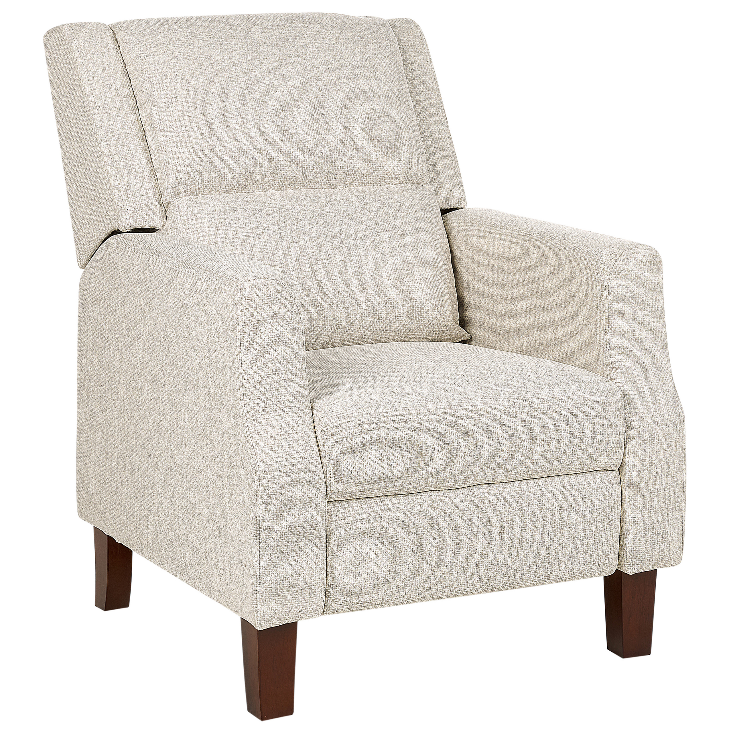 Fotoliu reclinabil pentru camera de zi. Transformă-ți livingul într-un spațiu de relaxare pură cu acest fotoliu reclinabil. Designul clasic, inspirat de forme retro în nuanțe de bej universal, se va integra perfect în orice interior tradițional sau vintage. Tapițeria este realizată dintr-un material durabil și de înaltă calitate, ușor de întreținut. Picioarele elegante din lemn de cauciuc nu vor zgâria podelele datorită padurilor adăugate. Mecanismul reclinabil încorporat îți permite să alegi între două poziții disponibile, astfel încât să te poți relaxa după o zi lungă și să te bucuri de filmul sau serialul tău preferat. Detalii: Tip de Produs: Scaun reclinabil. Stil: Tradițional. Culoare: Bej. Nuanță: Bej deschis. Material: Țesătură. Material primar: Țesătură. Material secundar: Lemn de cauciuc. Căptușeală: Spumă. Detalii material picioare: Lemn. Material scaun: Țesătură. Compoziția materialului: 100% Poliester. Tipul de reglare: Manual. Stilul cotierei: Liniar. Cotiere: Da. Protecții pentru picioare incluse: Da. Model: Culoare solidă. Reclinabil: Da. Structura scaunului: Arcurile elicoidale. Densitatea pernei scaunului: 26 kg/m3. Dimensiuni: Înălțimea cotierei: 64 cm. Adâncime: 92/141 cm. Grosimea scaunului: 16 cm. Înălțimea scaunului: 49 cm. Lățime: 75 cm. Înălțime: 97 cm. Suprafața de ședere: 51x53 cm. Greutate: 31 kg. Capacitatea de greutate: 115 kg. Oferta incude: 1 x Fotoliu. Caracteristici cheie: Spătar și suport pentru picioare reglabile, Șezut lat, capitonat gros, Poziție de șezut relaxată, Ideal atât pentru dormitor, cât și pentru camera de zi, Design tradițional cu o notă modernă, Tapițerie din țesătură de înaltă calitate. Asamblare: Necesită asamblare completă.5-15 min. Informații suplimentare: Pentru o stabilitate și siguranță maximă în utilizare, se recomandă să verificați la aproximativ 2 săptămâni după instalare dacă produsul a fost asamblat corect. De asemenea, se recomandă să verificați dacă șuruburile sunt strânse corect, o dată la 3 luni. Sfaturi de întreținere: Țesătură: 1.Aspirati folosind un accesoriu potrivit. 2.Vă rugăm să curățați cu un șampon uscat și un burete umed sau cu un detergent ușor. Lemn de cauciuc: 1.Ștergeți imediat după curățare pentru a preveni acumularea apei pe produs. 2.Curățați cu un detergent delicat și o cârpă moale, urmând direcția fibrelor. 3.Pentru a păstra mobila finisată cu ulei în stare bună, este necesar să o ungeți cu ulei după un timp.
