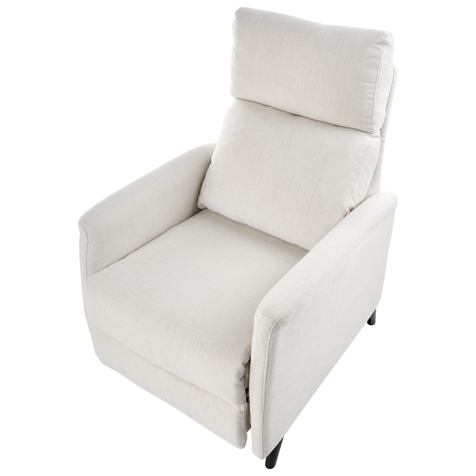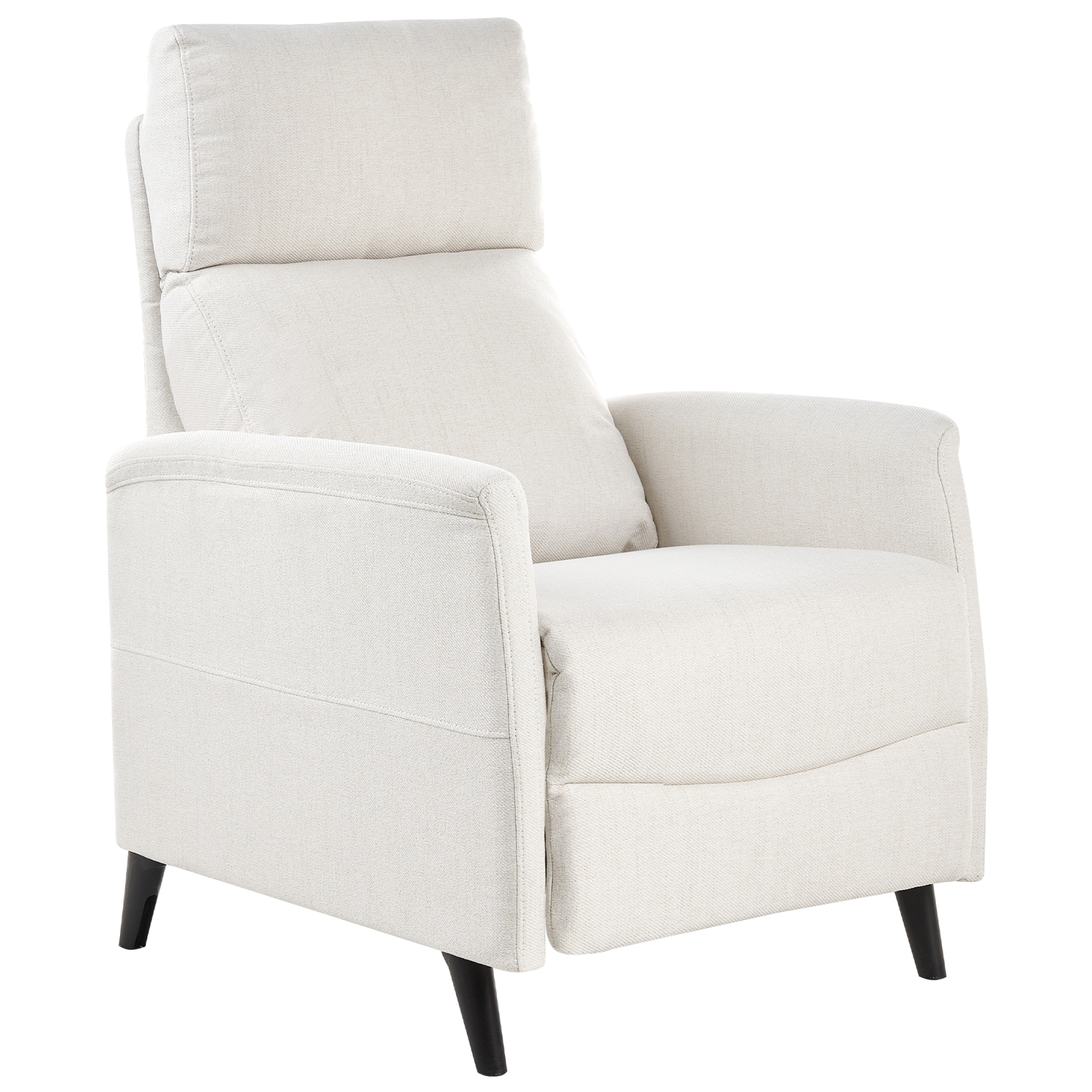 Fotoliu cu recliner manual pentru living. Sporește-ți confortul cu acest fotoliu practic, echipat cu o funcție de reclinare manuală ce permite trei poziții confortabile. Tapițat cu un material durabil și ușor de întreținut, într-o nuanță versatilă, designul său clasic se potrivește perfect în orice decor. Ideal pentru sufragerie, birou sau un colț de relaxare, adaugă eleganță și funcționalitate spațiului tău, oferind un plus de durabilitate. Detalii: Tip de Produs: Scaun reclinabil. Stil: Tradițional. Culoare: Alb. Nuanță: Alb-murdar. Material: Țesătură. Material primar: Țesătură. Material secundar: Oțel. Căptușeală: Spumă. Detalii material picioare: Metal. Material scaun: Țesătură. Compoziția materialului: 100% Poliester. Tipul de reglare: Manual. Stilul cotierei: Liniar. Cotiere: Da. Protecții pentru picioare incluse: Da. Model: Culoare solidă. Reclinabil: Da. Structura scaunului: Arcuri ondulate. Densitatea pernei scaunului: 25 kg/m3. Dimensiuni: Înălțimea cotierei: 62 cm. Adâncime: 80/131/153 cm. Grosimea scaunului: 5 cm. Înălțimea scaunului: 50 cm. Lățime: 69 cm. Înălțime: 103 cm. Suprafața de ședere: 54x47 cm. Greutate: 20 kg. Capacitatea de greutate: 130 kg. Oferta incude: 1 x Fotoliu. Caracteristici cheie: Spătar și suport pentru picioare reglabile, Șezut lat, capitonat gros, Poziție de șezut relaxată, Ideal atât pentru dormitor, cât și pentru camera de zi, Design tradițional cu o notă modernă, Tapițerie din țesătură de înaltă calitate. Asamblare: Necesită asamblare completă.5-15 min. Informații suplimentare: Pentru un confort maxim, vă recomandăm să lăsați un spațiu de aproximativ 15 cm între spătar și perete. Pentru o stabilitate și siguranță maximă în utilizare, se recomandă să verificați la aproximativ 2 săptămâni după instalare dacă produsul a fost asamblat corect. De asemenea, se recomandă să verificați dacă șuruburile sunt strânse corect, o dată la 3 luni. Sfaturi de întreținere: Țesătură: 1.Aspirati folosind un accesoriu potrivit. 2.Vă rugăm să curățați cu un șampon uscat și un burete umed sau cu un detergent ușor. Material sintetic: 1.Curățați cu un detergent delicat și o cârpă moale, apoi ștergeți bine.