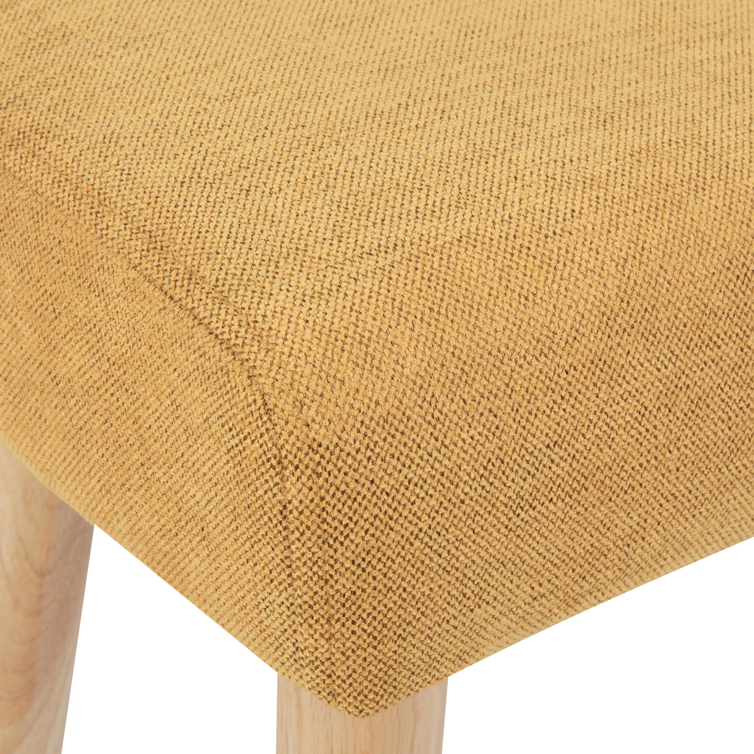 Taburet decorativ cu design modern. Cu un design modern și elegant, acest taburet aduce un plus de stil în orice living sau dormitor. Cadrul din lemn stratificat, cu picioare din stejar în nuanțe calde de maro, oferă rezistență, iar tapițeria din poliester galben, fin și moale la atingere, se integrează perfect în decoruri scandinave sau echilibrează spațiile cu accente vibrante. Detalii: Tip de Produs: Scaun taburet. Stil: Modern. Culoare: Galben. Material: Țesătură. Material primar: Țesătură. Material secundar: Placaj. Căptușeală: Spumă. Compoziția materialului: 100% Poliester. Formă: Rectangulară. Model: Culoare solidă. Densitatea pernei scaunului: 30 kg/m3. Depozitare: Nu. Dimensiuni: Adâncime: 30 cm. Lățime: 50 cm. Înălțime: 34 cm. Suprafața de ședere: 50x30 cm. Greutate: 4 kg. Capacitatea de greutate: 150 kg. Oferta incude: 1 x Scaun. Caracteristici cheie: Suport pentru picioare practic, Se integrează practic cu orice stil de amenajare, Materiale de cea mai bună calitate, Material ușor, dar durabil, Finisajul rezistent la apă permite ca orice vărsare să rămână pe suprafață. Asamblare: Picioare neasamblate.5-15 min. Sfaturi de întreținere: Țesătură: 1.Vă rugăm să curățați cu un șampon uscat și un burete umed sau cu un detergent ușor. 2.Aspirati folosind un accesoriu potrivit. Lemn de stejar: 1.Curățați cu un detergent delicat și o cârpă moale, urmând direcția fibrelor. 2.Ștergeți imediat după curățare pentru a preveni acumularea apei pe produs. 3.Pentru a păstra mobila finisată cu ulei în stare bună, este necesar să o ungeți cu ulei după un timp.