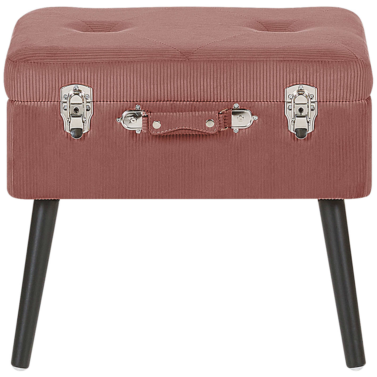 Taburet tapițat în formă de valiză. Acest taburet cu design inspirat din stilul vintage adaugă un plus de eleganță oricărui interior, fie că este decorat în stil modern, clasic sau glam. Tapițat cu catifea roz, este accentuat de detalii rafinate precum nasturi decorativi, cleme argintii lucioase și un mâner elegant. Picioarele subțiri completează armonios estetica piesei, oferind un aer minimalist și sofisticat. Dispune de un sistem de deschidere practic, asemănător unei valize, ce permite accesul facil la un compartiment spațios pentru depozitarea diverselor obiecte. Detalii: Tip de Produs: Scaun taburet. Stil: Retro. Culoare: Roz. Material: Țesătură. Material primar: Velur. Material secundar: Lemn de pin. Căptușeală: Spumă. Compoziția materialului: 100% Poliester. Formă: Rectangulară. Model: Culoare solidă. Depozitare: Da. Dimensiuni: Adâncime: 36 cm. Lățime: 52 cm. Înălțime: 46 cm. Suprafața de ședere: 52x36 cm. Greutate: 6 kg. Capacitatea de greutate: 150 kg. Oferta incude: 1 x Scaun. Caracteristici cheie: Ideal atât pentru dormitor, cât și pentru camera de zi, Completare elegantă pentru orice interior, Tapițerie din țesătură de înaltă calitate, Numeroase aplicații posibile, Spațiu funcțional pentru fiecare obiect mic. Asamblare: Picioare neasamblate.5-15 min. Informații suplimentare: Vă rugăm să rețineți că țesătura din catifea poate avea un aspect mai mult sau mai puțin strălucitor, în funcție de expunerea la lumină (naturală în timpul zilei sau artificială seara). Sfaturi de întreținere: Velur: 1.Vă rugăm să curățați cu un șampon uscat și un burete umed sau cu un detergent ușor. 2.Aspirati folosind un accesoriu potrivit. Lemn de pin: 1.Curățați cu un detergent delicat și o cârpă moale, urmând direcția fibrelor. 2.Ștergeți imediat după curățare pentru a preveni acumularea apei pe produs. 3.Pentru a păstra mobila finisată cu ulei în stare bună, este necesar să o ungeți cu ulei după un timp.