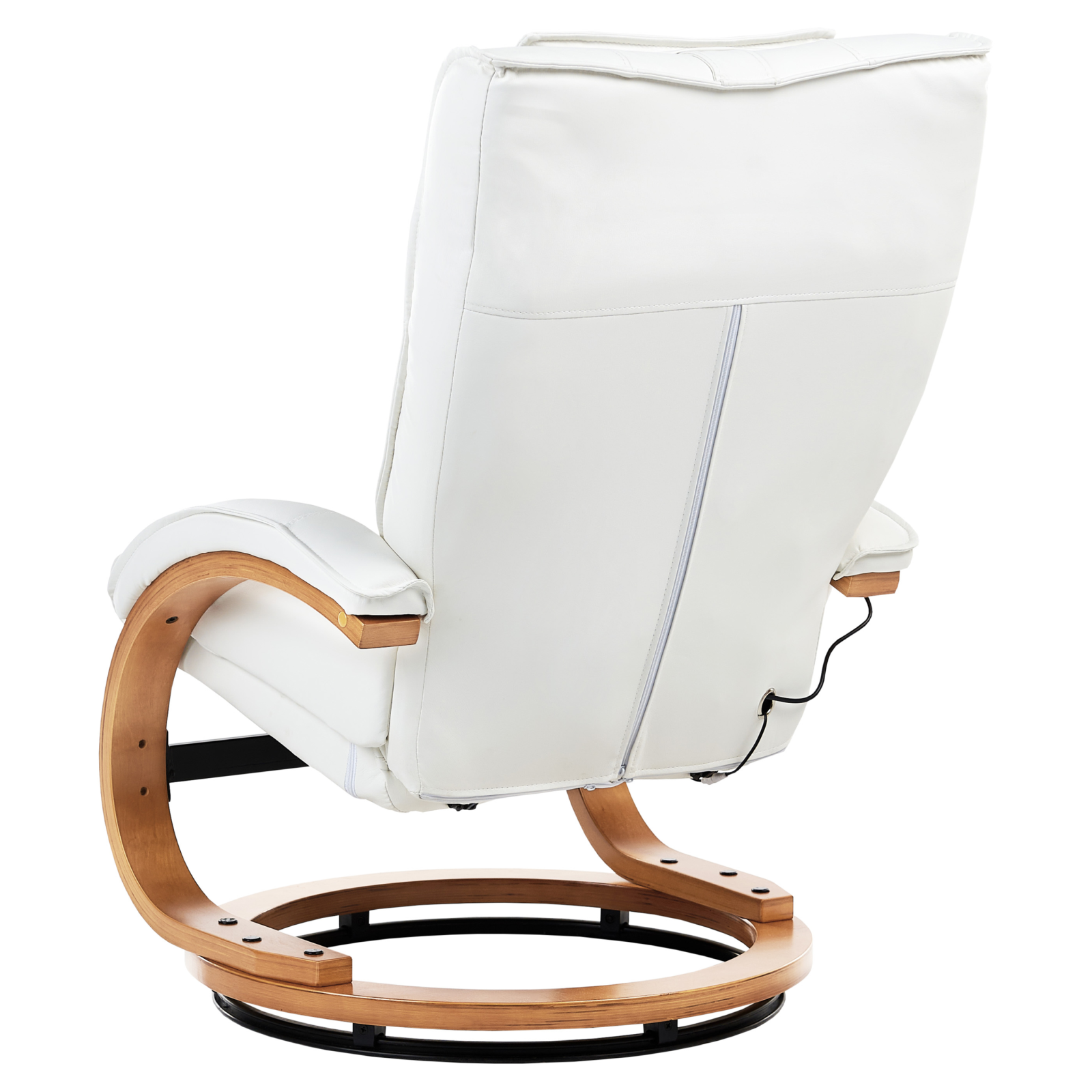 Fotoliu pentru masaj cu încălzire și suport pentru picioare. Răsfață-te cu un confort de neimaginat în acest fotoliu reclinabil sofisticat asortat cu taburet. Lasă-te învăluit de căldura plăcută a funcției de încălzire, care acoperă două zone, totul fiind controlabil ușor cu telecomanda inclusă. Cu aceasta, poți alege dintre 3 puncte de masaj și 5 nivele de intensitate, pentru a găsi combinația perfectă de relaxare. Tapițat cu piele sintetică plăcută la atingere, fotoliul oferă un suport optim datorită pernelor moi, spătarului înalt și brațelor curbate. Detalii: Tip de Produs: Scaun reclinabil. Stil: Retro. Culoare: Alb. Material: Piele ecologică. Material primar: Piele ecologică. Material secundar: Țesătură. Detalii material picioare: Lemn. Material scaun: Piele ecologică. Compoziția materialului: 100% Piele sintetică. Funcții suplimentare: Încălzire. Cotiere: Da. Suport pentru picioare inclus: Da. Reclinabil: Da. Structura scaunului: Arcuri ondulate. Tensiune nominală: 220-240 V (50 Hz). Înclinare: Nu. Dimensiuni: Înălțimea cotierei: 54 cm. Adâncime: 82 cm. Otoman: 49x49x39 cm. Înălțimea scaunului: 44 cm. Lățime: 66 cm. Înălțime: 98 cm. Suprafața de ședere: 49x51 cm. Dimensiuni generale: 61x82x98. Greutate: 22 kg. Capacitatea de greutate: 150 kg. Oferta incude: 1 x Scaun, 1 x Scaun de masaj. Caracteristici cheie: Funcție de încălzire pentru un confort maxim, Funcție de masaj în 3 puncte, 5 programe de masaj, 2 intensități de masaj, Vine într-un set cu un taburet confortabil, Cotiere confortabile, Confort maxim, Poziție de șezut relaxată, Design modern, Materiale de înaltă calitate, Spătar reglabil. Asamblare: Necesită asamblare completă.45-60 min. Informații suplimentare: Pentru o stabilitate și siguranță maximă în utilizare, se recomandă să verificați la aproximativ 2 săptămâni după instalare dacă produsul a fost asamblat corect. De asemenea, se recomandă să verificați dacă șuruburile sunt strânse corect, o dată la 3 luni. Trebuie remarcat faptul că lemnul este un material natural și, prin urmare, fiecare obiect din lemn diferă de celelalte. Diferențele de culoare și de textură a suprafeței (noduri de lemn, dungi etc.) sunt caracteristici intrinseci ale materialului și, prin urmare, nu sunt considerate defecte ale produsului. Sfaturi de întreținere: Piele ecologică: 1.O dată pe săptămână, ștergeți cu o cârpă umedă și uscați după curățare. Nu folosiți substanțe uleioase. 2.Vă rugăm să curățați cu apă distilată și să folosiți detergenți pe bază de săpun pentru petele dificile. 3.Utilizați doar soluții de curățare delicate și balsamuri dedicate pielii ecologice. 4.Aspirati folosind un accesoriu potrivit. Lemn: 1.Curățați cu un detergent delicat și o cârpă moale, urmând direcția fibrelor. 2.Ștergeți imediat după curățare pentru a preveni acumularea apei pe produs. 3.Pentru a păstra mobila finisată cu ulei în stare bună, este necesar să o ungeți cu ulei după un timp.