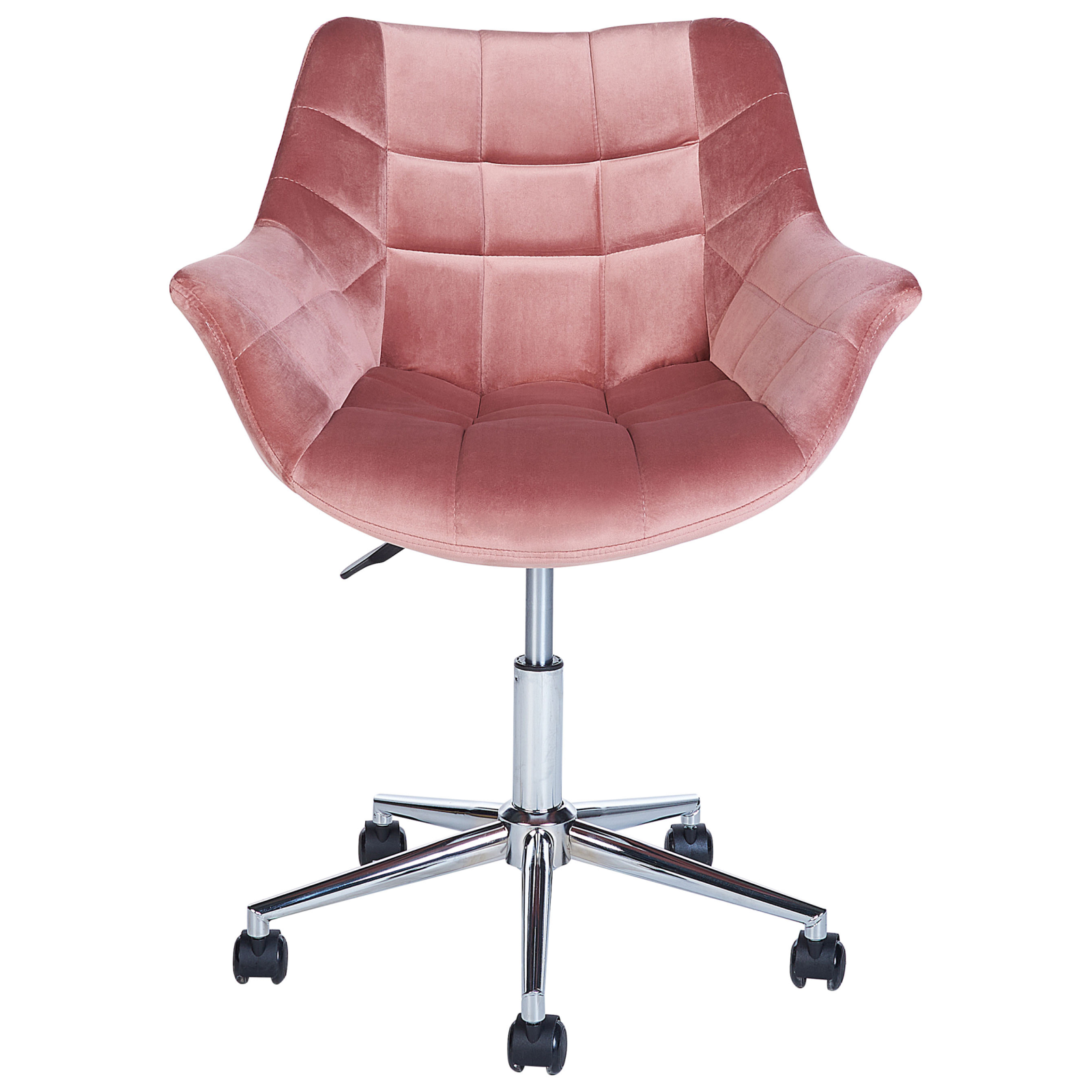 Scaun de birou rotativ cu șezut lat. Completează-ți biroul de acasă cu un scaun care îmbină funcționalitatea cu eleganța. Șezutul lat și confortabil este tapițat cu catifea plăcută la atingere, ușor de curățat, iar finisajul cu detalii fine adaugă un plus de rafinament produsului. Baza stabilă și durabilă din metal, prevăzută cu mecanism de rotire și reglare a înălțimii, garantează confort și mobilitate în utilizare. Detalii: Tip de Produs: Scaun de birou. Stil: Glamour. Culoare: Roz. Material: Țesătură. Material primar: Catifea. Material secundar: Fier. Detalii material picioare: Metal. Material scaun: Țesătură. Compoziția materialului: 100% Poliester. Rotire la 360°: Da. Piese reglabile: Înălțime scaun. Cotiere: Da. Finisaj: Cromat. Protecții pentru picioare incluse: Nu. Înclinare: Nu. Dimensiuni: Înălțimea cotierei: 59-67 cm. Adâncime: 54 cm. Înălțimea scaunului: 45-56 cm. Lățime: 54 cm. Înălțime: 81-92 cm. Suprafața de ședere: 46x45 cm. Greutate: 9 kg. Capacitatea de greutate: 130 kg. Oferta incude: 1 x Scaun de birou. Caracteristici cheie: Rotire de 360°, Roți pivotante cu rulare lină, Reglarea pneumatică a înălțimii scaunului, Funcție de frână de siguranță care blochează roțile pentru siguranță, se deblochează pentru mobilitate. Confort maxim, Mobilier decorativ și funcțional, Țesătură de catifea netedă și mătăsoasă. Asamblare: Necesită asamblare completă.5-15 min. Informații suplimentare: Pentru o stabilitate și siguranță maximă în utilizare, se recomandă să verificați la aproximativ 2 săptămâni după instalare dacă produsul a fost asamblat corect. De asemenea, se recomandă să verificați dacă șuruburile sunt strânse corect, o dată la 3 luni. Rețineți că țesătura de catifea poate avea un aspect puțin diferit atunci când este expusă la lumină; tinde să fie mai strălucitoare și mai luminoasă în lumina soarelui, în timp ce în lumină artificială are un ton diferit, mai închis. Datorită tipului de țesătură, tonul catifelei poate varia, de asemenea, atunci când este atinsă din direcții diferite. Pentru a uniformiza culoarea și a scăpa de lovituri și cute, materialul trebuie mângâiat cu palma deschisă într-o singură direcție, frecat cu o cârpă umedă sau călcat cu abur. Sfaturi de întreținere: Catifea: 1.Vă rugăm să curățați cu un șampon uscat și un burete umed sau cu un detergent ușor. 2.Aspirati folosind un accesoriu potrivit. Fier: 1.Curățați cu un detergent delicat și o cârpă moale, apoi ștergeți bine. 2.Pentru a evita zgârieturile, nu folosiți produse de curățare abrazive. 3.Pentru elementele din cupru sau crom, folosiți un agent de lustruire.
