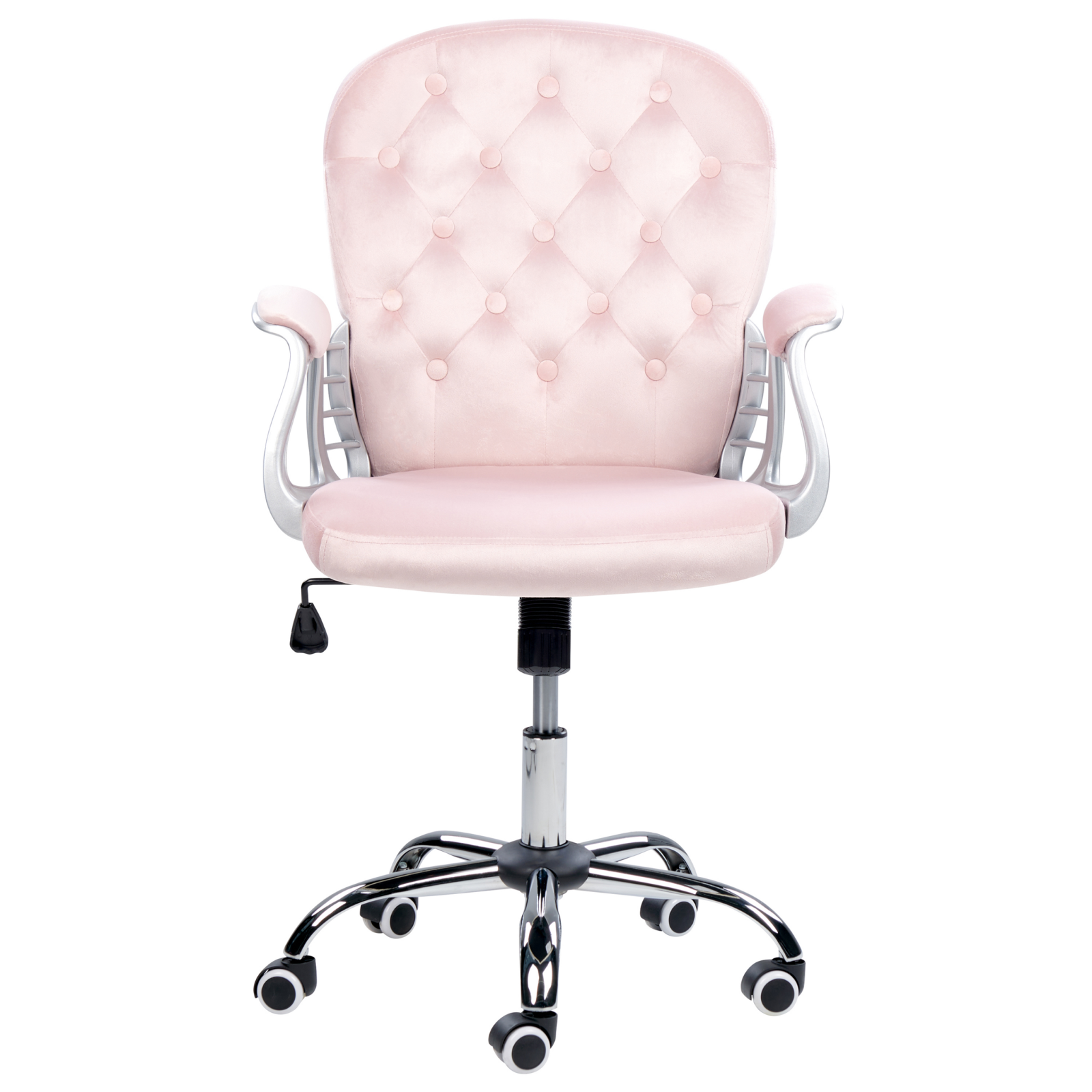 Scaun de birou reglabil cu spătar capitonat. Acest scaun elegant îmbină eleganța vintage cu un design modern. Spătarul capitonat, prevăzut cu butoni decorativi și cusături în formă de diamant, oferă un aspect rafinat, iar brațele curbate și căptușite asigură confort sporit. Mecanismul de rotire și cel pneumatic permit ajustarea completă pentru o poziție perfect adaptată corpului. Versatil și practic, se potrivește atât în biroul de acasă, cât și în camera copiilor. Detalii: Tip de Produs: Scaun de birou. Stil: Glamour. Culoare: Roz. Nuanță: Roz pastel. Material: Țesătură. Material primar: Catifea. Material secundar: Fier. Detalii material picioare: Metal. Material scaun: Țesătură. Compoziția materialului: 100% Poliester. Rotire la 360°: Da. Piese reglabile: Înălțime scaun. Cotiere: Da. Finisaj: Cromat. Protecții pentru picioare incluse: Nu. Înclinare: Da. Dimensiuni: Înălțimea cotierei: 68-78 cm. Adâncime: 58 cm. Înălțimea scaunului: 43-53 cm. Lățime: 58 cm. Înălțime: 93-103 cm. Suprafața de ședere: 47x48 cm. Greutate: 12 kg. Capacitatea de greutate: 130 kg. Oferta incude: 1 x Scaun de birou. Caracteristici cheie: Rotire de 360°, Reglarea pneumatică a înălțimii scaunului, Roți pivotante cu rulare lină, Mecanism de înclinare pentru relaxarea spatelui încordat, Funcție de frână de siguranță care blochează roțile pentru siguranță, se deblochează pentru mobilitate. Confort maxim la șezut, Design mereu actualizat. Asamblare: Necesită asamblare completă.20-40 min. Informații suplimentare: Pentru o stabilitate și siguranță maximă în utilizare, se recomandă să verificați la aproximativ 2 săptămâni după instalare dacă produsul a fost asamblat corect. De asemenea, se recomandă să verificați dacă șuruburile sunt strânse corect, o dată la 3 luni. Rețineți că țesătura de catifea poate avea un aspect puțin diferit atunci când este expusă la lumină; tinde să fie mai strălucitoare și mai luminoasă în lumina soarelui, în timp ce în lumină artificială are un ton diferit, mai închis. Datorită tipului de țesătură, tonul catifelei poate varia, de asemenea, atunci când este atinsă din direcții diferite. Pentru a uniformiza culoarea și a scăpa de lovituri și cute, materialul trebuie mângâiat cu palma deschisă într-o singură direcție, frecat cu o cârpă umedă sau călcat cu abur. Sfaturi de întreținere: Catifea: 1.O dată pe săptămână, ștergeți cu o cârpă umedă și uscați după curățare. Nu folosiți substanțe uleioase. 2.Vă rugăm să curățați cu apă distilată și să folosiți detergenți pe bază de săpun pentru petele dificile. 3.Utilizați doar soluții de curățare delicate și balsamuri dedicate pielii ecologice. 4.Aspirati folosind un accesoriu potrivit. Fier: 1.Curățați cu un detergent delicat și o cârpă moale, apoi ștergeți bine. 2.Pentru a evita zgârieturile, nu folosiți produse de curățare abrazive. 3.Pentru elementele din cupru sau crom, folosiți un agent de lustruire.