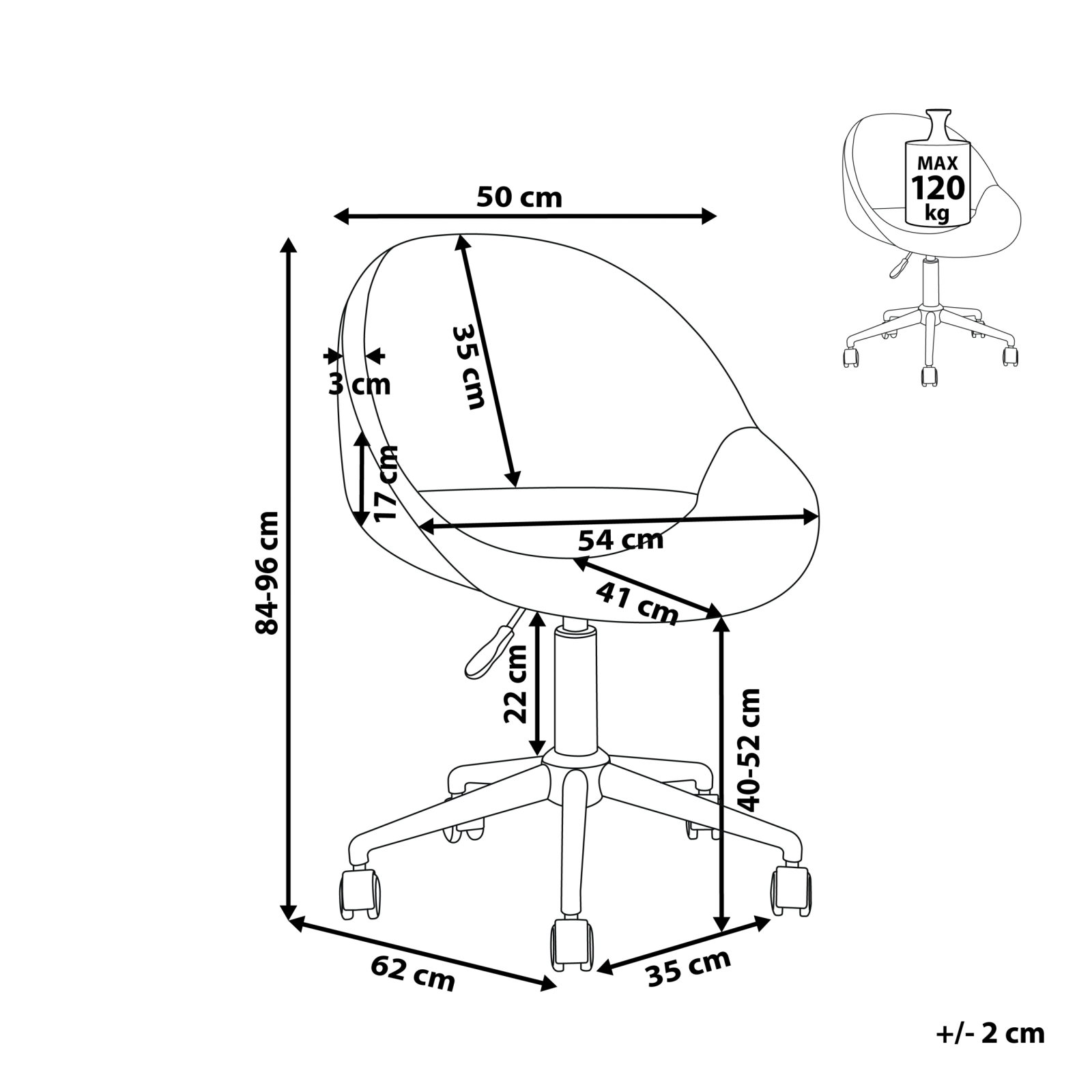 Scaun de birou rotativ cu spătar rotunjit. Îmbunătățește aspectul biroului de acasă cu acest scaun modern. Tapițat cu catifea moale din poliester, devine un accent elegant în orice decor contemporan, minimalist sau scandinav. Oferă un confort excelent datorită șezutului și spătarului cu umplutură din spumă, iar mecanismul pneumatic pe gaz și funcția de rotire completă permit reglaje rapide și precise. Detalii: Tip de Produs: Scaun de birou. Stil: Retro. Culoare: Verde. Nuanță: Verde smarald. Material: Țesătură. Material primar: Catifea. Material secundar: Placaj. Detalii material picioare: Metal. Material scaun: Țesătură. Compoziția materialului: 100% Poliester. Rotire la 360°: Da. Piese reglabile: Înălțime scaun. Cotiere: Nu. Protecții pentru picioare incluse: Nu. Înclinare: Nu. Dimensiuni: Adâncime: 62 cm. Înălțimea scaunului: 40-52 cm. Lățime: 62 cm. Înălțime: 84-96 cm. Suprafața de ședere: 54x41 cm. Greutate: 8 kg. Capacitatea de greutate: 120 kg. Oferta incude: 1 x Scaun de birou. Caracteristici cheie: Roți pivotante cu rulare lină, Rotire de 360°, Reglarea pneumatică a înălțimii scaunului, Funcție de frână de siguranță care blochează roțile pentru siguranță, se deblochează pentru mobilitate. Adaugă o notă de stil în orice cameră, Țesătură de catifea netedă și mătăsoasă. Asamblare: Necesită asamblare parțială.20-40 min. Informații suplimentare: Pentru o stabilitate și siguranță maximă în utilizare, se recomandă să verificați la aproximativ 2 săptămâni după instalare dacă produsul a fost asamblat corect. De asemenea, se recomandă să verificați dacă șuruburile sunt strânse corect, o dată la 3 luni. Rețineți că țesătura de catifea poate avea un aspect puțin diferit atunci când este expusă la lumină; tinde să fie mai strălucitoare și mai luminoasă în lumina soarelui, în timp ce în lumină artificială are un ton diferit, mai închis. Datorită tipului de țesătură, tonul catifelei poate varia, de asemenea, atunci când este atinsă din direcții diferite. Pentru a uniformiza culoarea și a scăpa de lovituri și cute, materialul trebuie mângâiat cu palma deschisă într-o singură direcție, frecat cu o cârpă umedă sau călcat cu abur. Sfaturi de întreținere: Catifea: 1.Vă rugăm să curățați cu un șampon uscat și un burete umed sau cu un detergent ușor. 2.Aspirati folosind un accesoriu potrivit. Fier: 1.Curățați cu un detergent delicat și o cârpă moale, apoi ștergeți bine. 2.Pentru a evita zgârieturile, nu folosiți produse de curățare abrazive. 3.Pentru elementele din cupru sau crom, folosiți un agent de lustruire.