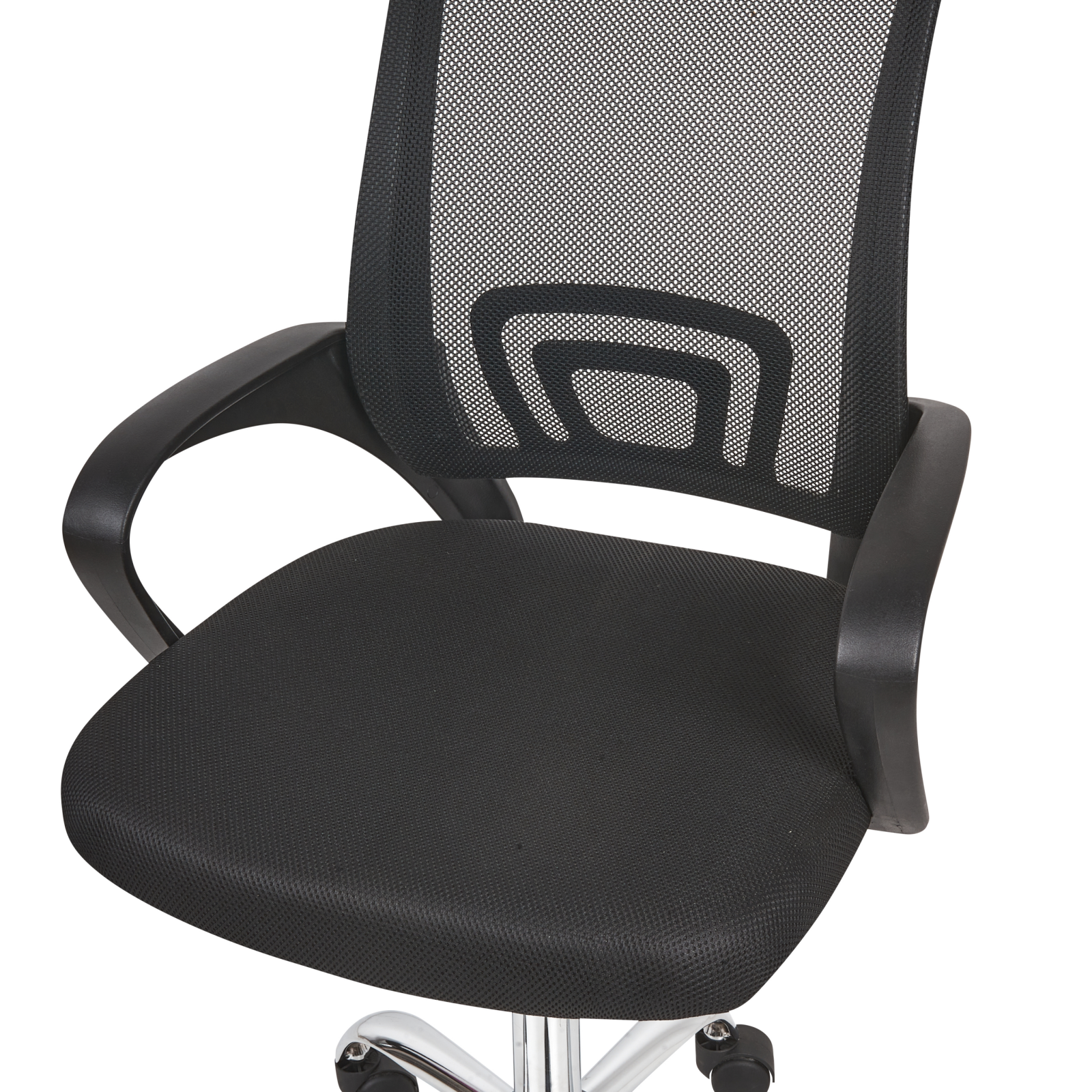 Scaun de birou cu spătar din plasă și înălțime reglabilă. Un scaun de birou versatil, ideal atât pentru biroul de acasă, cât și pentru camera unui adolescent. Are un spătar ergonomic ce susține o postură corectă și o plasă respirabilă care asigură confort chiar și în zilele călduroase. Înălțimea se reglează ușor cu ajutorul manetei de sub șezut, iar baza solidă cu cinci roți oferă mobilitate și stabilitate în timpul utilizării. Detalii: Tip de Produs: Scaun de birou. Stil: Minimalist. Culoare: Negru. Material: Țesătură. Material primar: Țesătură. Material secundar: Fier. Detalii material picioare: Metal. Material scaun: Țesătură. Compoziția materialului: 100% Poliester. Rotire la 360°: Da. Piese reglabile: Înălțime scaun. Cotiere: Da. Protecții pentru picioare incluse: Nu. Înclinare: Nu. Dimensiuni: Adâncime: 60 cm. Înălțimea scaunului: 39-50 cm. Lățime: 60 cm. Înălțime: 88-97 cm. Suprafața de ședere: 49x50 cm. Greutate: 9 kg. Capacitatea de greutate: 120 kg. Oferta incude: 1 x Scaun de birou. Caracteristici cheie: Reglarea pneumatică a înălțimii scaunului, Rotire de 360°, Roți pivotante cu rulare lină, Design modern. Asamblare: Necesită asamblare parțială.20-40 min. Informații suplimentare: Pentru o stabilitate și siguranță maximă în utilizare, se recomandă să verificați la aproximativ 2 săptămâni după instalare dacă produsul a fost asamblat corect. De asemenea, se recomandă să verificați dacă șuruburile sunt strânse corect, o dată la 3 luni. Sfaturi de întreținere: Țesătură: 1.Vă rugăm să curățați cu un șampon uscat și un burete umed sau cu un detergent ușor. 2.Aspirati folosind un accesoriu potrivit. Fier: 1.Curățați cu un detergent delicat și o cârpă moale, apoi ștergeți bine. 2.Pentru a evita zgârieturile, nu folosiți produse de curățare abrazive. 3.Pentru elementele din cupru sau crom, folosiți un agent de lustruire.