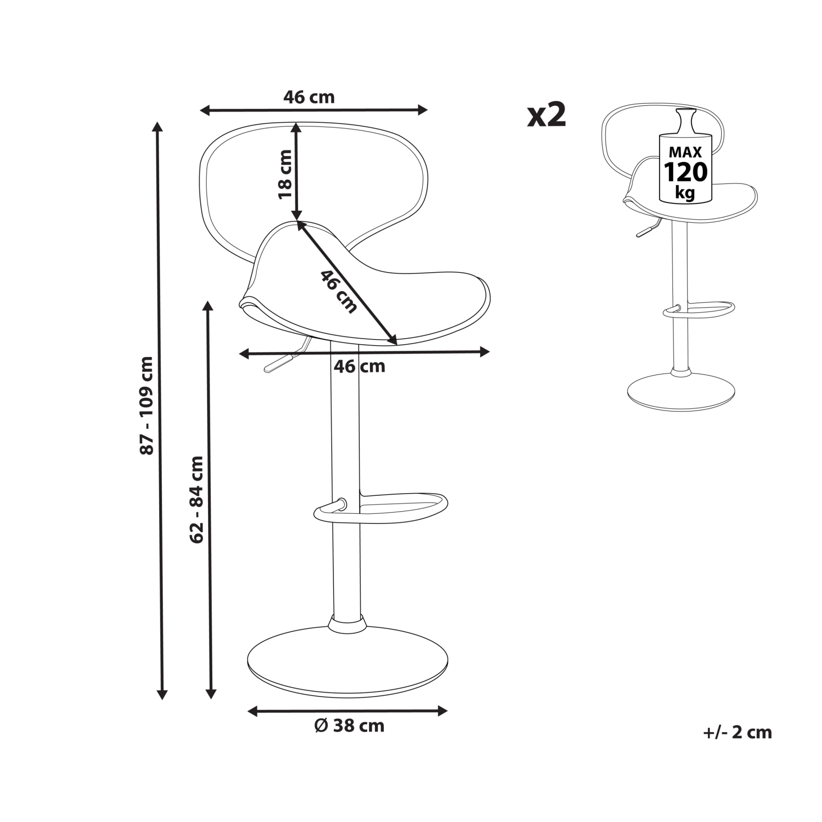 Scaune pentru bar cu design glamour. Transformă-ți zona de dining cu aceste scaune de bar elegante și practice. Funcția de rotație completă la 360° îți oferă libertate totală de mișcare, iar mecanismul reglabil pe gaz îți permite să alegi înălțimea ideală. Tapițeria din piele ecologică fină adaugă un plus de confort și stil, în timp ce baza metalică robustă garantează stabilitate și rezistență. Perfecte pentru bucătării moderne, baruri sau spații creative, aceste modele aduc un plus de rafinament și comoditate în orice ambient. Detalii: Stil: Modern. Culoare: Negru. Culoarea cadrului: Argintiu. Material: Piele ecologică. Material primar: Piele ecologică. Material secundar: Metal. Detalii material picioare: Metal. Material scaun: Piele ecologică. Compoziția materialului: 100% Piele sintetică. Cotiere: Nu. Finisaj: Lucios. Stivuire: Nu. Dimensiuni: Adâncime: 50 cm. Înălțimea scaunului: 62-84 cm. Lățime: 46 cm. Înălțime: 87-109 cm. Suprafața de ședere: 46x46 cm. Greutate: 8 kg. Capacitatea de greutate: 120 kg. Oferta incude: 2 x Scaun de bar. Caracteristici cheie: Rotire de 360°, Suport pentru picioare practic, Design elegant, Tapițerie din țesătură de înaltă calitate, Înălțime reglabilă. Asamblare: Necesită asamblare parțială.20-40 min. Informații suplimentare: Pentru o stabilitate și siguranță maximă în utilizare, se recomandă să verificați la aproximativ 2 săptămâni după instalare dacă produsul a fost asamblat corect. De asemenea, se recomandă să verificați dacă șuruburile sunt strânse corect, o dată la 3 luni. Sfaturi de întreținere: Piele ecologică: 1.O dată pe săptămână, ștergeți cu o cârpă umedă și uscați după curățare. Nu folosiți substanțe uleioase. 2.Vă rugăm să curățați cu apă distilată și să folosiți detergenți pe bază de săpun pentru petele dificile. 3.Utilizați doar soluții de curățare delicate și balsamuri dedicate pielii ecologice. 4.Aspirati folosind un accesoriu potrivit. Metal: 1.Curățați cu un detergent delicat și o cârpă moale, apoi ștergeți bine. 2.Pentru a evita zgârieturile, nu folosiți produse de curățare abrazive. 3.Pentru elementele din cupru sau crom, folosiți un agent de lustruire.