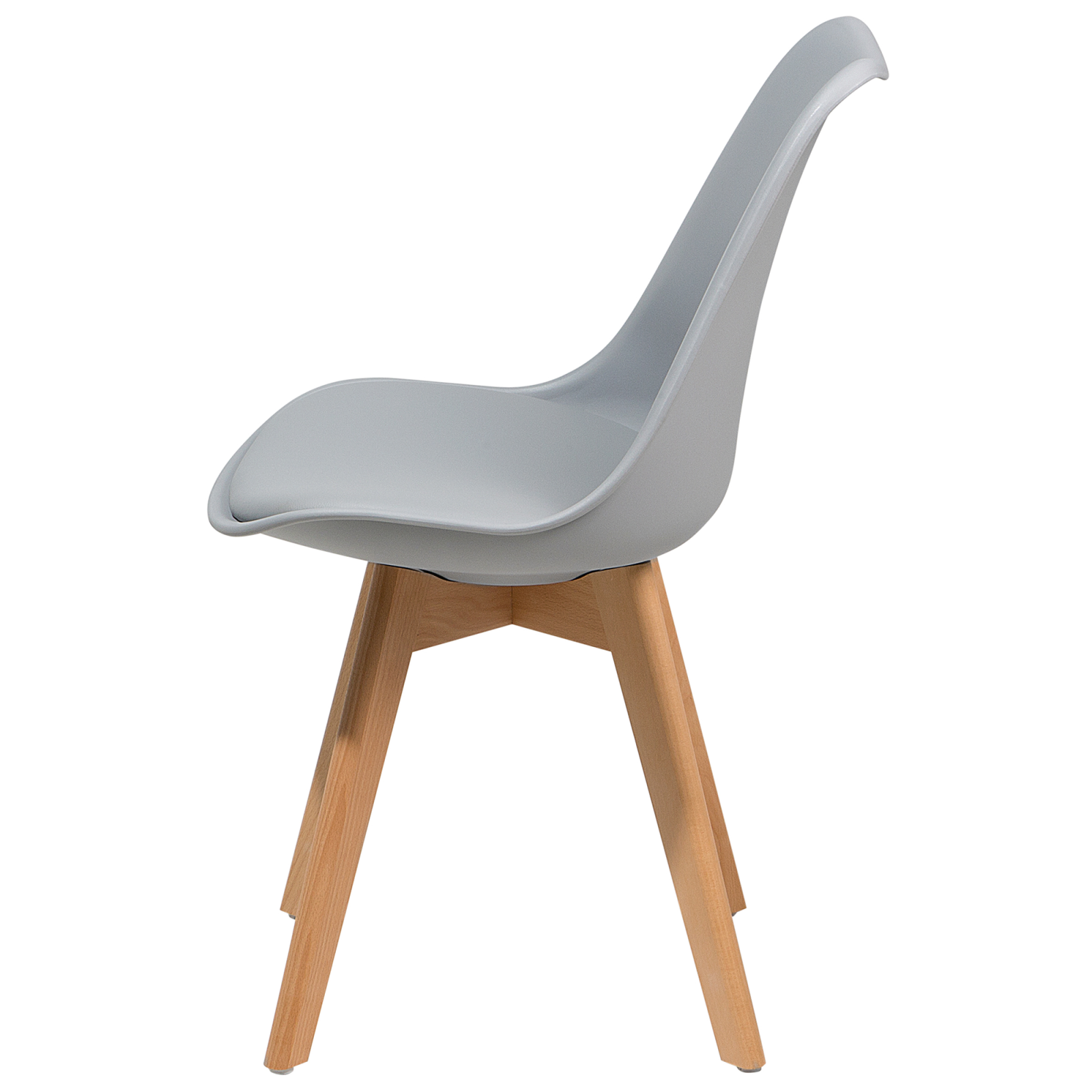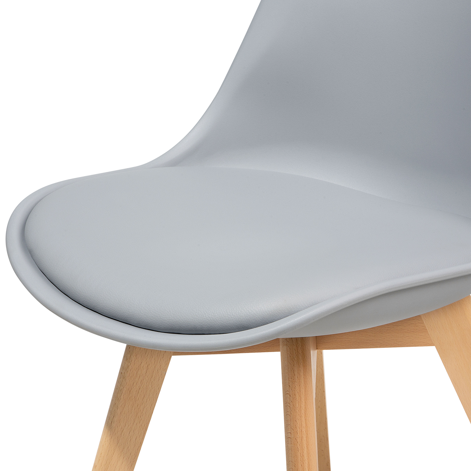 Scaune moderne și elegante pentru bucătărie. Descoperă echilibrul perfect între simplitate și eleganță cu aceste scaune de dining minimaliste, care adaugă un plus de rafinament oricărui spațiu contemporan. Tapițeria din piele ecologică, fină și plăcută la atingere, oferă un confort desăvârșit, iar picioarele din lemn de fag asigură stabilitate și durabilitate. Designul elegant transformă orice încăpere într-un loc primitor și plin de stil. Piese de mobilier ideale pentru orice decor contemporan. Detalii: Tip de Produs: Scaun dining. Stil: Retro. Culoare: Gri. Culoarea cadrului: Gri. Nuanță: Gri deschis. Material: Material sintetic. Material primar: Material sintetic. Material secundar: Piele ecologică. Detalii material picioare: Lemn. Material scaun: Material sintetic. Compoziția materialului: 100% Piele sintetică. Cotiere: Nu. Finisaj: Opac. Stivuire: Nu. Dimensiuni: Adâncime: 43 cm. Înălțimea scaunului: 47 cm. Lățime: 47 cm. Înălțime: 82 cm. Suprafața de ședere: 47x41 cm. Greutate: 5 kg. Capacitatea de greutate: 90 kg. Oferta incude: 2 x Scaun. Caracteristici cheie: Se potrivește perfect în bucătărie sau în sufragerie, Confort maxim la șezut, Se adaptează la orice stil de interior, Extrem de durabil, Asamblare rapidă și ușoară. Asamblare: Picioare neasamblate.20-40 min. Informații suplimentare: Pentru o stabilitate și siguranță maximă în utilizare, se recomandă să verificați la aproximativ 2 săptămâni după instalare dacă produsul a fost asamblat corect. De asemenea, se recomandă să verificați dacă șuruburile sunt strânse corect, o dată la 3 luni. Trebuie remarcat faptul că lemnul este un material natural și, prin urmare, fiecare obiect din lemn diferă de celelalte. Diferențele de culoare și de textură a suprafeței (noduri de lemn, dungi etc.) sunt caracteristici intrinseci ale materialului și, prin urmare, nu sunt considerate defecte ale produsului. Sfaturi de întreținere: Material sintetic: 1.Curățați cu un detergent delicat și o cârpă moale, apoi ștergeți bine. Piele ecologică: 1.O dată pe săptămână, ștergeți cu o cârpă umedă și uscați după curățare. Nu folosiți substanțe uleioase. 2.Vă rugăm să curățați cu apă distilată și să folosiți detergenți pe bază de săpun pentru petele dificile. 3.Utilizați doar soluții de curățare delicate și balsamuri dedicate pielii ecologice. 4.Aspirati folosind un accesoriu potrivit.