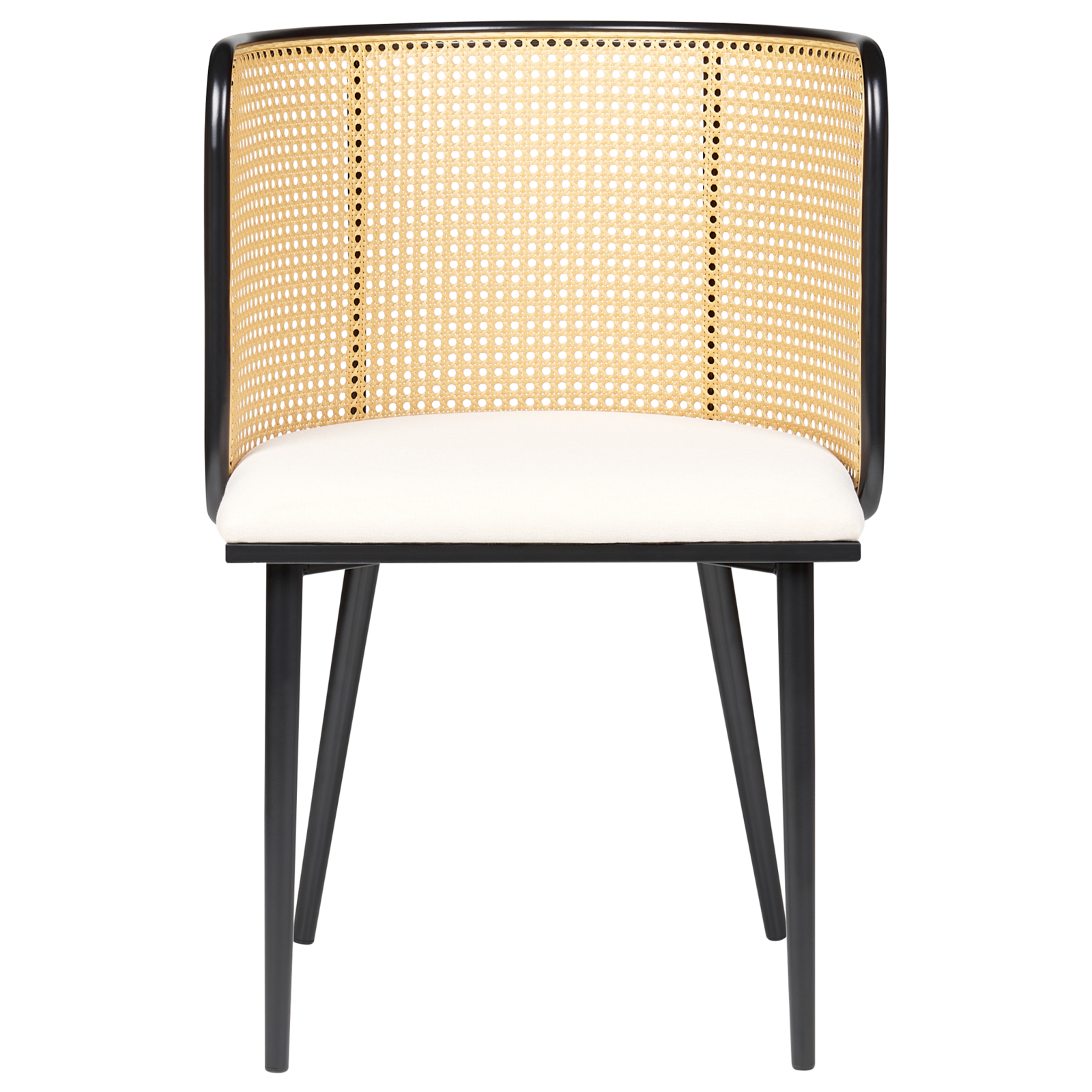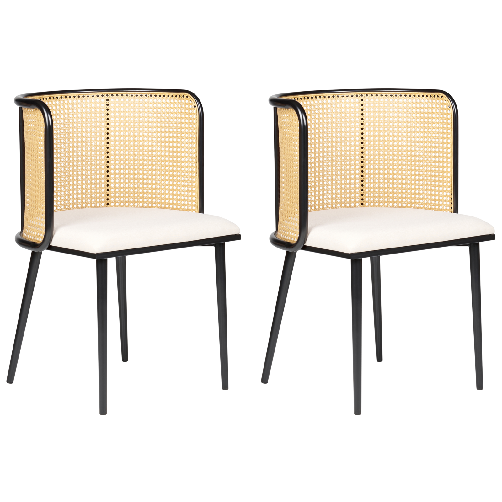 Scaune dining din împletitură vieneză. Adaugă o notă de rafinament retro în camera de dining cu acest set de două scaune cu design inspirat din stilul vienez. Cadrul metalic cu finisaj negru creează un contrast plăcut cu șezutul confortabil din țesătură bej. Spătarul lat, decorat cu împletitură autentică, oferă susținere și un plus de personalitate. Capacele discrete ale picioarelor protejează podeaua, iar aspectul elegant contribuie la crearea unui ambient primitor. Detalii: Tip de Produs: Scaun dining. Stil: Retro. Culoare: Negru. Culoarea cadrului: Negru. Nuanță: Bej deschis. Material: Metal. Material primar: Fier. Material secundar: Placaj. Detalii material picioare: Metal. Material scaun: Țesătură. Compoziția materialului: 100% Poliester. Cotiere: Nu. Finisaj: Lăcuit. Stivuire: Nu. Dimensiuni: Adâncime: 46 cm. Înălțimea scaunului: 45 cm. Lățime: 52 cm. Înălțime: 75 cm. Suprafața de ședere: 48x46 cm. Greutate: 6 kg. Capacitatea de greutate: 120 kg. Oferta incude: 2 x Scaun. Caracteristici cheie: Scaun spațios și confortabil, Finisaj asemănător lemnului pentru un aspect natural, Mobilier decorativ și funcțional, Materiale ușor de întreținut și durabile, Capace pentru picioare pentru protecția suprafeței. Asamblare: Necesită asamblare parțială.5-15 min. Informații suplimentare: Pentru o stabilitate și siguranță maximă în utilizare, se recomandă să verificați la aproximativ 2 săptămâni după instalare dacă produsul a fost asamblat corect. De asemenea, se recomandă să verificați dacă șuruburile sunt strânse corect, o dată la 3 luni. Sfaturi de întreținere: Fier: 1.Curățați cu un detergent delicat și o cârpă moale, apoi ștergeți bine. 2.Pentru a evita zgârieturile, nu folosiți produse de curățare abrazive. 3.Pentru elementele din cupru sau crom, folosiți un agent de lustruire. Țesătură: 1.Vă rugăm să curățați cu un șampon uscat și un burete umed sau cu un detergent ușor. 2.Aspirati folosind un accesoriu potrivit.