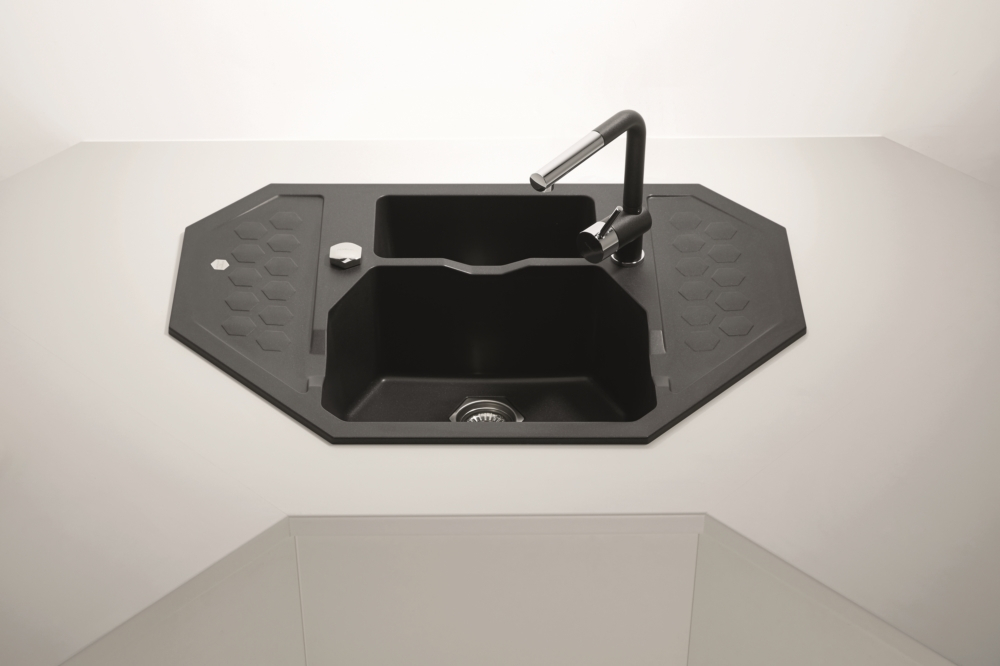 Chiuveta Alveus compozit Sensual 60 Alveus Sensual 60 este o chiuveta de bucatarie realizata din material compozit, granital. Este formata din doua cuve, prevazuta cu picurator si are dimensiunea totala de 90 x 61 cm. Acest model de chiuveta Alveus este conceput pentru montajul pe colt, fiind parte continua a suprafetei de lucru. Chiuveta Sensual 60 are o forma hexagonala, cu dimensiunea cuvelor de 45.1 x 35.3 x 20 cm 33.1 x 16.5 x 16 cm, potrivite pentru spalarea vaselor de orice dimensiune. Aceasta chiuveta este confectionata dintr-un amestec compozit de calitate superioara, numit granital. Datorita procesarii atente a materialului, suprafata chiuvetei de bucatarie este neteda, placuta la atingere si permite o curatare usoara. In plus, ii ofera si alte avantaje, cum ar fi: rezistenta la temperaturi inalte, la utilizare intensa, rezistenta maxima la socuri termice si mecanice, nu se fisureaza si nu se zgarie. Chiuveta vine insotita cu urmatoarele accesorii: sifon cu pop up; ventil de 3 1 2 ; sistem de prindere.