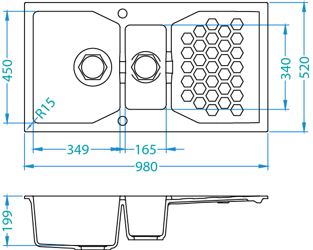 Alveus Sensual 70 este o chiuveta de bucatarie realizata din material compozit, granital. Este formata din doua cuve, prevazuta cu picurator si are dimensiunea totala de 98 x 52 cm.