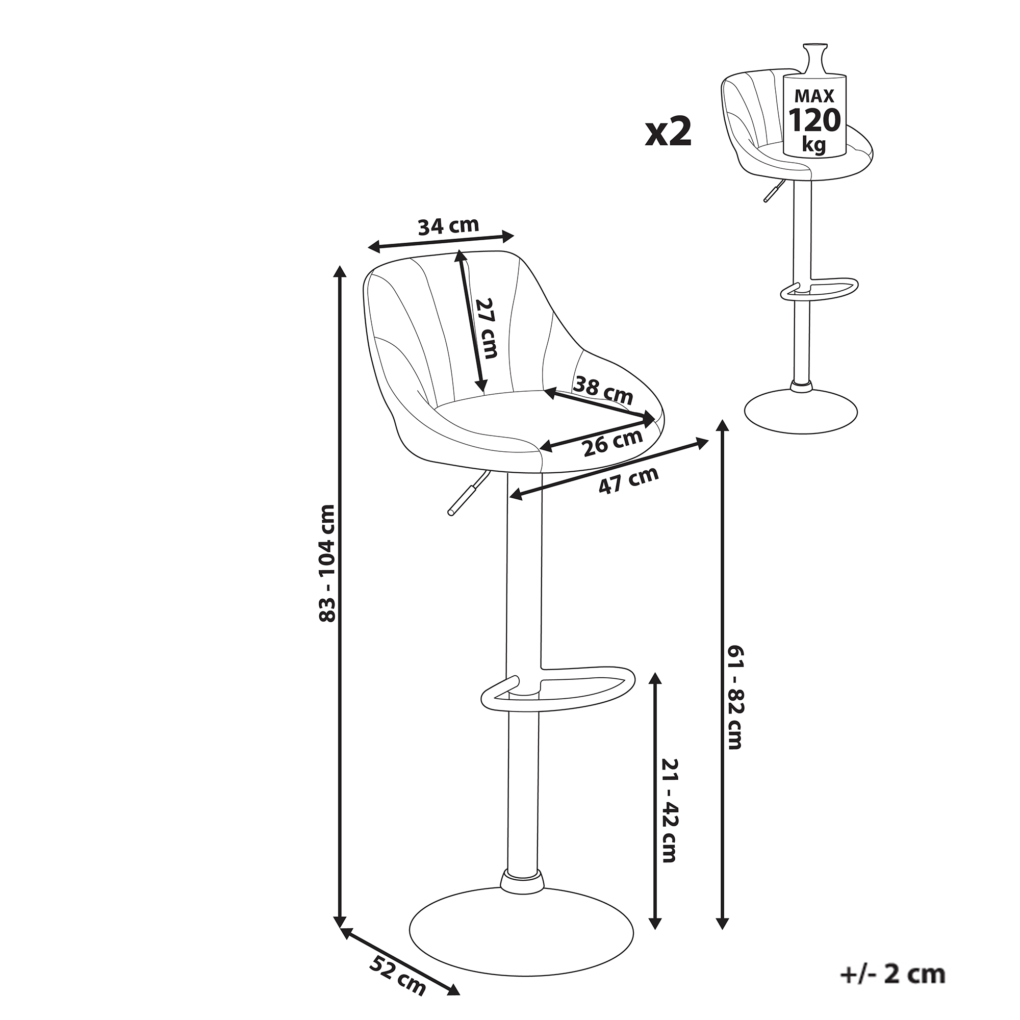 Scaune de bar clasice cu înălțime reglabilă. Un set de două scaune de bar concepute pentru confort și funcționalitate. Șezutul tapițat în țesătură asigură o experiență plăcută la ședere, iar baza solidă oferă durabilitate și un aspect modern. Cu funcție rotativă de 360° și reglare a înălțimii, aceste scaune se adaptează ușor la diferite blaturi și insule de bucătărie. Detalii: Stil: Tradițional. Culoare: Albastru. Nuanță: Albastru deschis. Material: Țesătură. Material primar: Țesătură. Material secundar: Fier. Materialul cadrului: Lemn. Detalii material picioare: Metal. Material scaun: Spumă. Compoziția materialului: 100% Poliester. Cotiere: Nu. Stivuire: Nu. Dimensiuni: Adâncime: 52 cm. Înălțimea scaunului: 61-82 cm. Lățime: 47 cm. Înălțime: 83-107 cm. Suprafața de ședere: 34x38 cm. Greutate: 7 kg. Capacitatea de greutate: 120 kg. Oferta incude: 2 x Scaun de bar. Caracteristici cheie: Rotire de 360°, Suport pentru picioare practic, Stil minimalist scandinav, Construcție robustă, Înălțime reglabilă. Asamblare: Necesită asamblare parțială.5-15 min. Informații suplimentare: Pentru o stabilitate și siguranță maximă în utilizare, se recomandă să verificați la aproximativ 2 săptămâni după instalare dacă produsul a fost asamblat corect. De asemenea, se recomandă să verificați dacă șuruburile sunt strânse corect, o dată la 3 luni. Sfaturi de întreținere: Țesătură: 1.Vă rugăm să curățați cu un șampon uscat și un burete umed sau cu un detergent ușor. 2.Aspirati folosind un accesoriu potrivit. Fier: 1.Curățați cu un detergent delicat și o cârpă moale, apoi ștergeți bine. 2.Pentru a evita zgârieturile, nu folosiți produse de curățare abrazive. 3.Pentru elementele din cupru sau crom, folosiți un agent de lustruire.