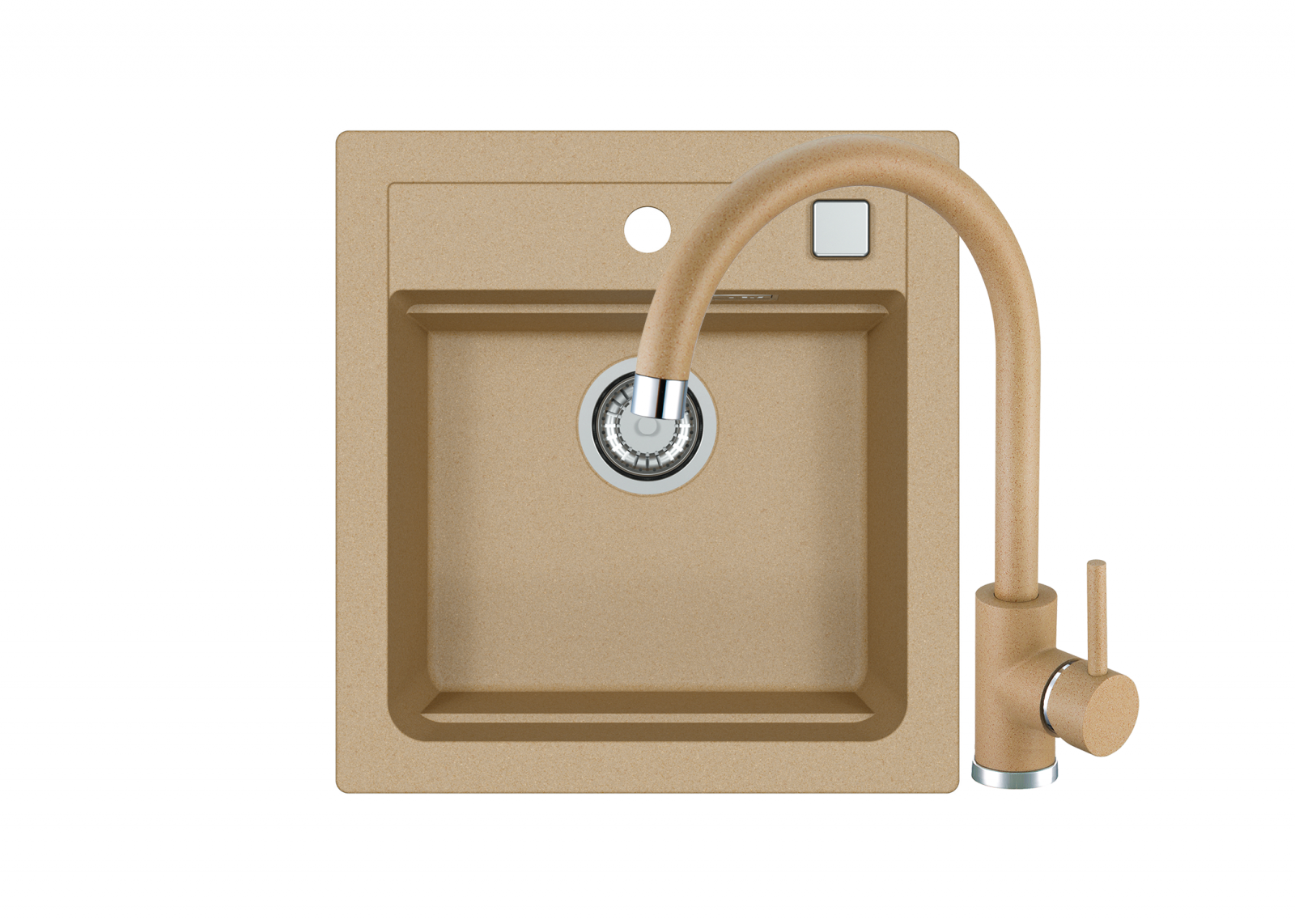 Pachet Alveus  Atrox 20   si baterie  Jana    Alveus Atrox 20  este o chiuveta de bucatarie realizata din material compozit, granital. Este formata dintr-o singura cuva, nu este prevazuta cu picurator si are dimensiunea totala de  47 x 50 cm .  Acest model de chiuveta Alveus este conceput pentru montajul pe blatul de bucatarie (incastrabil) sau sub blat, fiind parte continua a suprafetei de lucru.  Culorile disponibile sunt alb,bej,gri,negru, ce ofera un contrast placut bucatariei dumneavoastra.  Chiuveta   Alveus Atrox 20  are o forma dreptunghiulara, cu dimensiunea de  39 x 34 x 19.5 cm , potrivita pentru spalarea vaselor de orice dimensiune. Aceasta chiuveta este confectionata dintr-un amestec compozit de calitate superioara, numit granital. Datorita procesarii atente a materialului, suprafata chiuvetei de bucatarie este neteda, placuta la atingere si permite o curatare usoara. In plus, ii ofera si alte avantaje, cum ar fi: rezistenta la temperaturi inalte, la utilizare intensa, rezistenta maxima la socuri termice si mecanice, nu se fisureaza si nu se zgarie.   Chiuveta vine insotita cu urmatoarele accesorii:  sifon cu pop up;  ventil de 3 1 2  ;  sistem de prindere.  Alveus Jana   este o baterie pentru chiuvetele de bucatarie, ce dispune de un design elegant, ce se potriveste atat in bucatariile traditionale, precum si in cele moderne, completand functional spatiul in care gatiti si serviti masa. Aceasta este realizata din material   alama  si este disponibila in culorile alb,bej,gri,negru.  Bateria are robinet de tip   monocomanda   si   cartus ceramic   ce  asigura o functionare fiabila  si durata lunga de viata;  pipa este   inalta   si mobila (cu rotatie 360 º), astfel incat sa se adapteze nevoilor dumneavoastra.  Dimensiunile acesteia sunt: 20.3 cm latime si 34 cm inaltime. Aceasta baterie Alveus poate fi montata pe chiuveta sau pe blatul de bucatarie si vine insotita de sistem prindere si racorduri flexibile.  Intretinere:    curatati componentele in mod regulat, pentru a preveni acumularea de murdarie. Curatarea bateriei se va realiza doar cu un detergent neutru, neabraziv. Clatiti componentele cu apa si stergeti-le cu o carpa moale