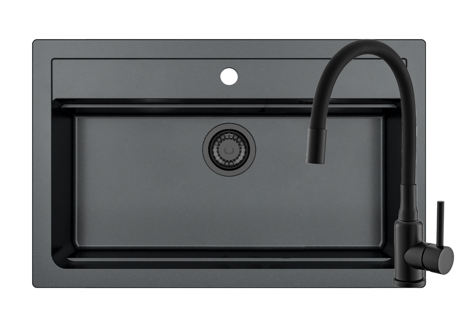 Chiuveta compozit Atrox 40 Alveus Atrox 40 este o chiuveta de bucatarie realizata din material compozit, granital. Este formata dintr-o singura cuva, nu este prevazuta cu picurator si are dimensiunea totala de 79 x 50 cm. Acest model de chiuveta Alveus este conceput pentru montajul pe blatul de bucatarie (incastrabil) sau sub blat, fiind parte continua a suprafetei de lucru. Chiuveta Alveus Atrox 40 are o forma dreptunghiulara, cu o cuva generoasa, cu dimensiunea de 71 x 34 x 19.5 cm, potrivita pentru spalarea vaselor de dimensiuni mari. Aceasta chiuveta este confectionata dintr-un amestec compozit de calitate superioara, numit granital. Datorita procesarii atente a materialului, suprafata chiuvetei de bucatarie este neteda, placuta la atingere si permite o curatare usoara. In plus, ii ofera si alte avantaje, cum ar fi: rezistenta la temperaturi inalte, la utilizare intensa, rezistenta maxima la socuri termice si mecanice, nu se fisureaza si nu se zgarie. Chiuveta vine insotita cu urmatoarele accesorii: ventil de 3 1 2 ; sistem de prindere. Bateria de bucatarie Alveus Flexa prezinta urmatoarele specificatii tehnice: Colectie: Flexa; Inalta; Cartus ceramic; Montare: pe chiuveta; Pipa pivotanta; Monocomanda Racorduri flexibile de conectare la apa;