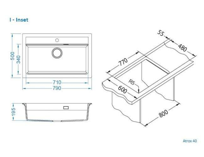 Alveus Atrox 40 este o chiuveta de bucatarie realizata din material compozit. Este formata dintr-o singura cuva, fara picurator. Are dimensiunea totala de 79 x 50 cm.