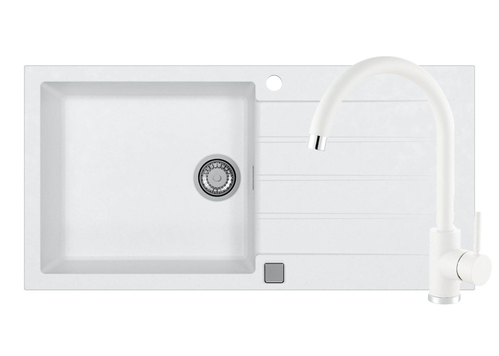 Pachet Alveus Cadit 50 si baterie Jana Alveus Cadit 50 este o chiuveta de bucatarie realizata din material compozit, granital. Este formata dintr-o cuva spatioasa, prevazuta cu picurator si are dimensiunea totala de 100 x 50 cm. Acest model de chiuveta Alveus este conceput pentru montajul pe blatul de bucatarie (incastrabil), fiind parte continua a suprafetei de lucru. Culorile disponibile sunt alb,bej,gri,negru, ce ofera un contrast placut bucatariei dumneavoastra. Chiuveta Alveus Cadit 50 are o forma dreptunghiulara, cu dimensiunea cuvei de 47.5 x 42.5 x 19.8 cm , potrivita pentru spalarea vaselor de orice dimensiune. Aceasta chiuveta este confectionata dintr-un amestec compozit de calitate superioara, numit granital. Datorita procesarii atente a materialului, suprafata chiuvetei de bucatarie este neteda, placuta la atingere si permite o curatare usoara. In plus, ii ofera si alte avantaje, cum ar fi: rezistenta la temperaturi inalte, la utilizare intensa, rezistenta maxima la socuri termice si mecanice, nu se fisureaza si nu se zgarie. Chiuveta vine insotita cu urmatoarele accesorii: sifon cu pop up; ventil de 3 1 2 ; sistem de prindere. Alveus Jana este o baterie pentru chiuvetele de bucatarie, ce dispune de un design elegant, ce se potriveste atat in bucatariile traditionale, precum si in cele moderne, completand functional spatiul in care gatiti si serviti masa. Aceasta este realizata din material alama si este disponibila in culorile alb,bej,gri,negru. Bateria are robinet de tip monocomanda si cartus ceramic ce asigura o functionare fiabila si durata lunga de viata; pipa este inalta si mobila (cu rotatie 360 º), astfel incat sa se adapteze nevoilor dumneavoastra. Dimensiunile acesteia sunt: 20.3 cm latime si 34 cm inaltime. Aceasta baterie Alveus poate fi montata pe chiuveta sau pe blatul de bucatarie si vine insotita de sistem prindere si racorduri flexibile. Intretinere: curatati componentele in mod regulat, pentru a preveni acumularea de murdarie. Curatarea bateriei se va realiza doar cu un detergent neutru, neabraziv. Clatiti componentele cu apa si stergeti-le cu o carpa moale.